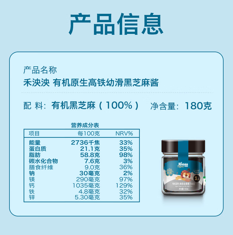 禾泱泱有机原生高铁幼滑黑芝麻酱辅食搭档拌面拌饭儿童宝宝调料酱 有机原生高铁幼滑黑芝麻酱180g