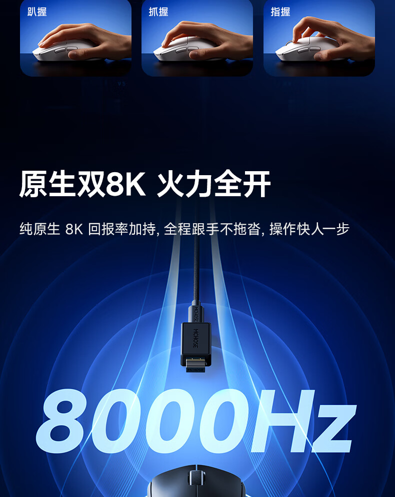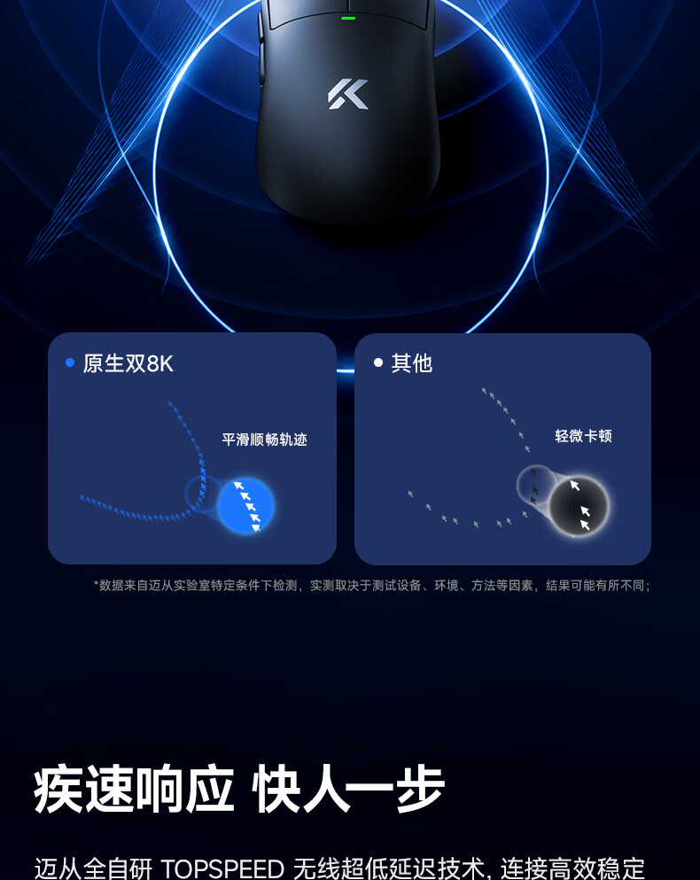 迈从(MCHOSE)K7 Ultra无线鼠标轻量化游戏电竞办公有线/2.4G/蓝牙三模连接 PAW3950传感器8K磁吸无线充 K7 Ultra 黑金