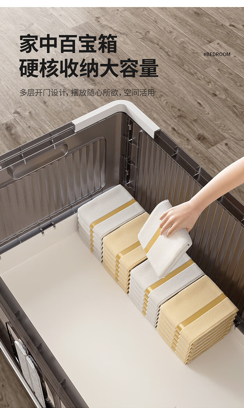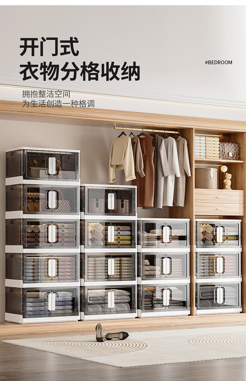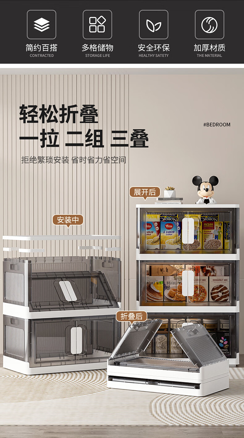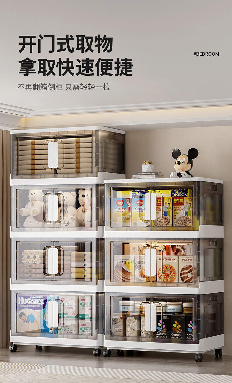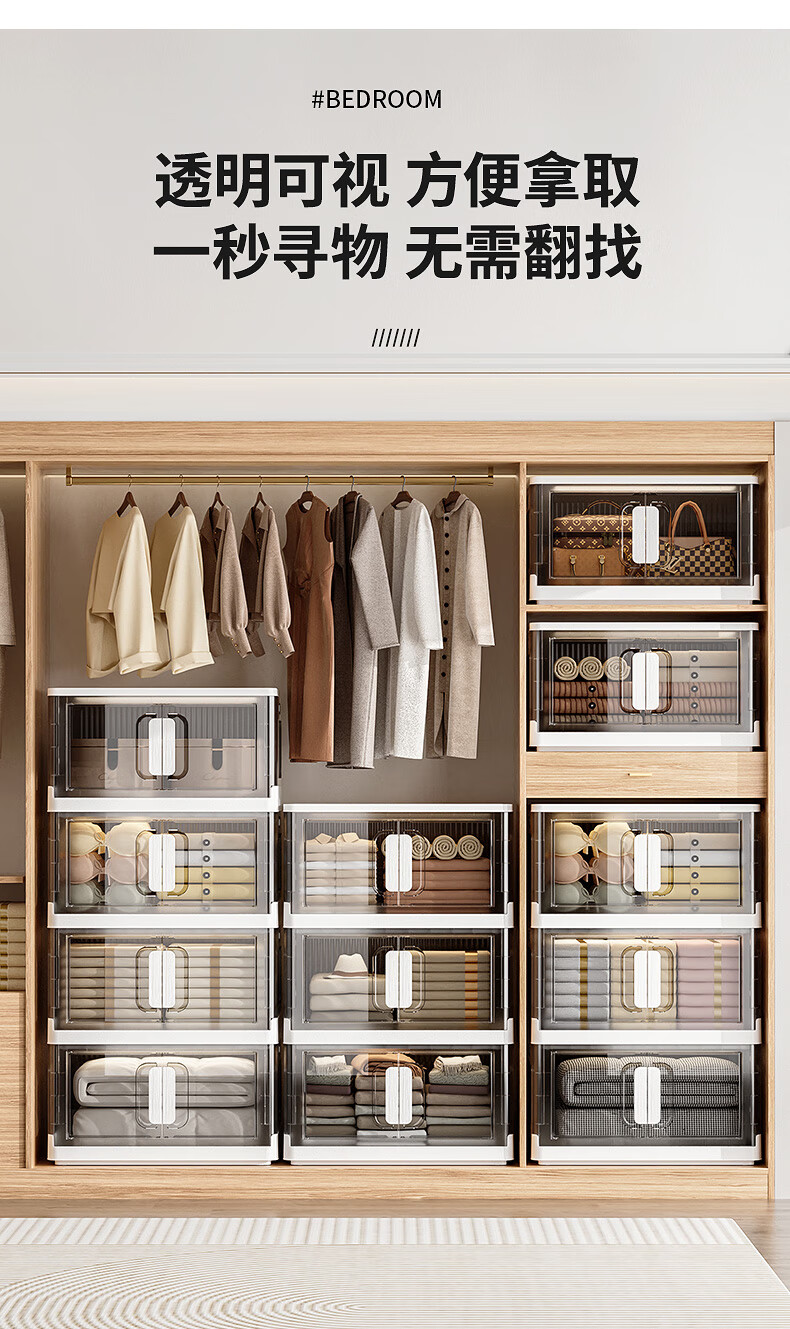 纳份爱折叠收纳箱大容量前开式塑料家用客厅零食玩具衣柜储物箱收纳柜子 大号-透白-3个装【50*32*30CM】
