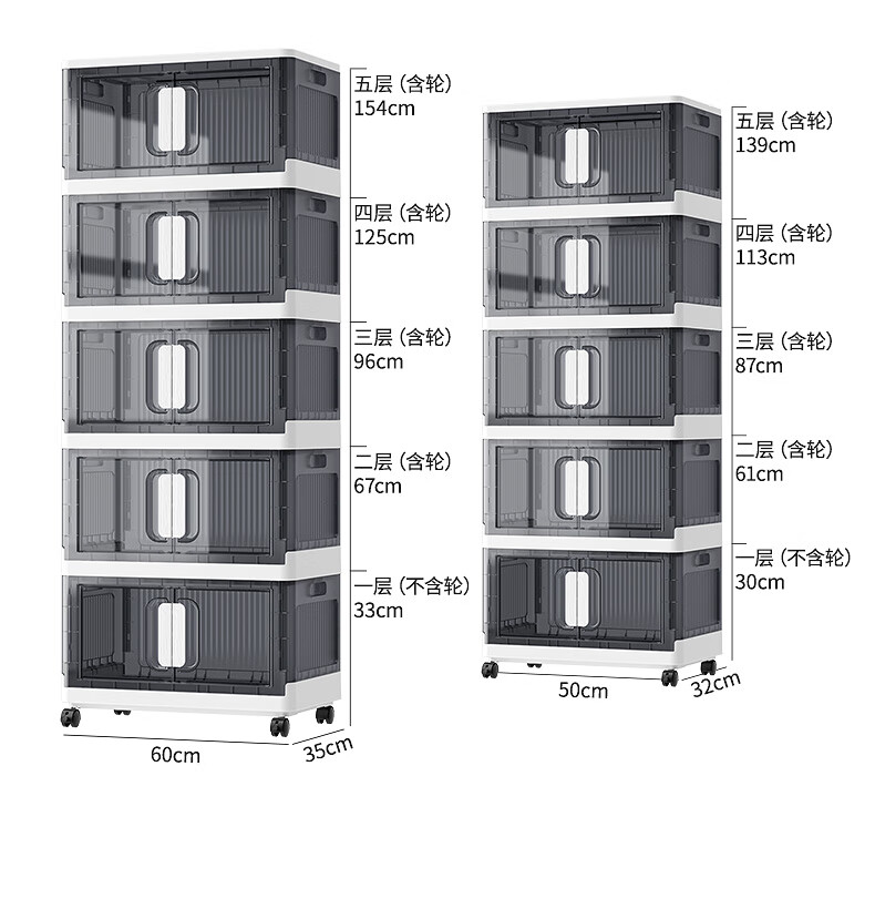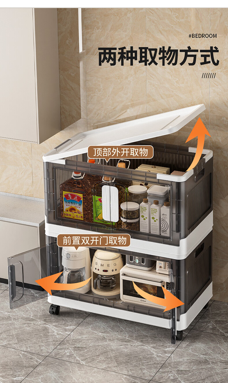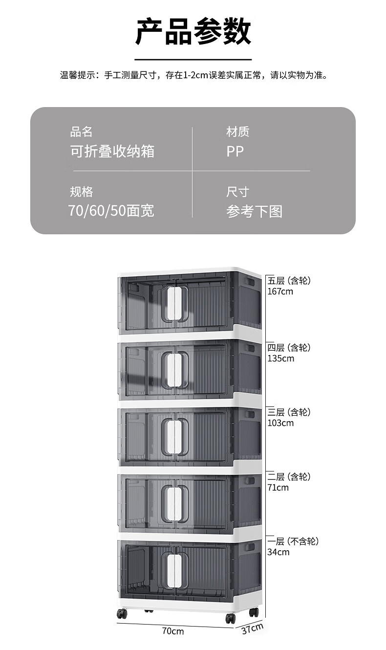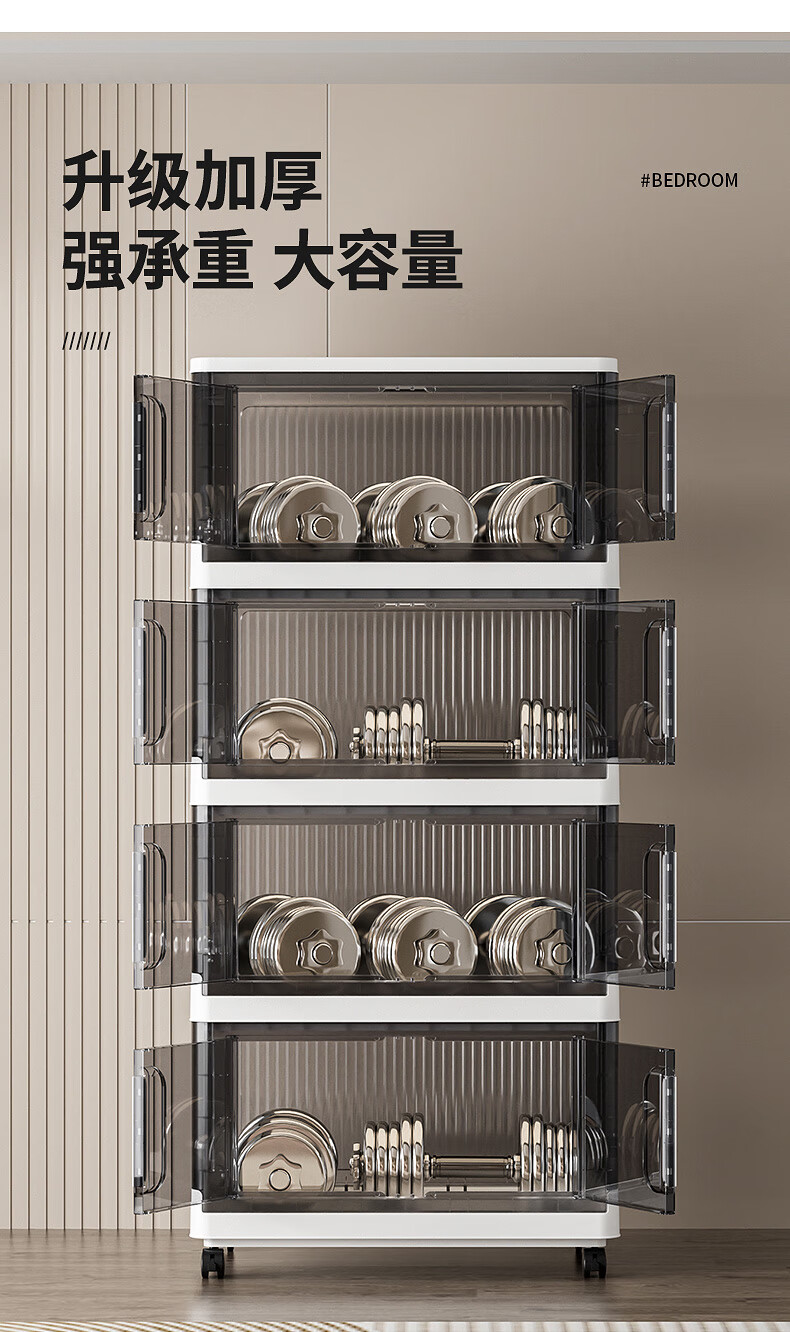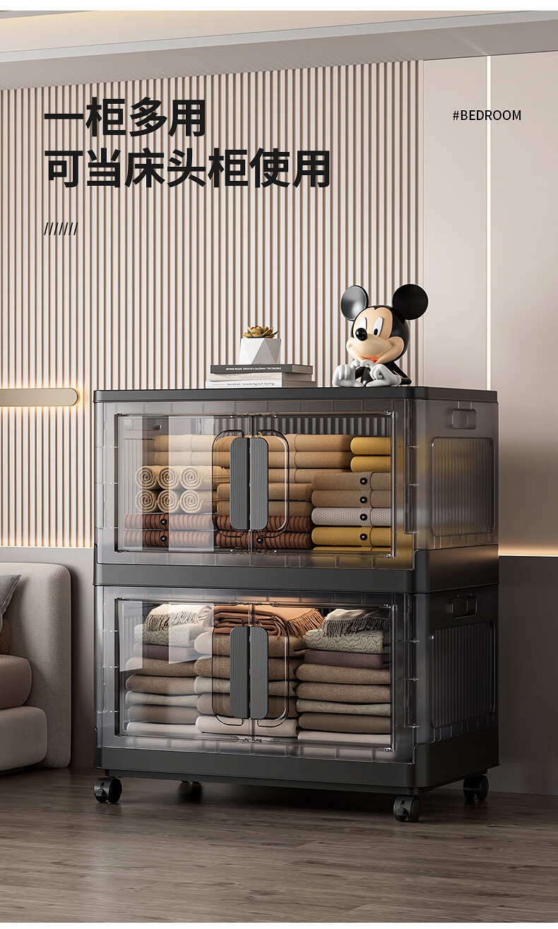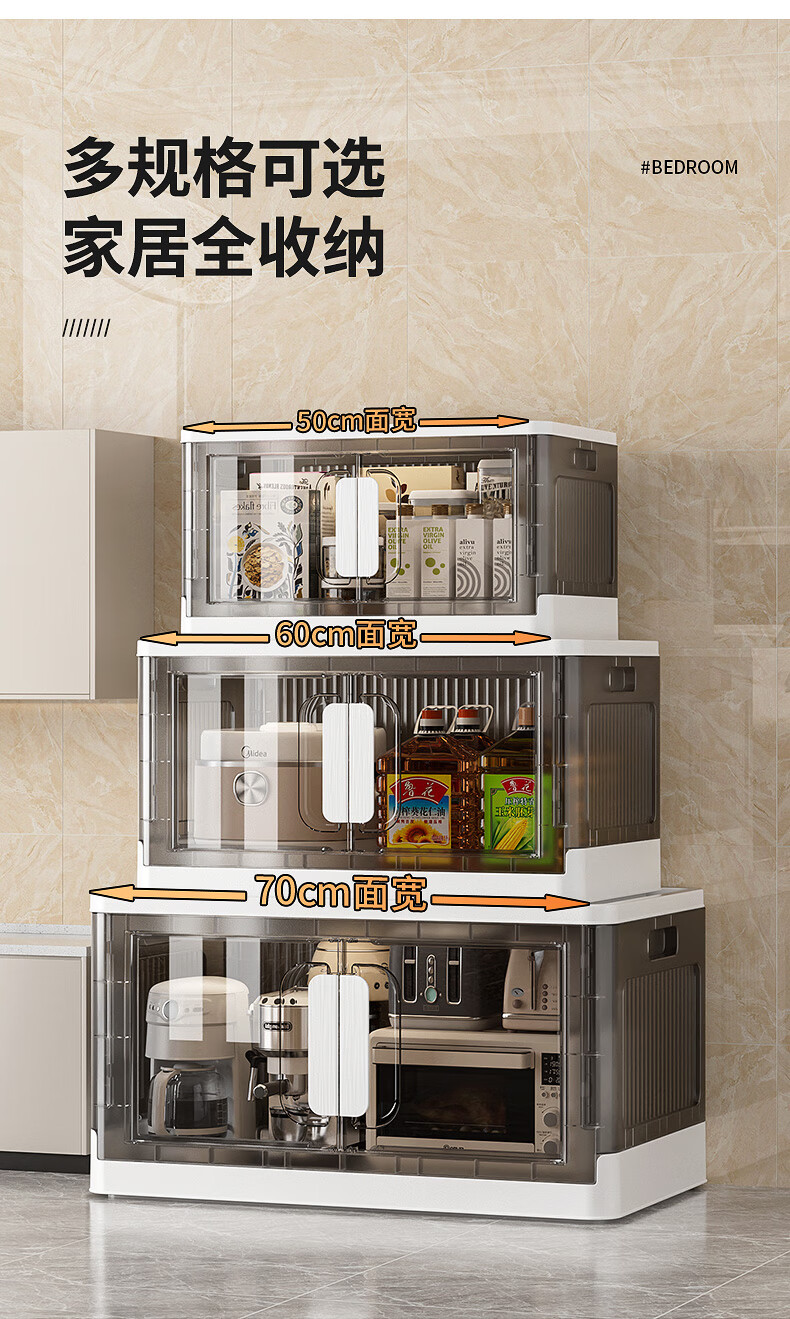 纳份爱折叠收纳箱大容量前开式塑料家用客厅零食玩具衣柜储物箱收纳柜子 大号-透白-3个装【50*32*30CM】