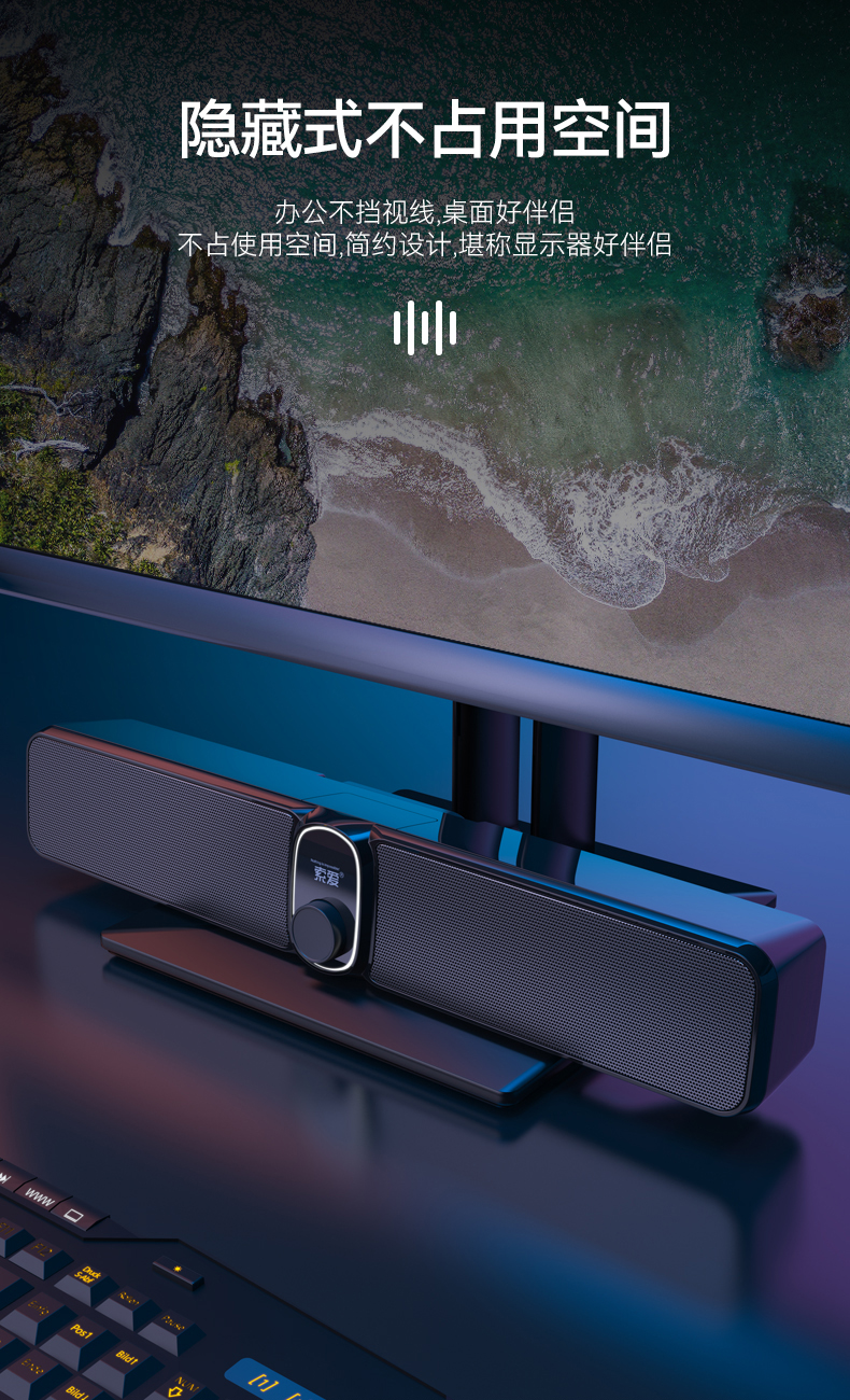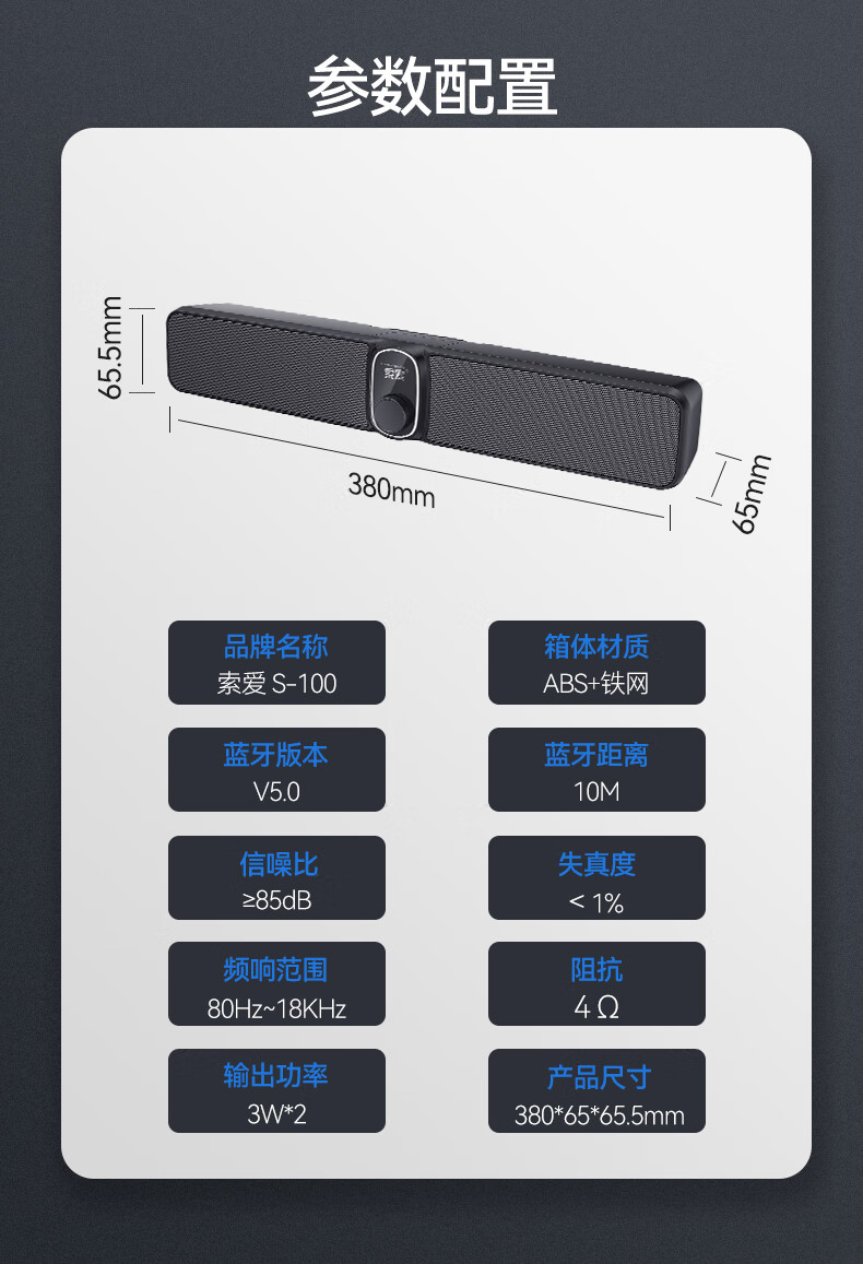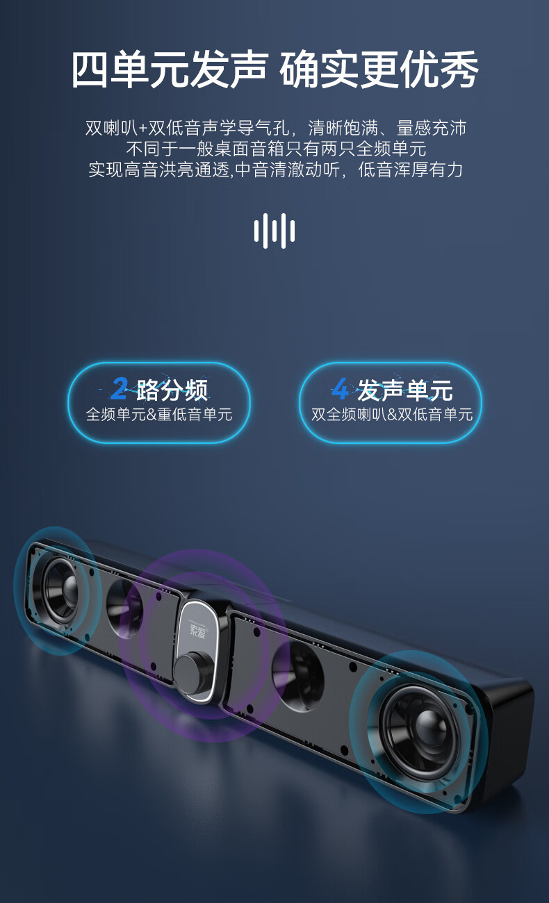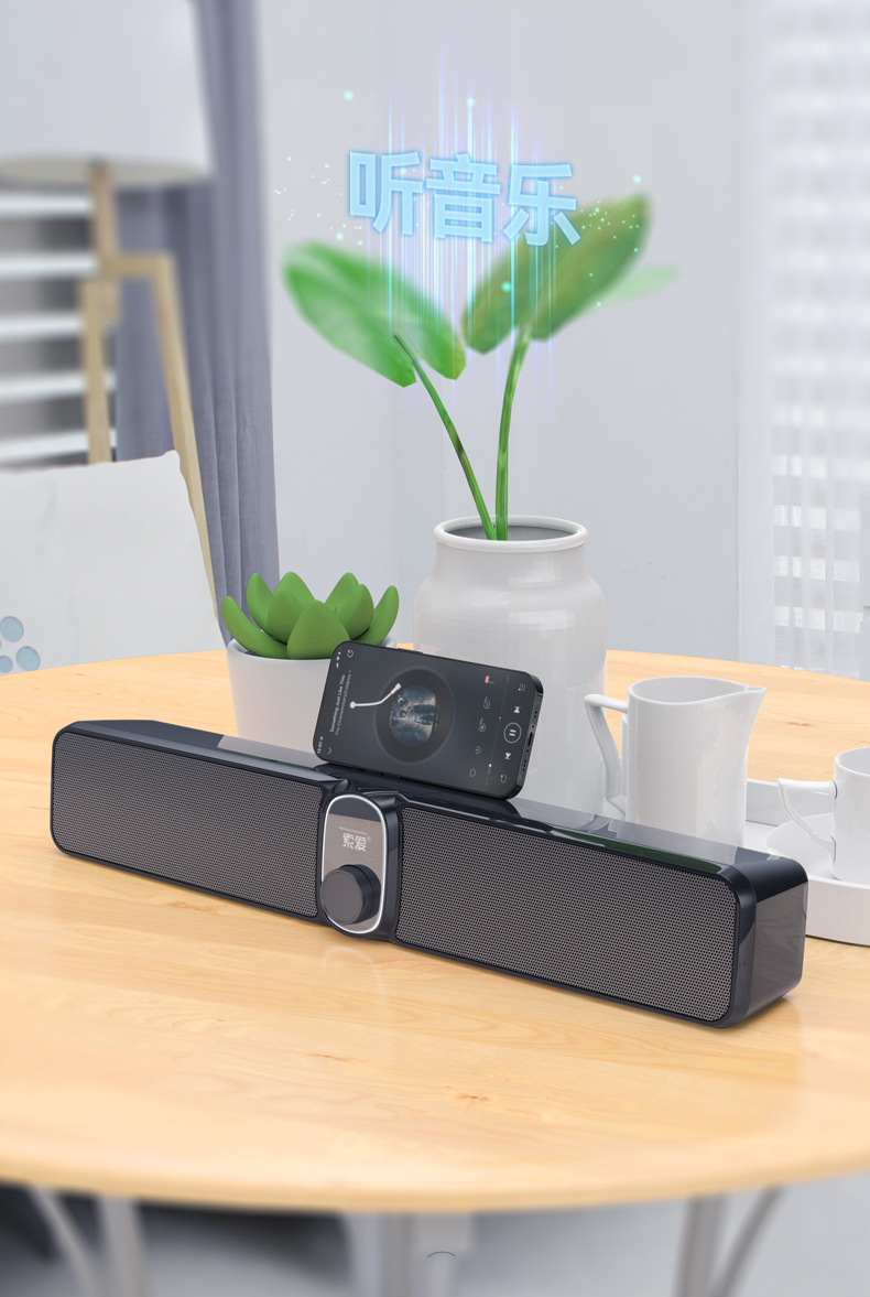 索爱(soaiy)S100蓝牙电脑长条音响桌面音箱家用迷你低音炮USB台式机笔记本游戏影响黑色 有线/蓝牙双连接
