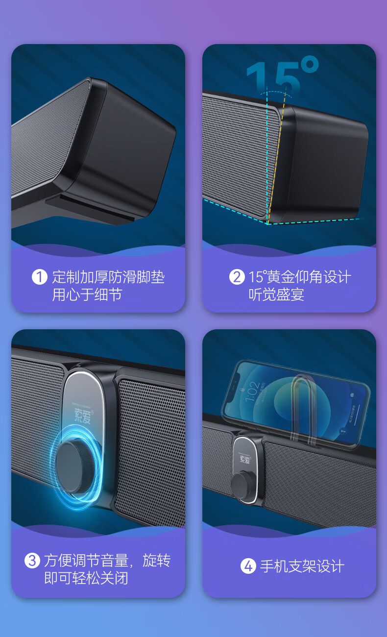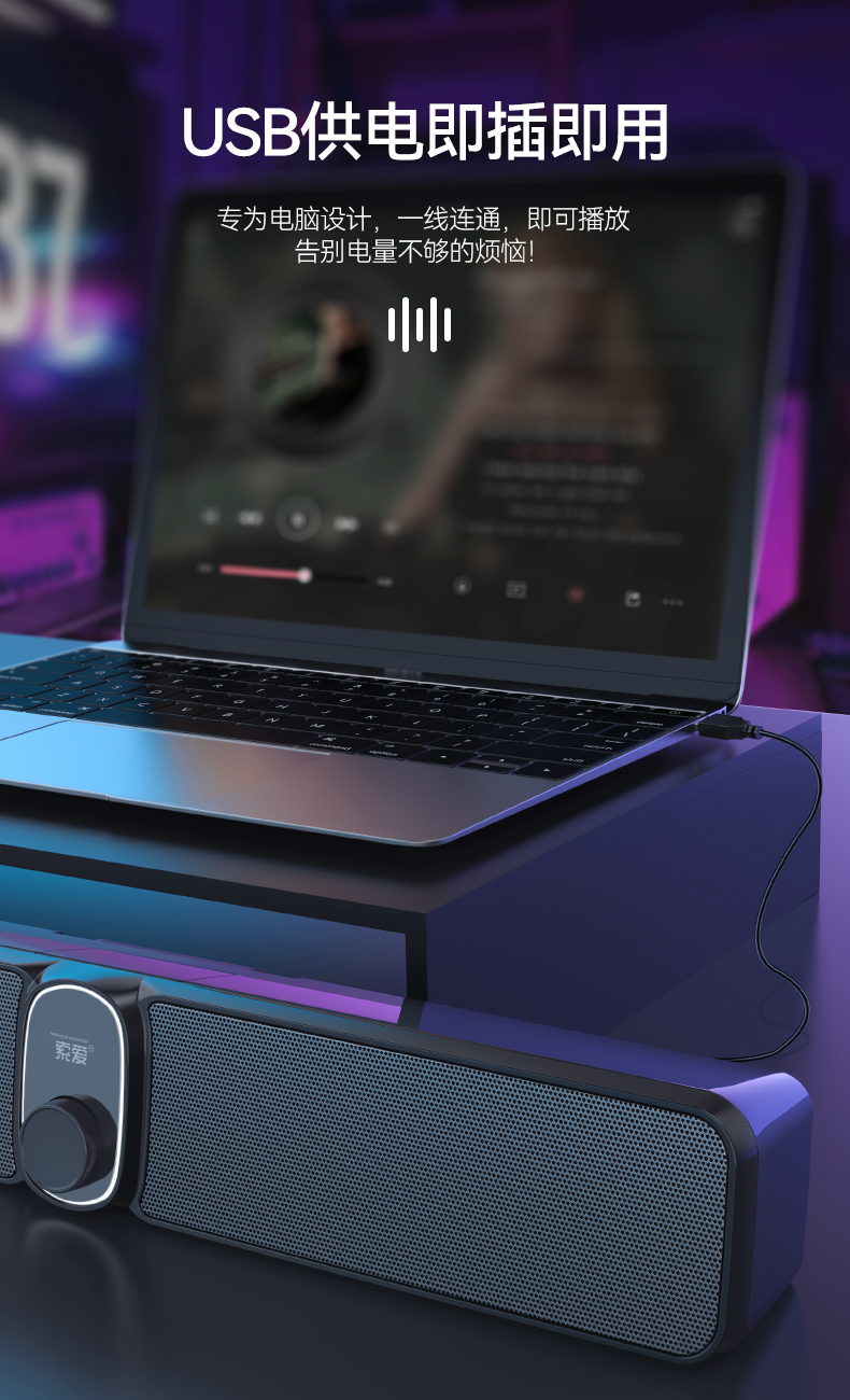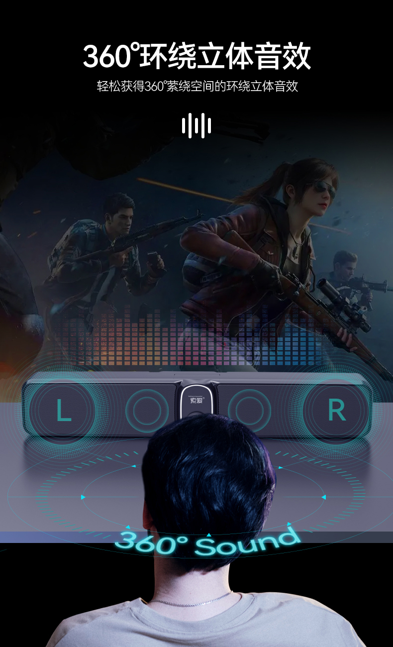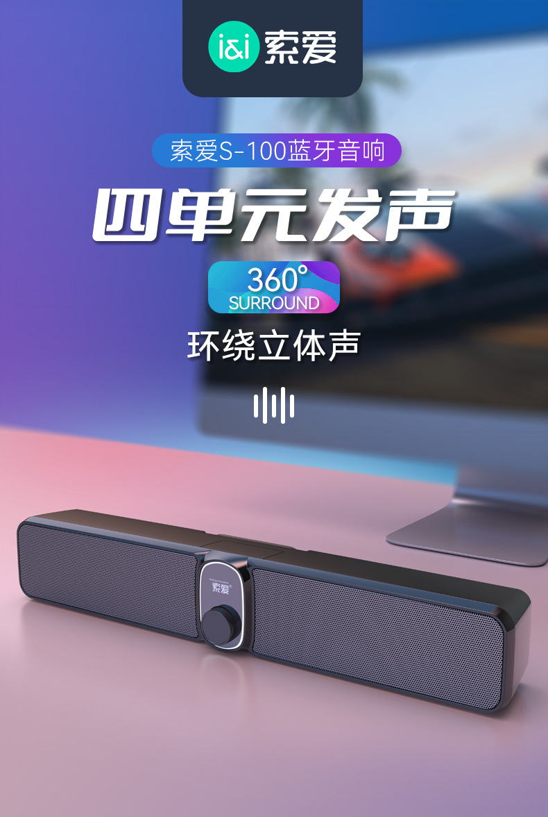 索爱(soaiy)S100蓝牙电脑长条音响桌面音箱家用迷你低音炮USB台式机笔记本游戏影响黑色 有线/蓝牙双连接