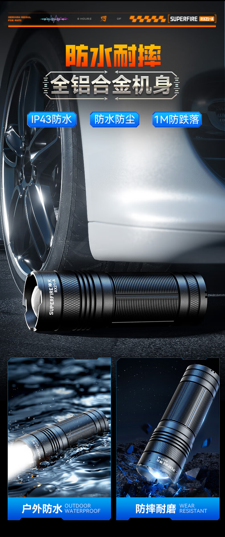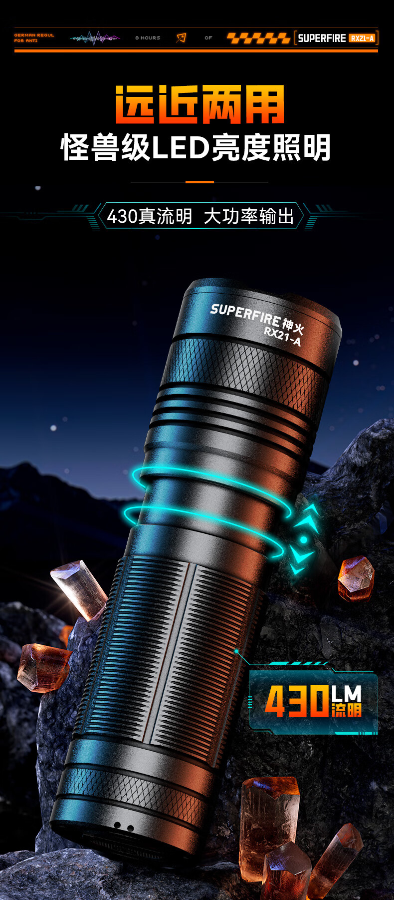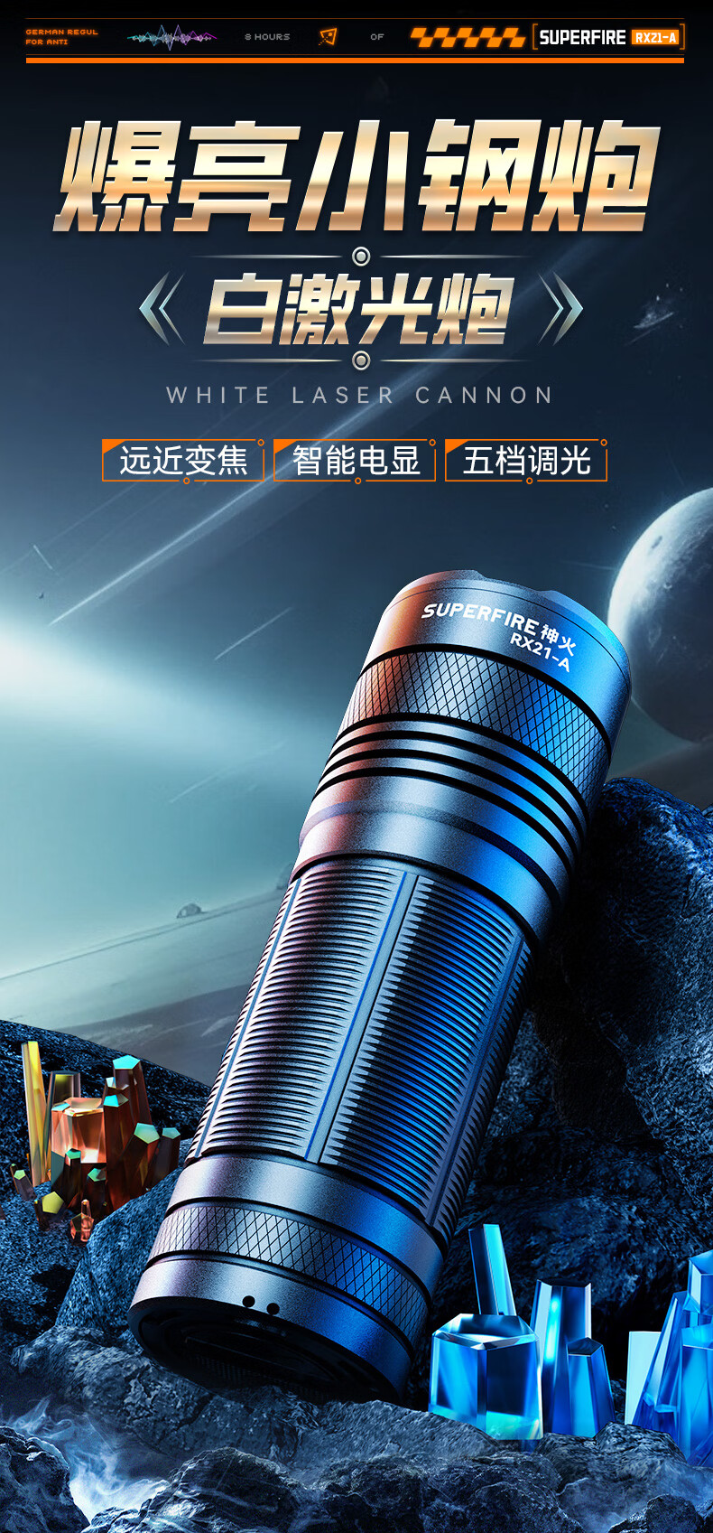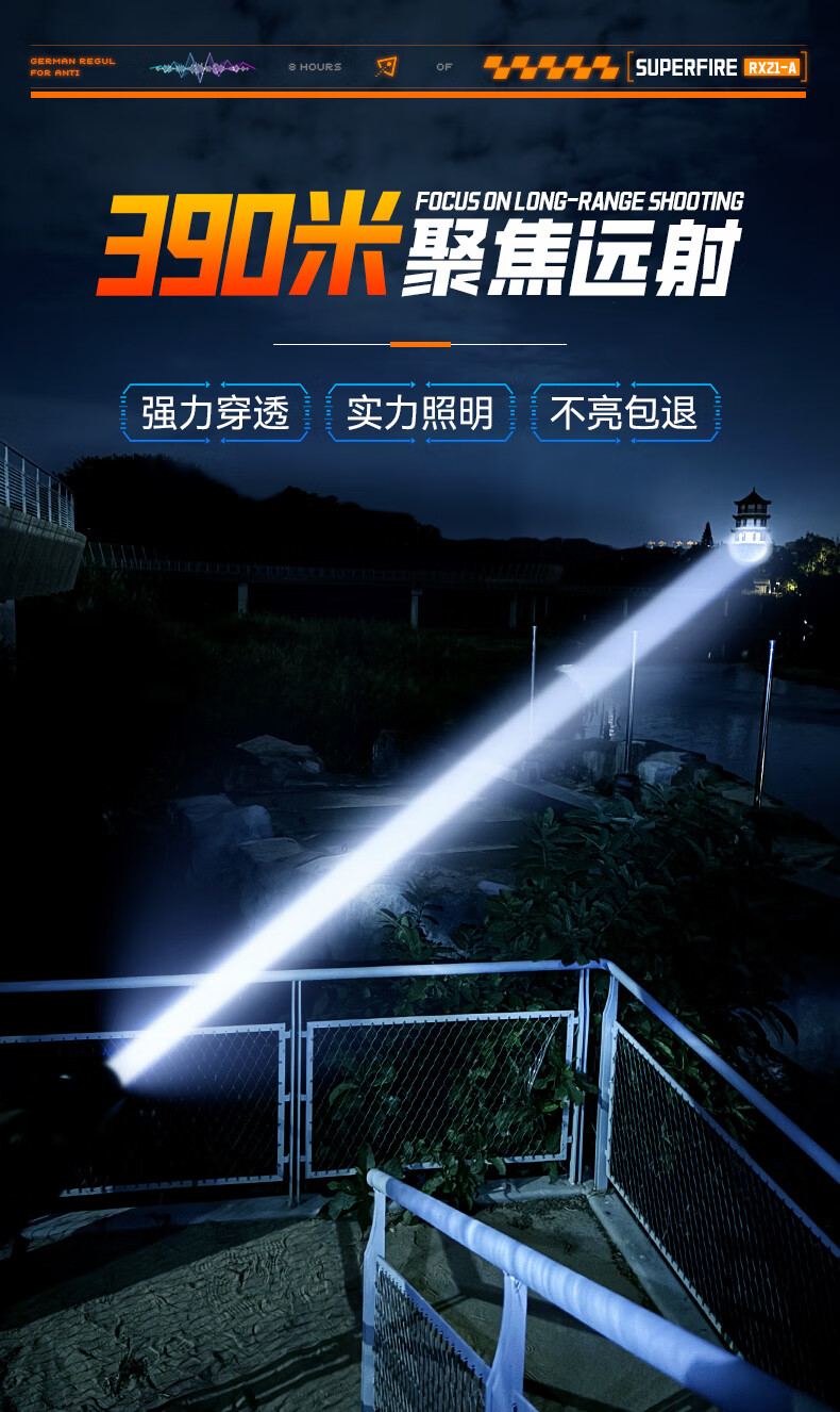 神火(SupFire)手电筒强光变焦远射超亮长续航便携军户外应急专用灯穿天炮200000