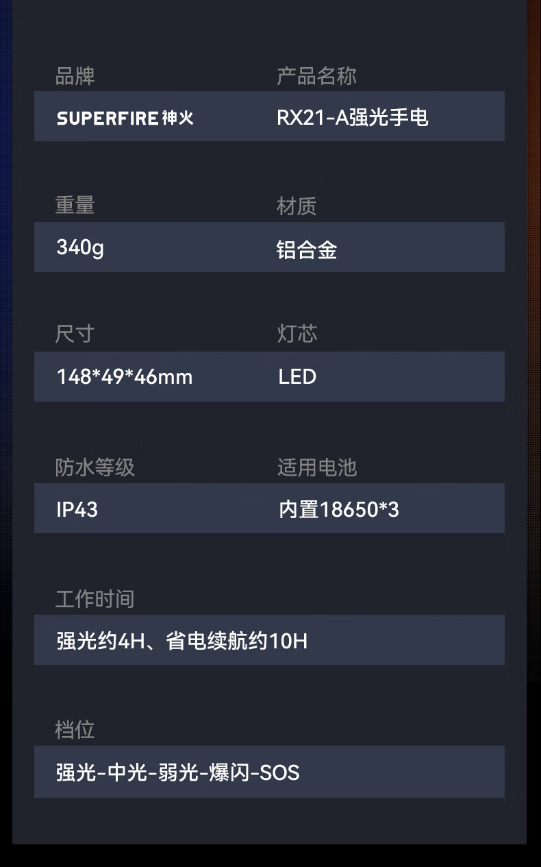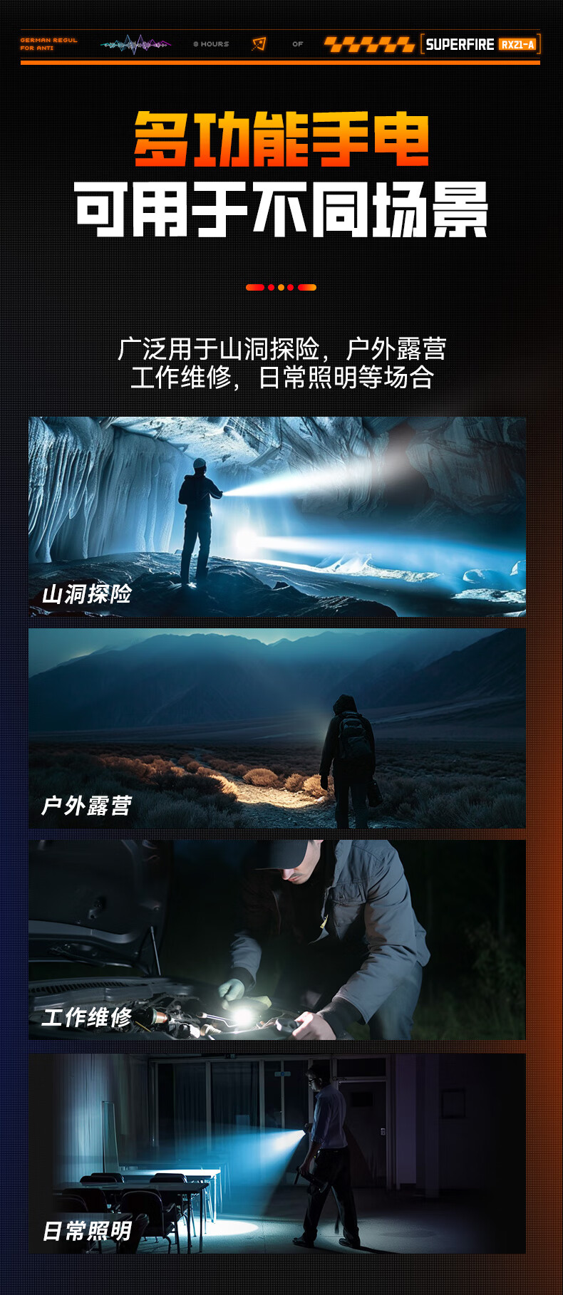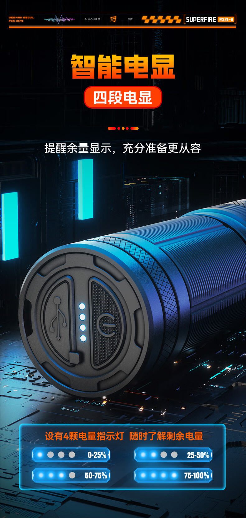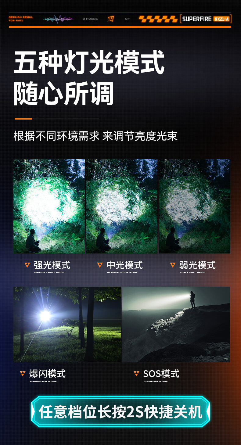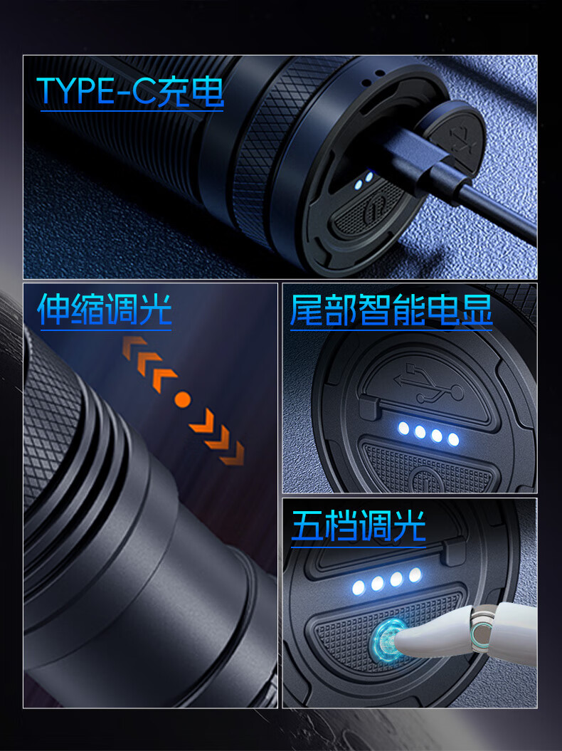 神火(SupFire)手电筒强光变焦远射超亮长续航便携军户外应急专用灯穿天炮200000