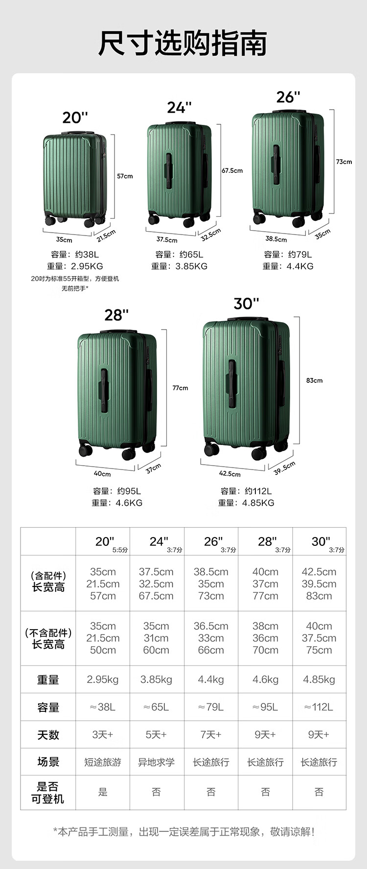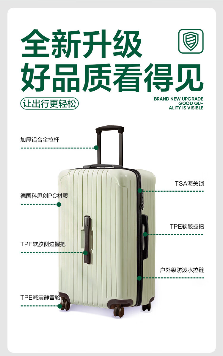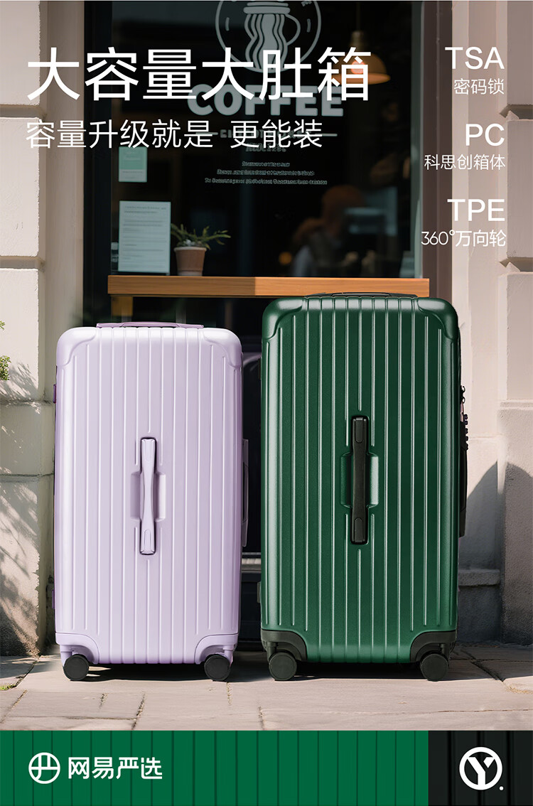 网易严选大容量行李箱学生开学大肚箱PC拉杆箱长途商务旅行箱暗松绿26英寸