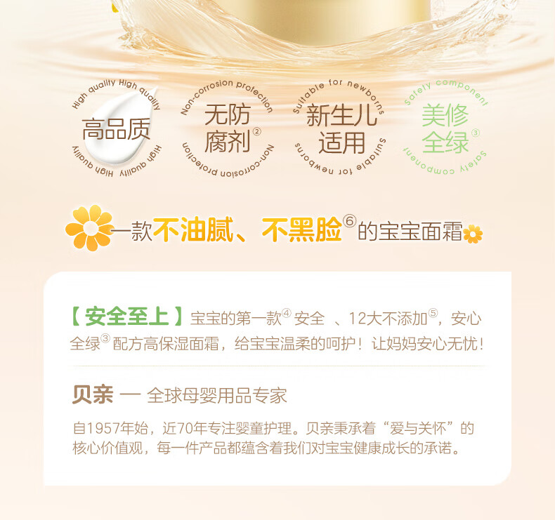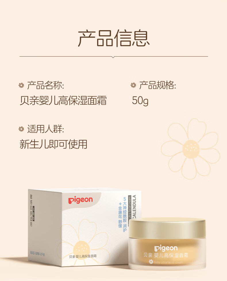 贝亲婴儿童面霜金盏花护理面霜高保湿润润霜四季身体乳0添加敏感肌50g