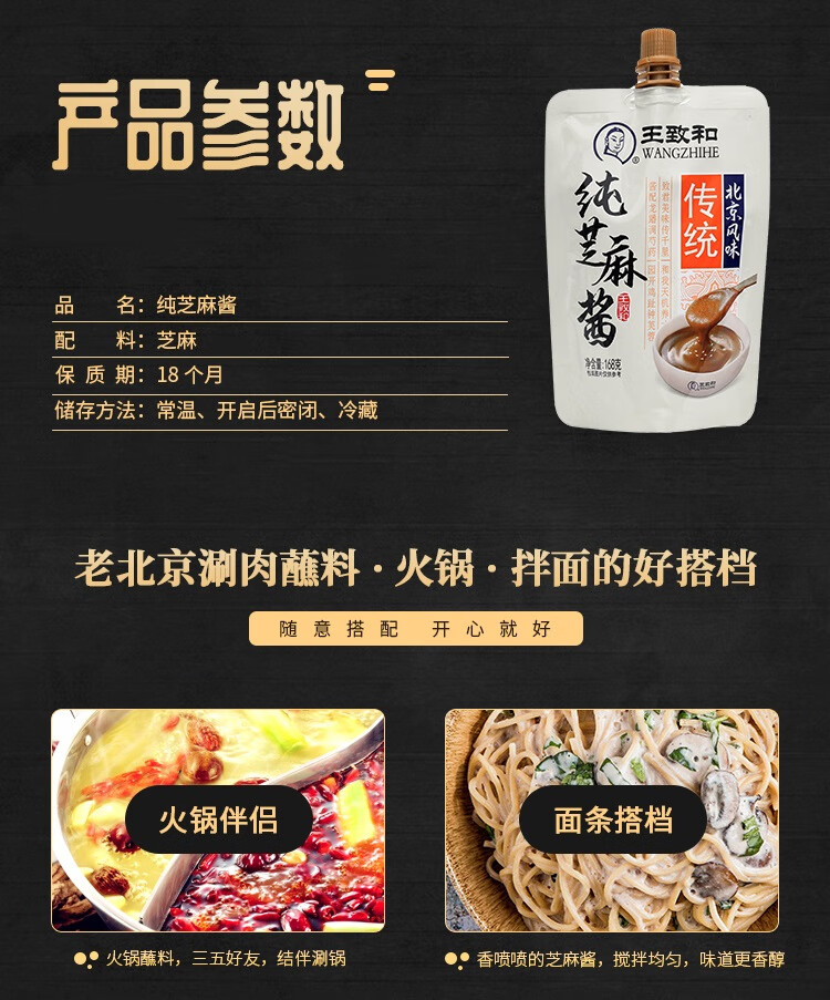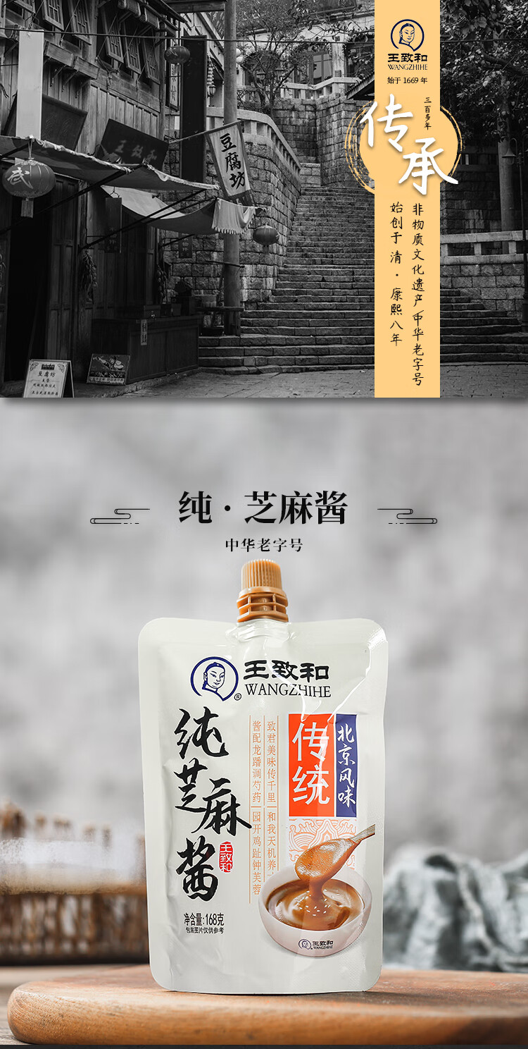 王致和 纯芝麻酱168g 凉拌面热干面酱火锅蘸料