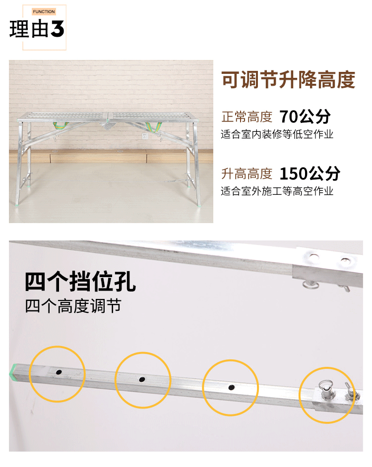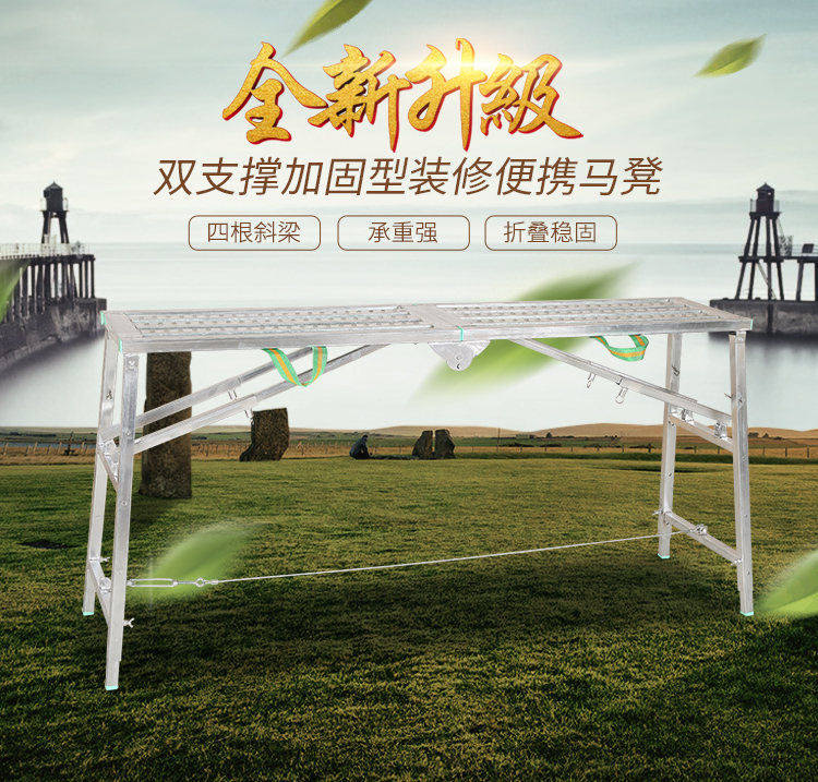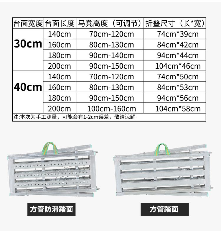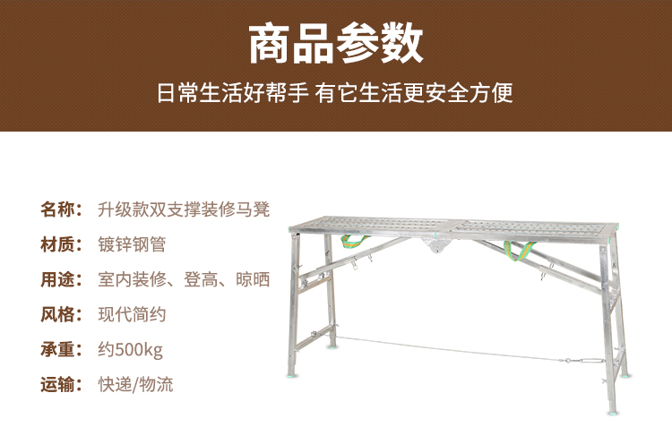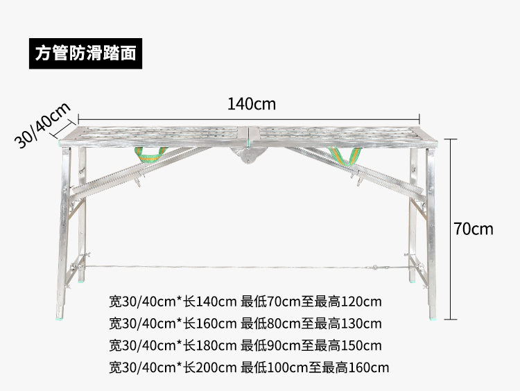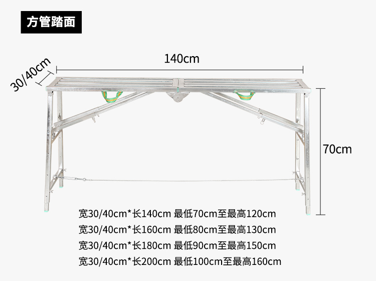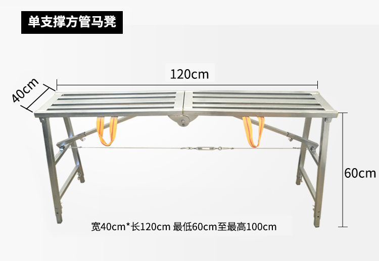 添禧折叠马凳升降加厚马登伸缩架子梯子工地刮腻子装修铁凳子特厚梯凳 双承重杆方管面180*40