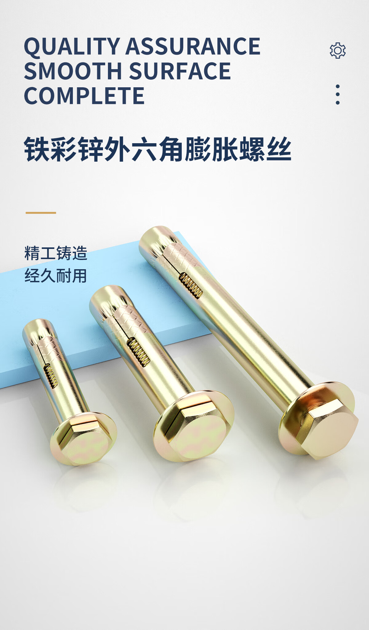 GUWANJI镀锌外六角内膨胀螺丝管空调地板澎胀拉爆爆炸内置膨胀螺栓M6-M12 M6*50[20只]
