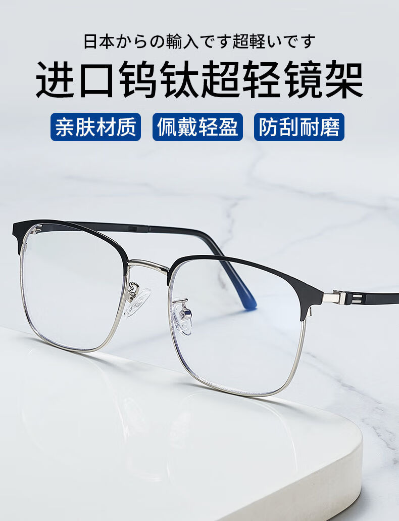 LESCA LUNETIER进口防蓝光高清老花镜片男高档品牌超轻老花眼镜黑银色100度