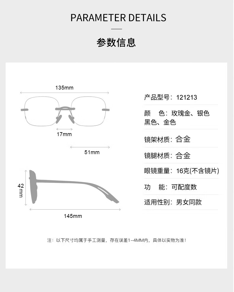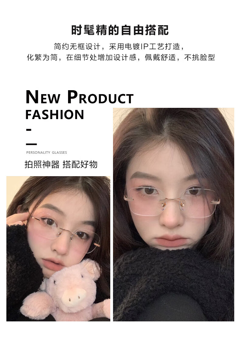 LESCA LUNETIER无框近视眼镜女可配度数防蓝光超轻高级感金丝无边框眼睛镜架七夕