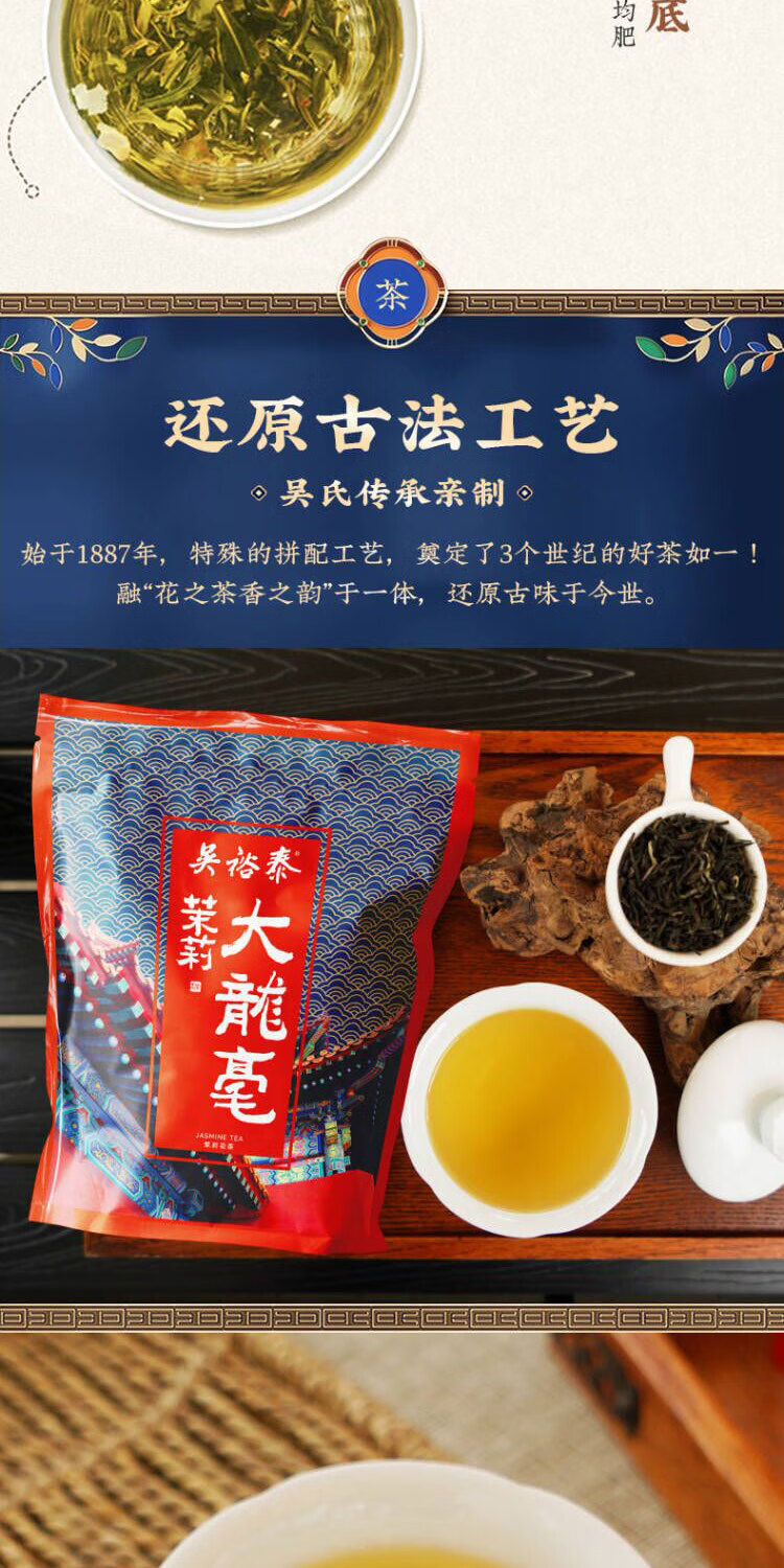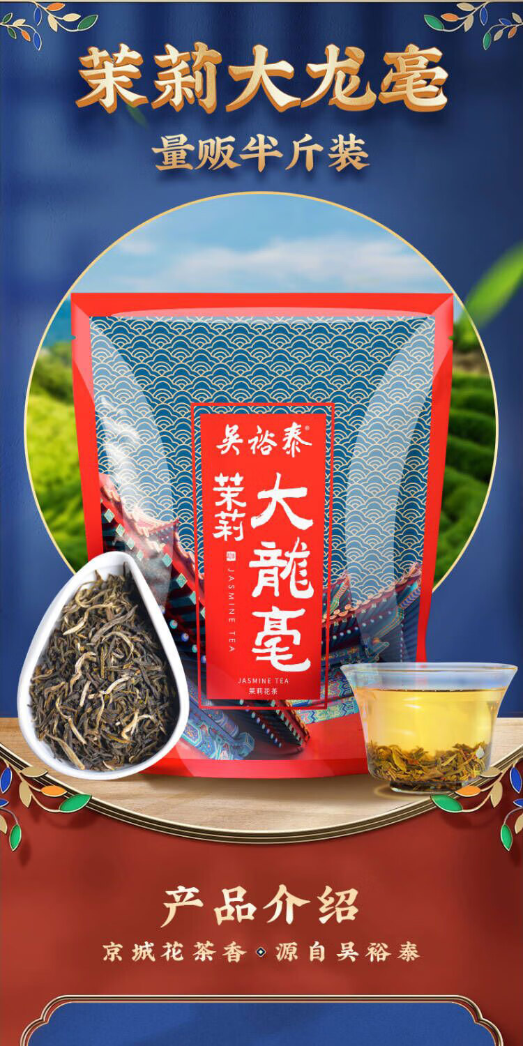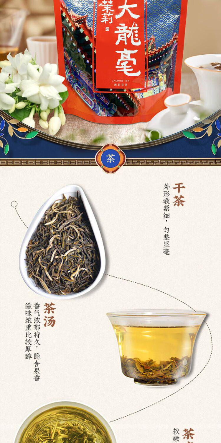 吴裕泰茶叶茉莉花茶浓香型六窨花草茶 茉莉大龙毫 250g/袋
