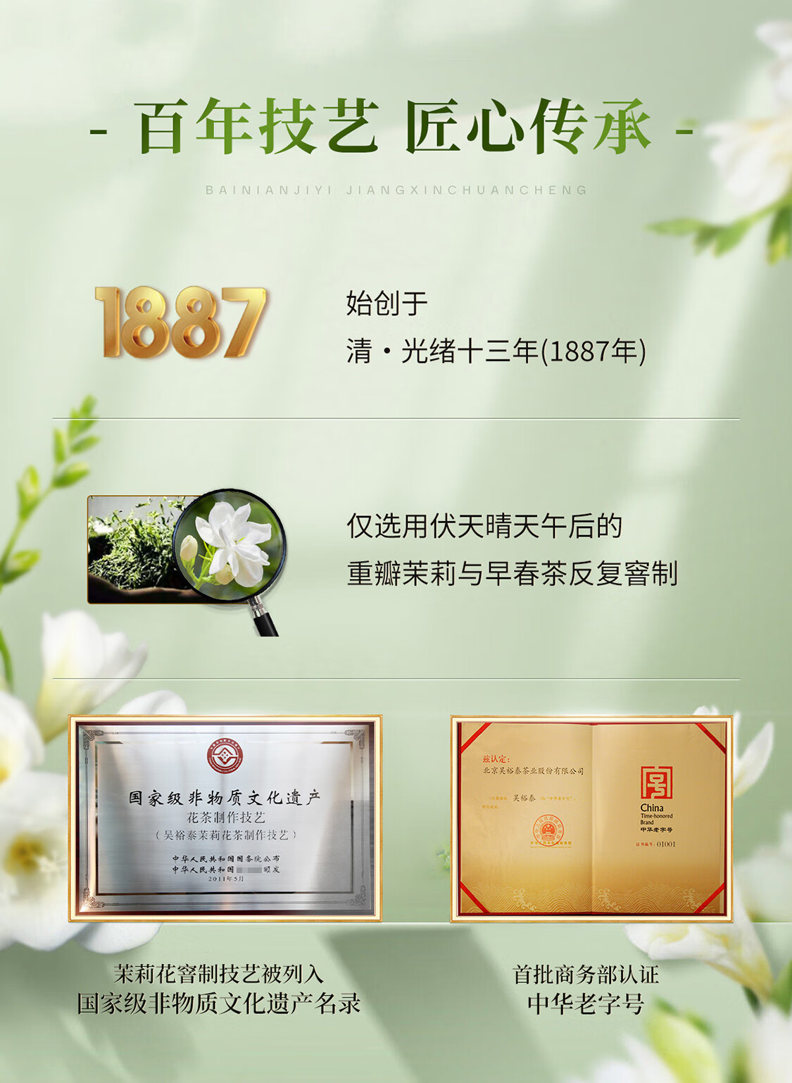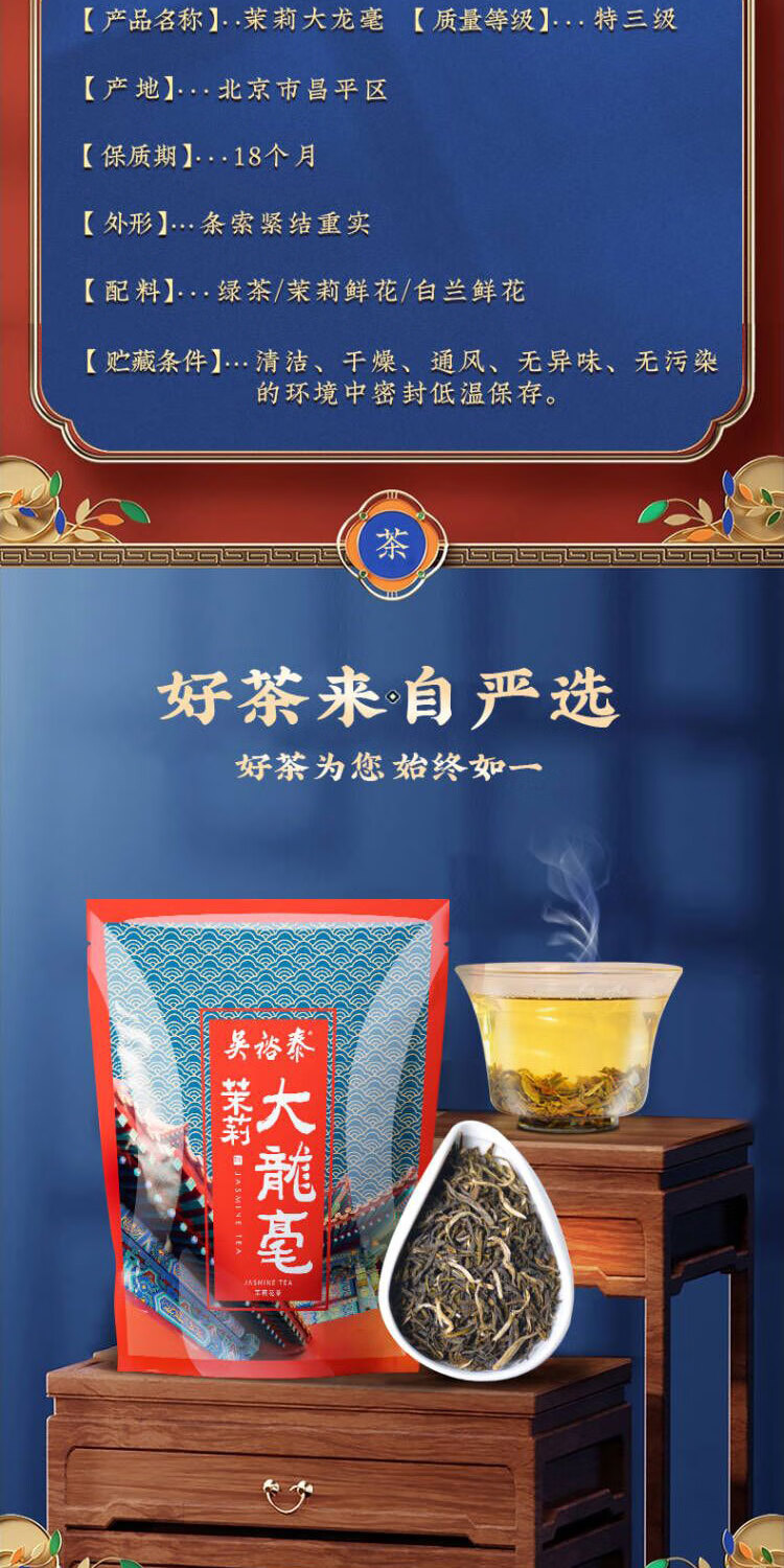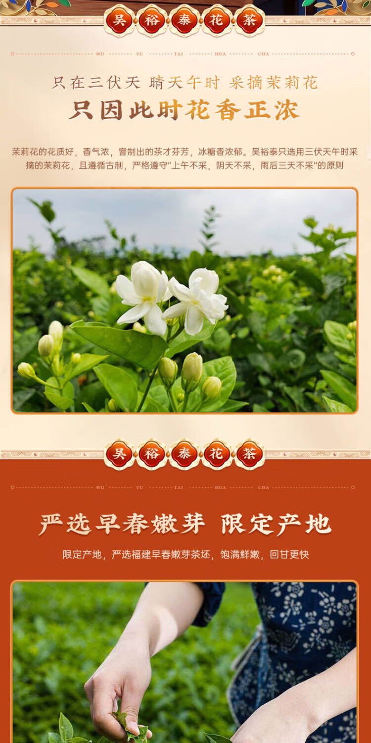 吴裕泰茶叶茉莉花茶浓香型六窨花草茶 茉莉大龙毫 250g/袋