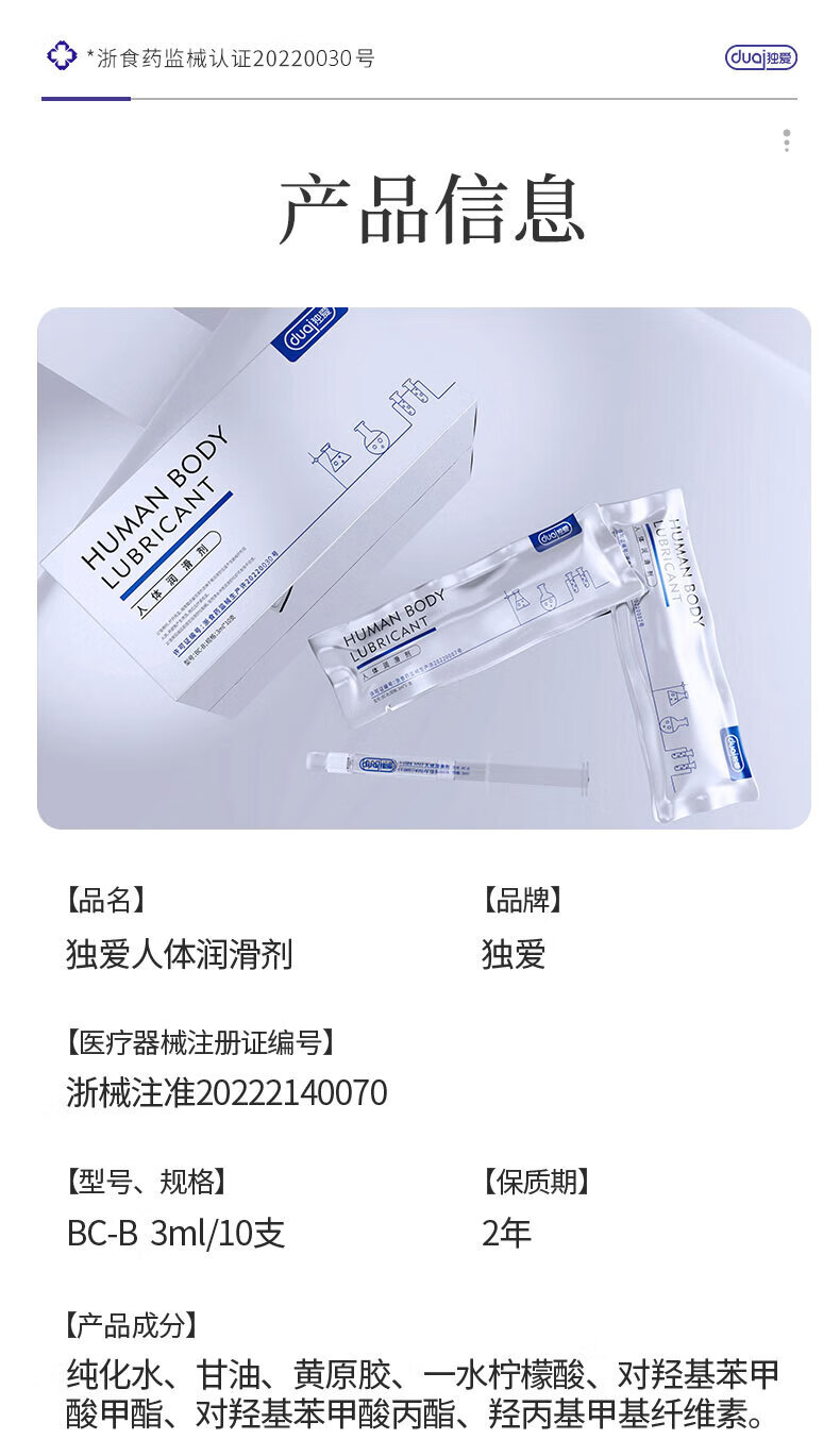 独爱(DU.AI)润滑液润滑剂医用人体成人房事免洗可舔持久润滑油夫妻3ml*10 [超大容量]水润500ml 默认