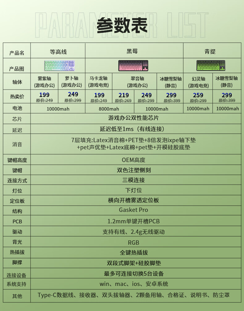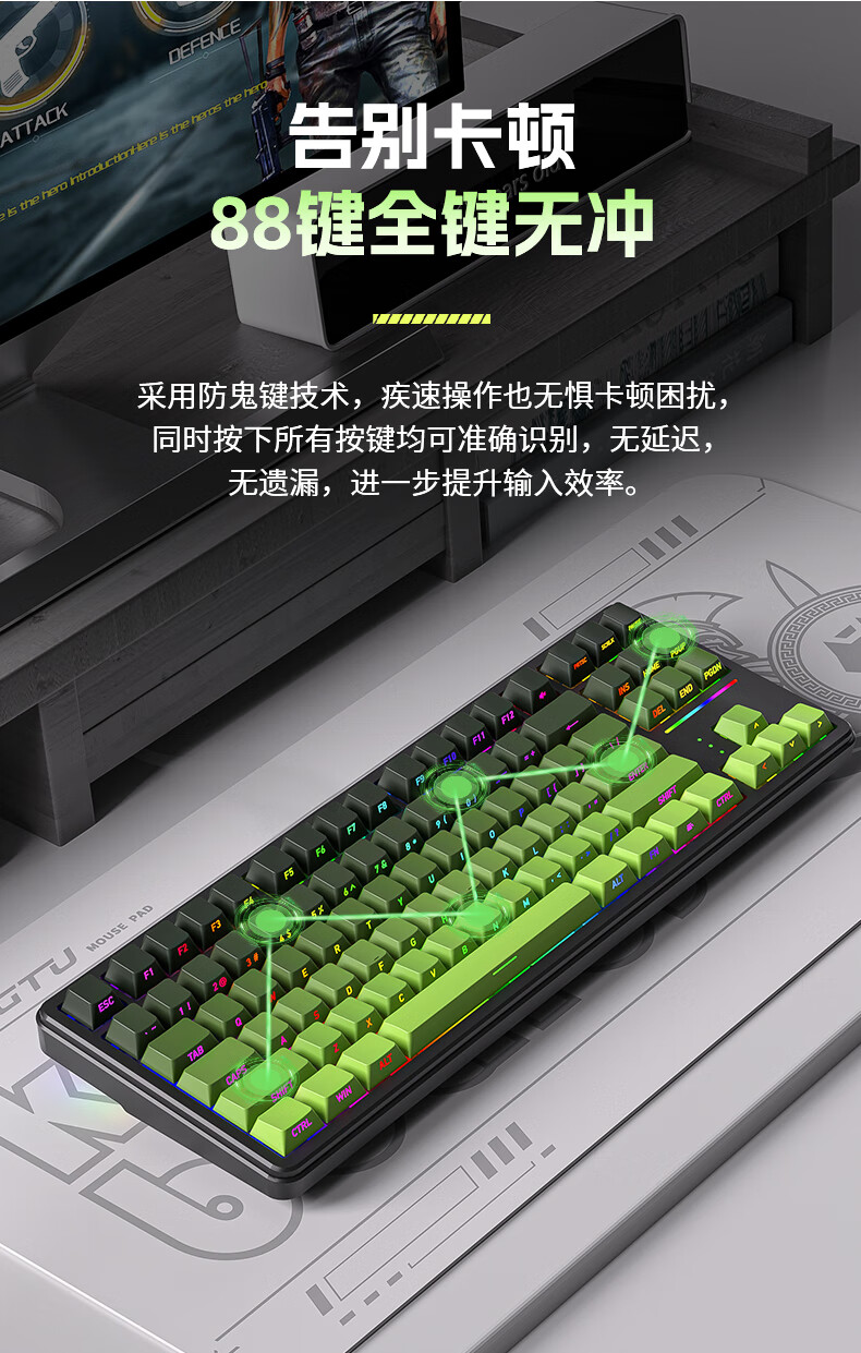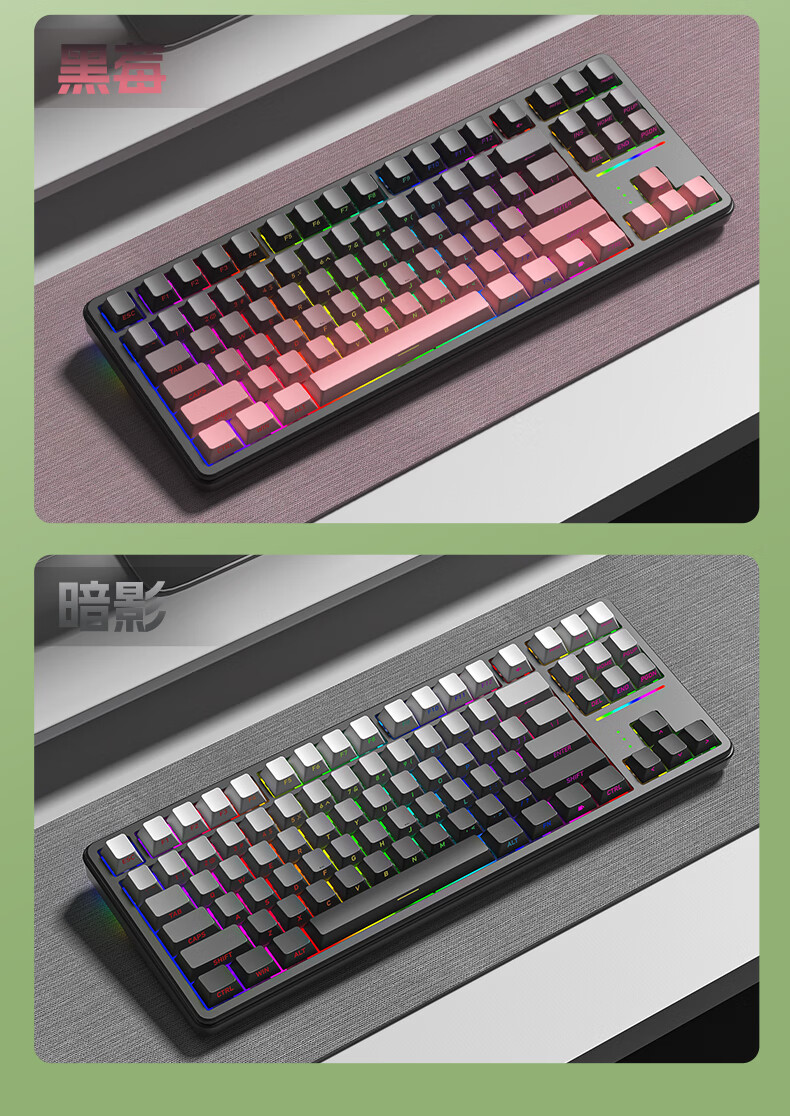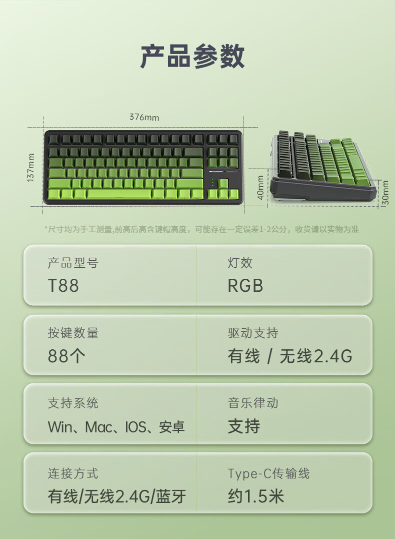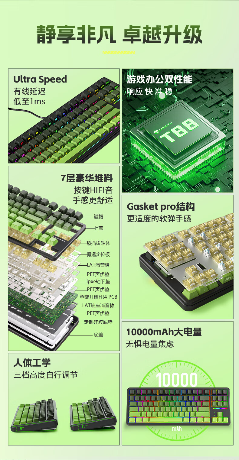 狼途T88Pro三模侧刻键盘客制化机械键盘电竞游戏办公有线无线蓝牙键盘 可选静音轴/游戏办公双性能轴 青提【静音冰糖雪梨轴】10000mAh-三模RGB