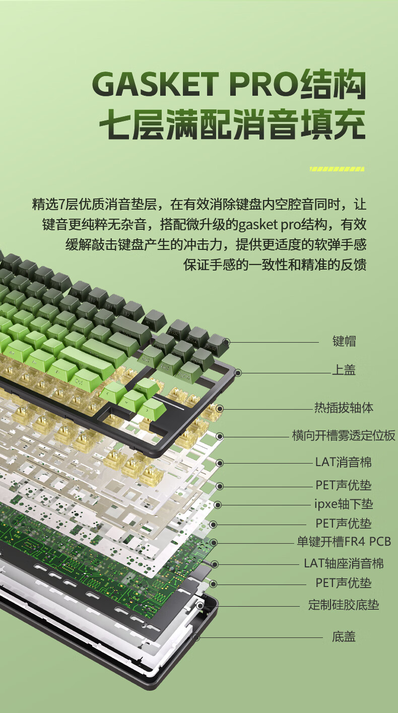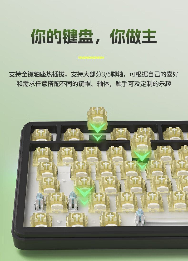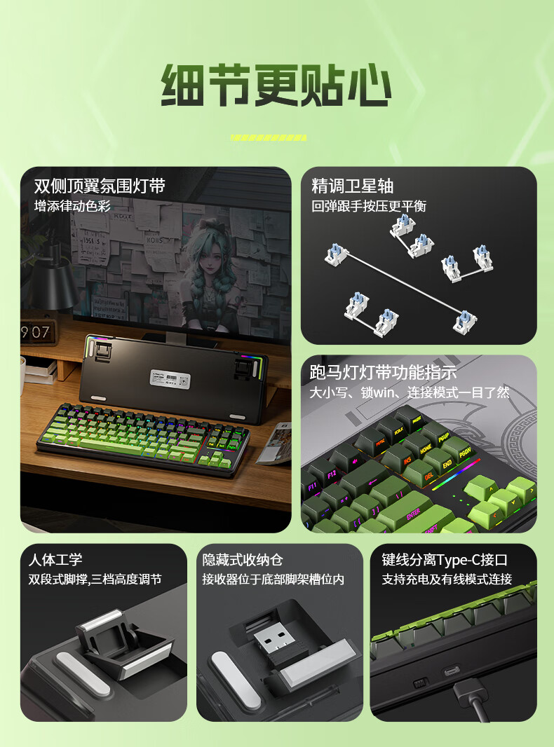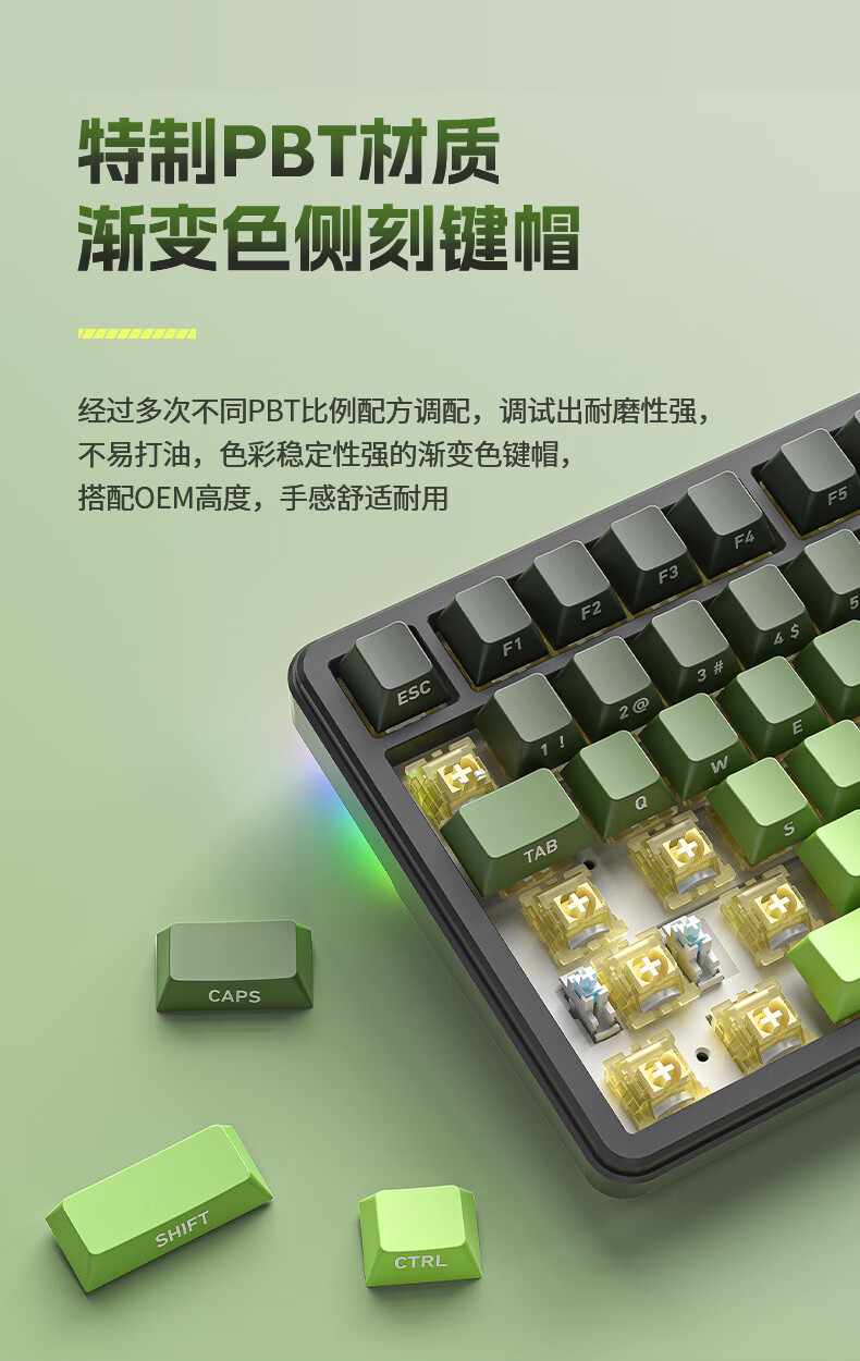 珂芝(KZZI)K98Pro无线机械键盘蓝牙有线三模游戏电竞办公键盘98键gasket客制化RGB热插拔胶坨坨麻将音 沙漠绿洲【彩虹轴】三模-游戏优选 98键