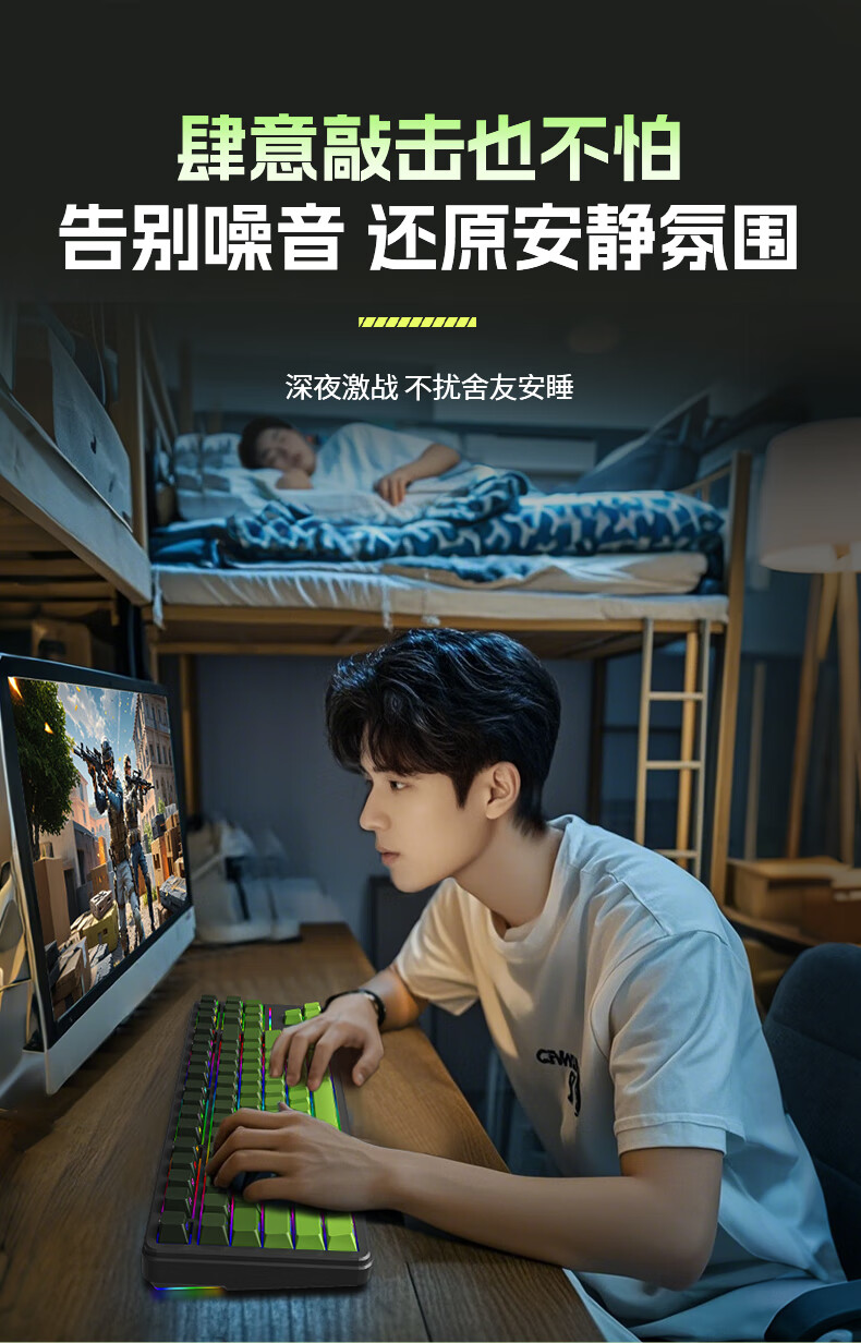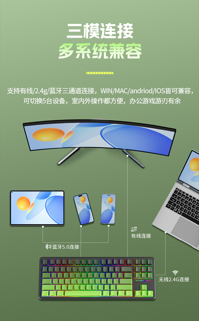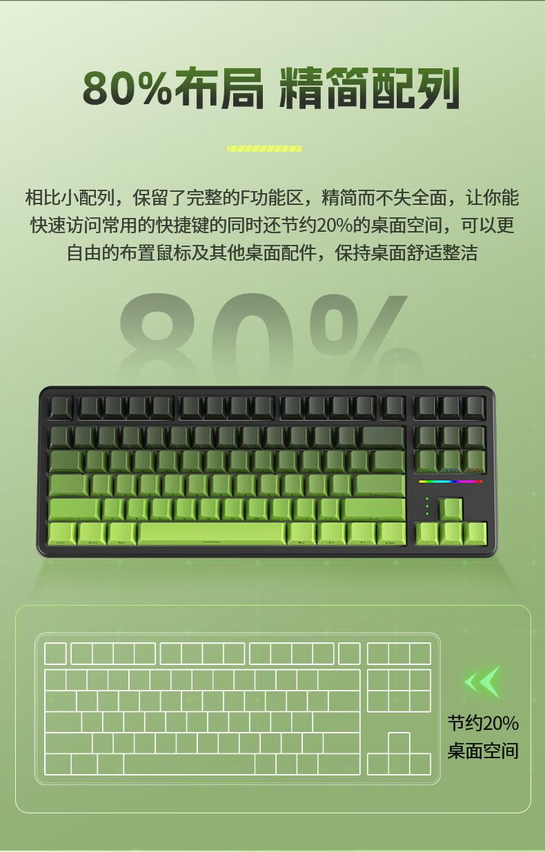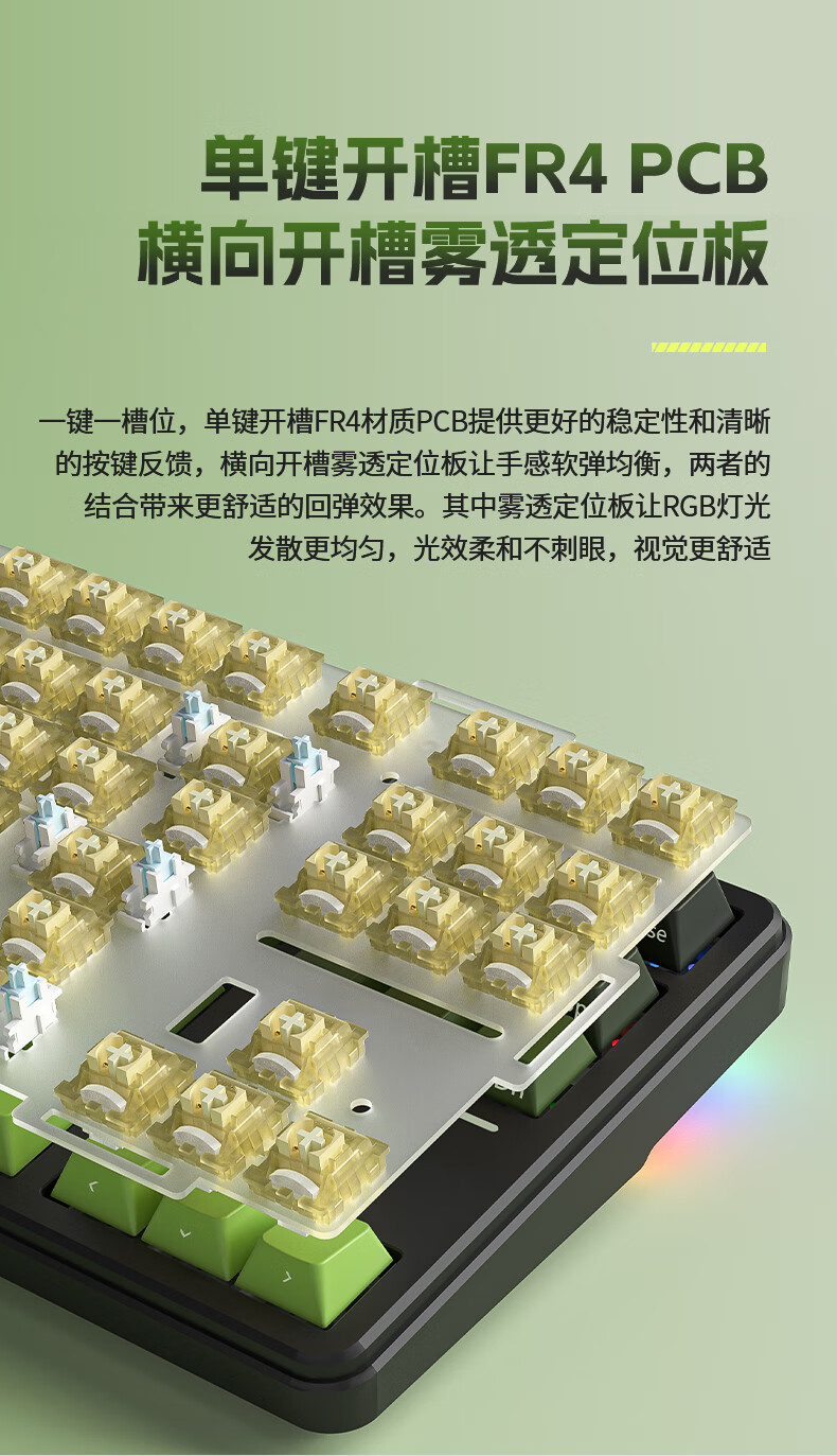 珂芝(KZZI)K98Pro无线机械键盘蓝牙有线三模游戏电竞办公键盘98键gasket客制化RGB热插拔胶坨坨麻将音 沙漠绿洲【彩虹轴】三模-游戏优选 98键