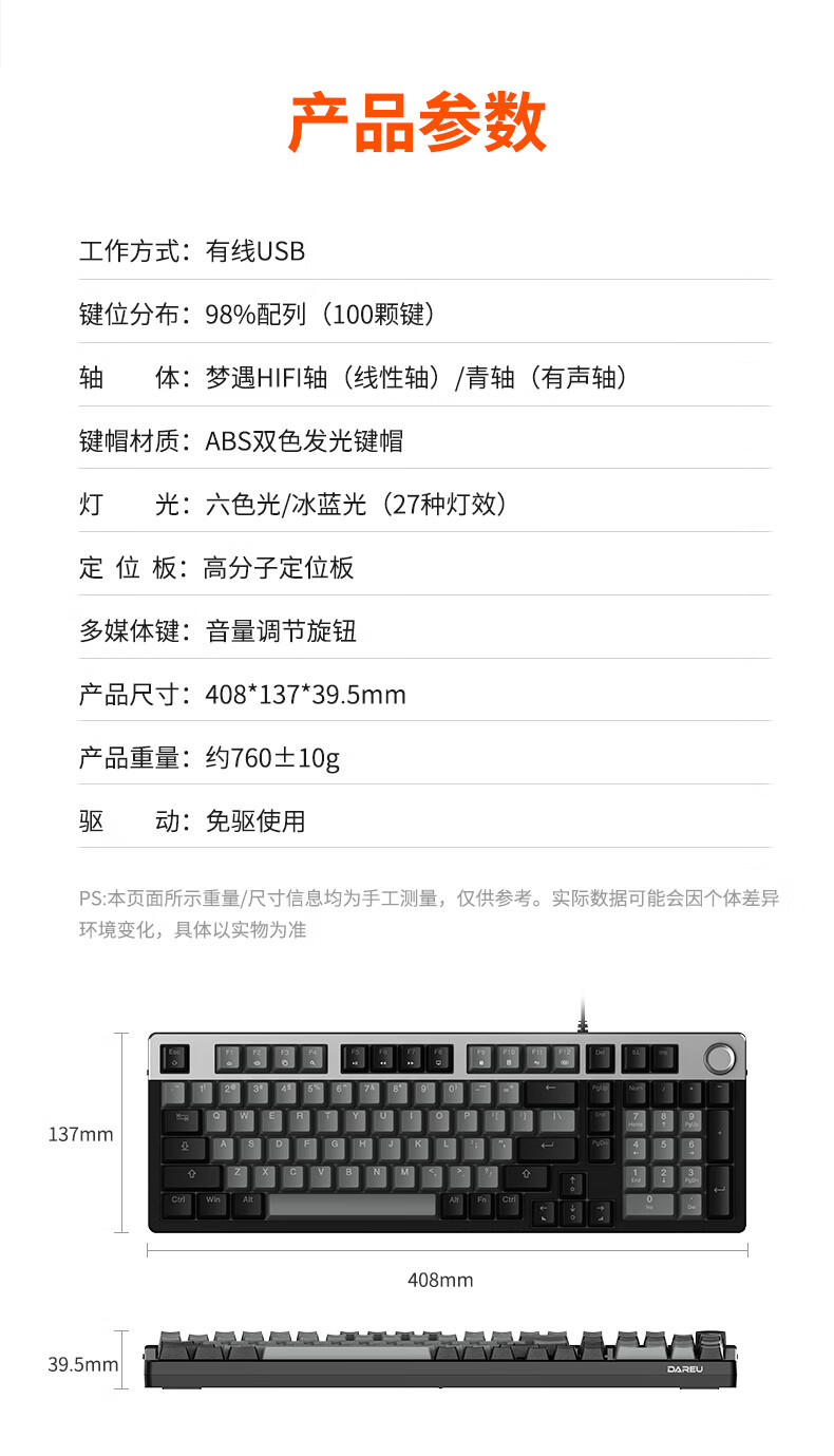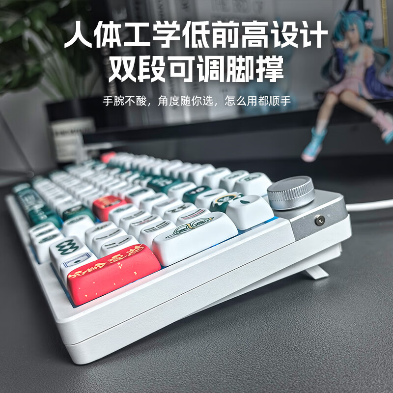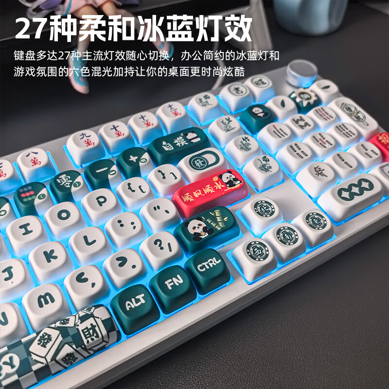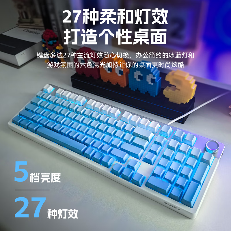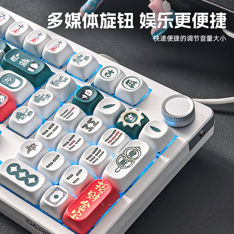 达尔优EK815PRO麻将音机械键盘人体工学电竞游戏办公键盘青轴创意电脑外设 蓝白渐变