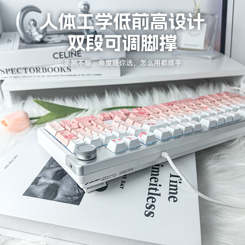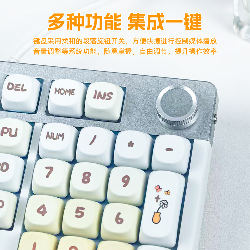 元气方糖work100全尺寸矮轴三模机械键盘商务办公轻薄便携全键热插拔苹果安卓通用 皓白 云烟轴 104