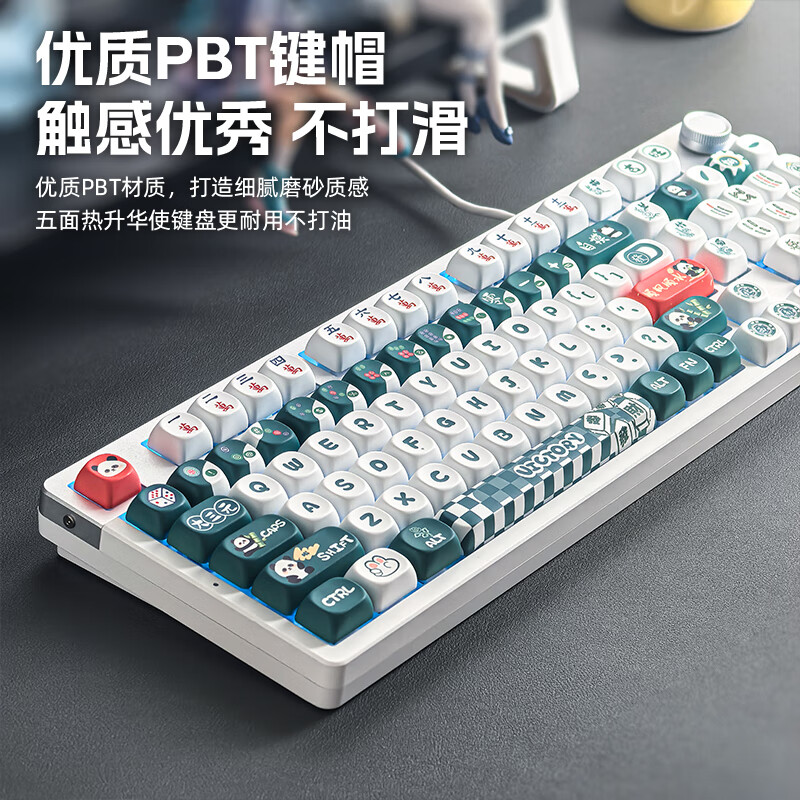 珂芝(KZZI)K98Pro无线机械键盘蓝牙有线三模游戏电竞办公键盘98键gasket客制化RGB热插拔胶坨坨麻将音 沙漠绿洲【彩虹轴】三模-游戏优选 98键