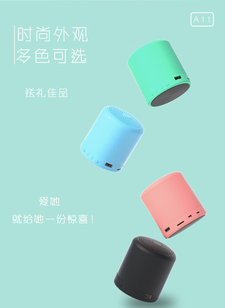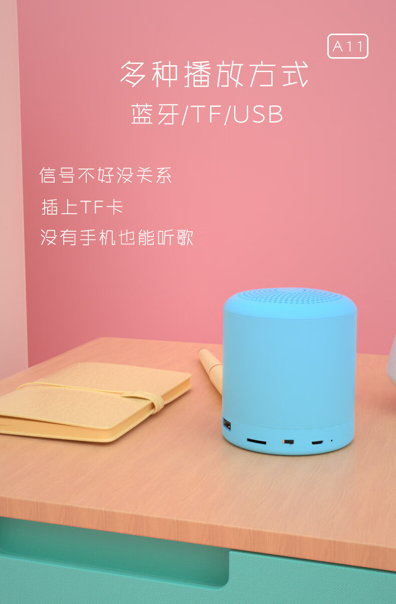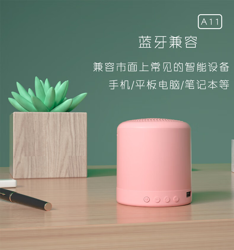 马卡龙迷你蓝牙音响手机电脑笔记本低音炮迷你无线USB插卡小音箱 A11-粉色