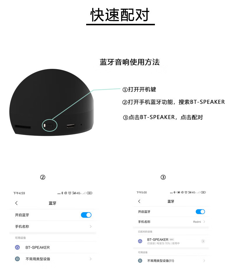 玛幻【甄选】无线智能炫彩蓝牙低音炮音响音量高音质迷你蓝牙插卡音箱 黑色【可插内存卡版】 【蓝牙连接+音质升级】