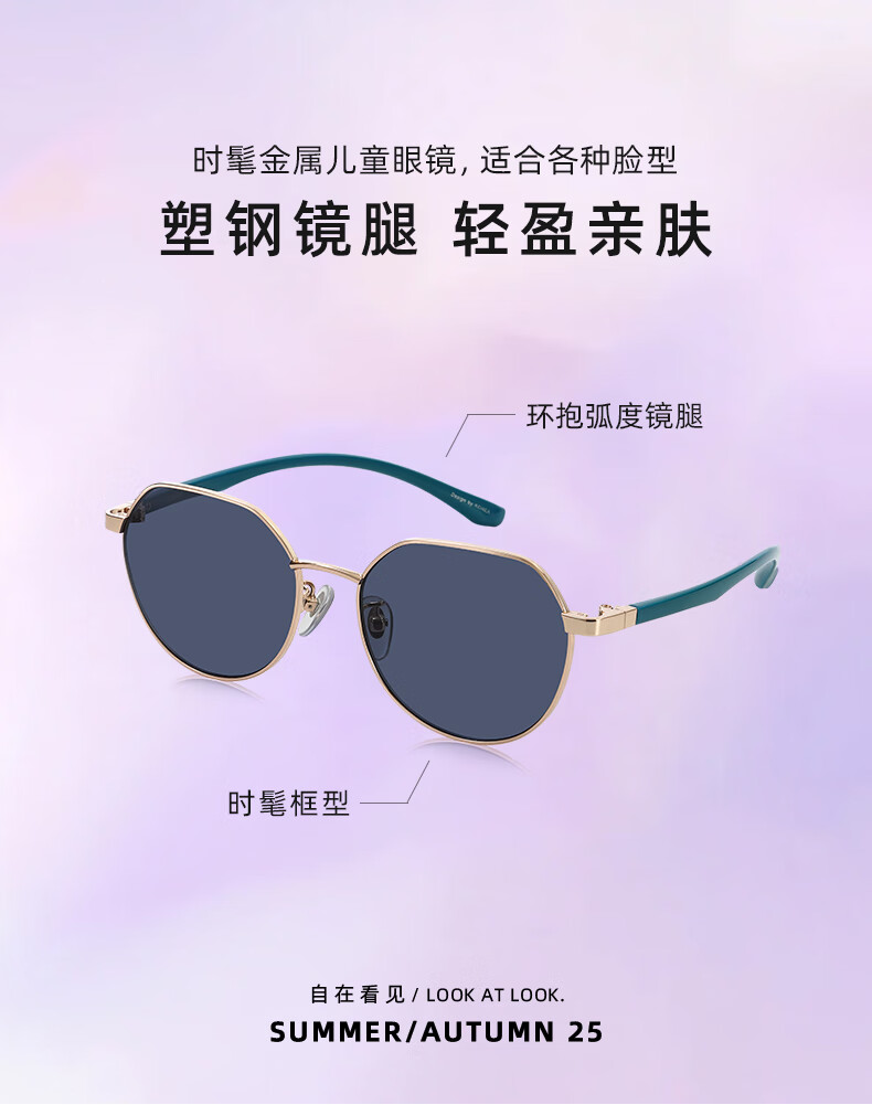 LOOK眼镜时髦金属儿童墨镜太阳镜防紫外线塑钢镜腿开学