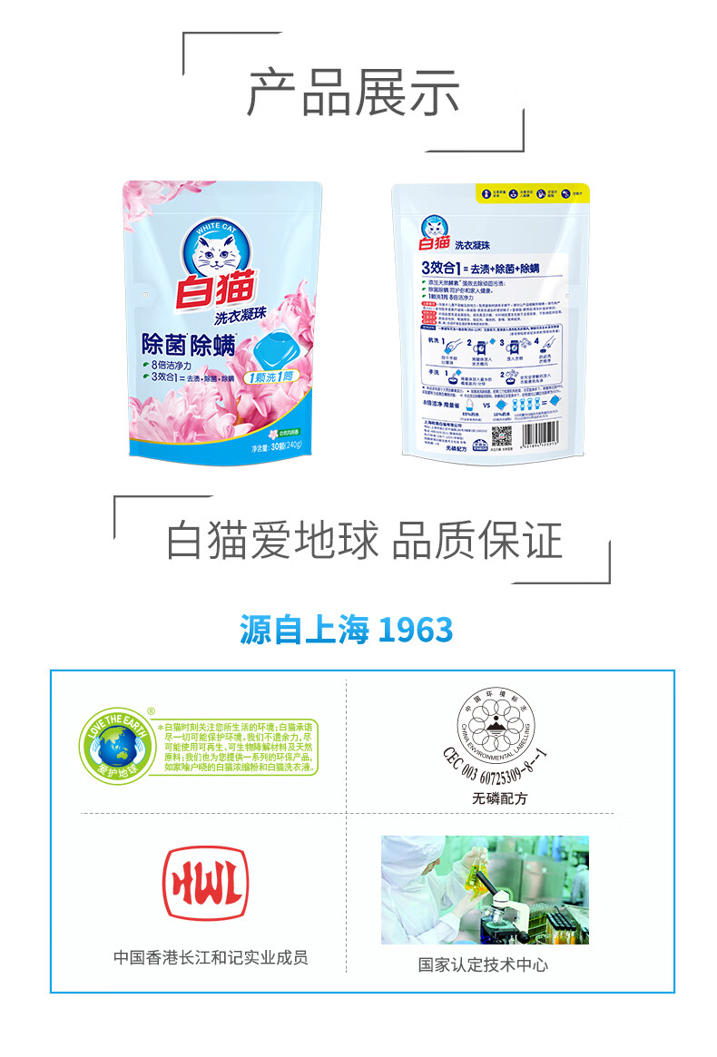 白猫除菌除螨凝珠8gx30颗 8g*30颗