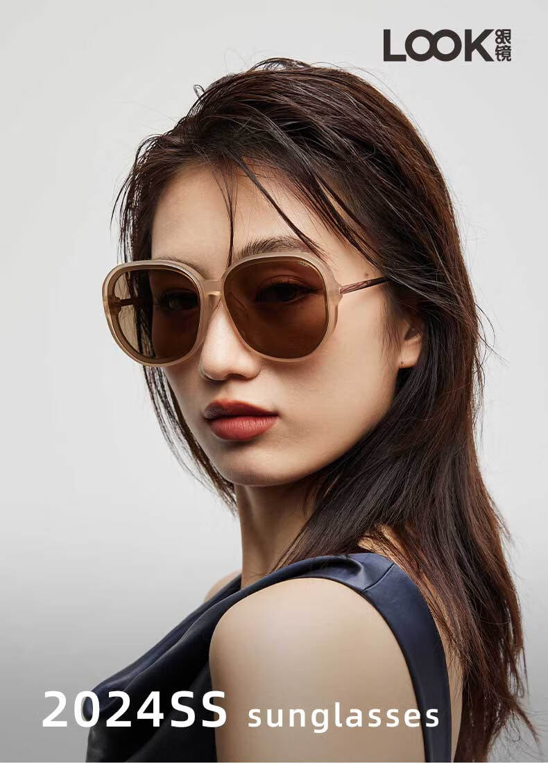 LOOK眼镜新款太阳镜摩登大框潮流墨镜韩版太阳镜防紫外线显瘦 奶茶色七夕