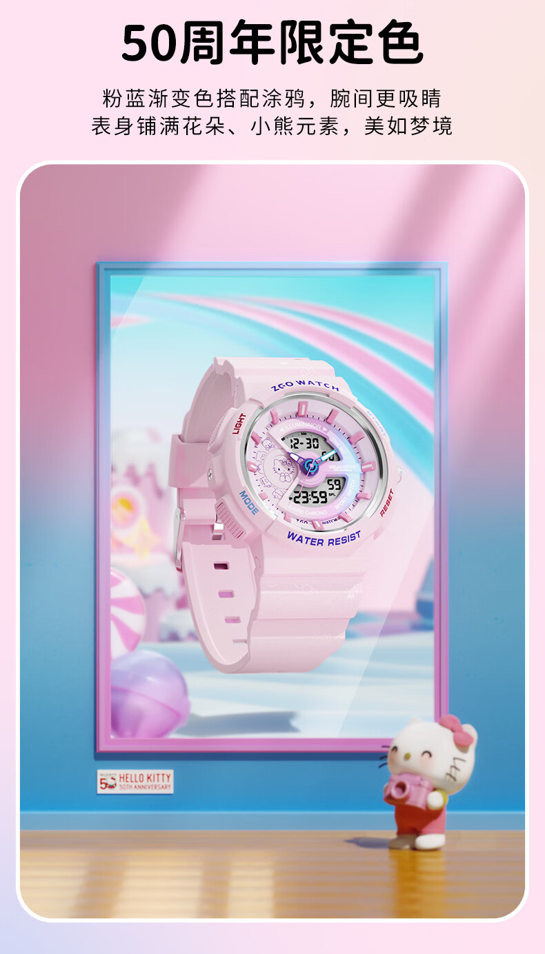 Hello Kitty【50周年限定】手表女学生小学初中生儿童电子手表开学季生日礼物