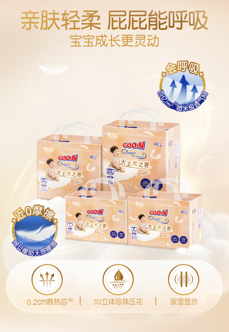 大王(GOO.N)光之羽 短裤式婴儿纸尿裤XL3片(12-17kg)尿不湿 超薄透气 试用装