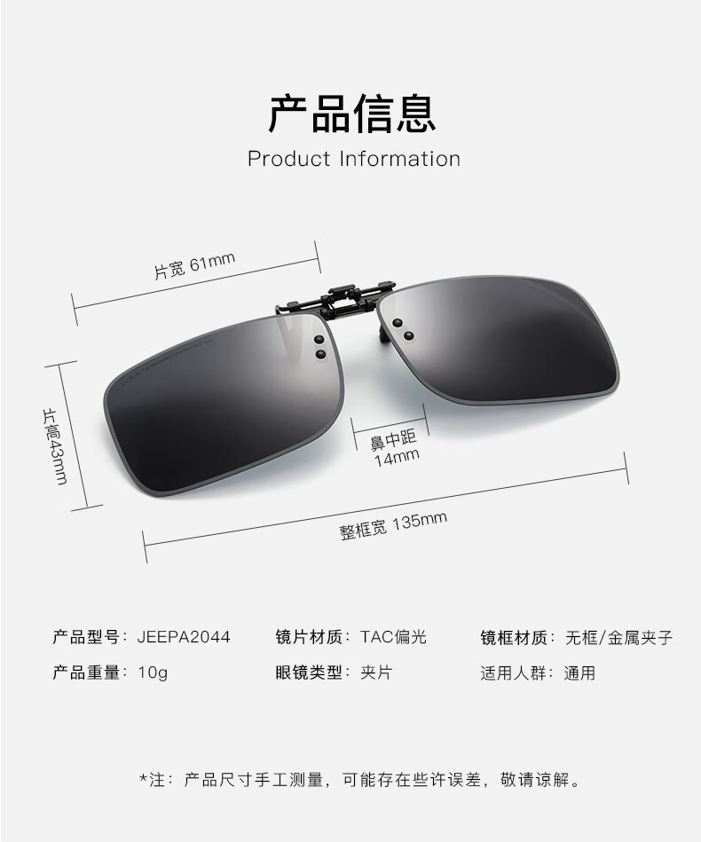 JEEP吉普夹片式经典偏光太阳镜男夜视开车钓鱼墨镜JSA2044 JSA2044-L9
