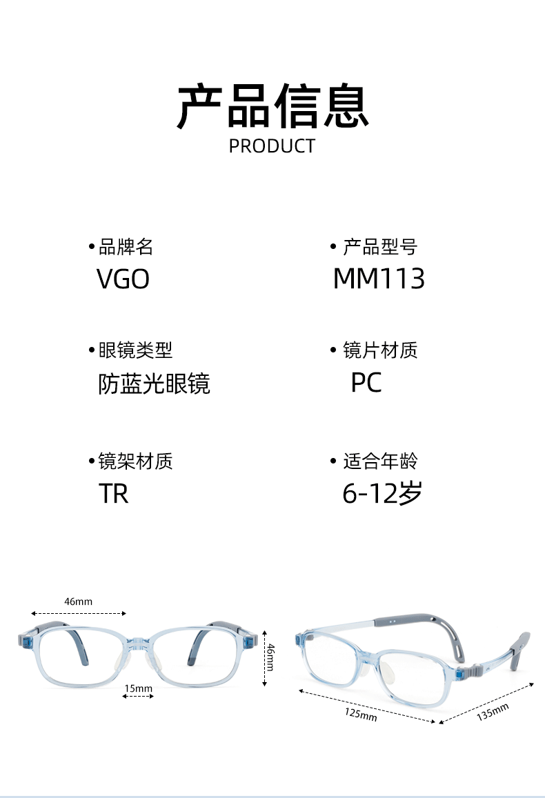 VGO儿童防辐射防蓝光眼镜男女平光镜网课电脑护目眼镜MM113透粉色