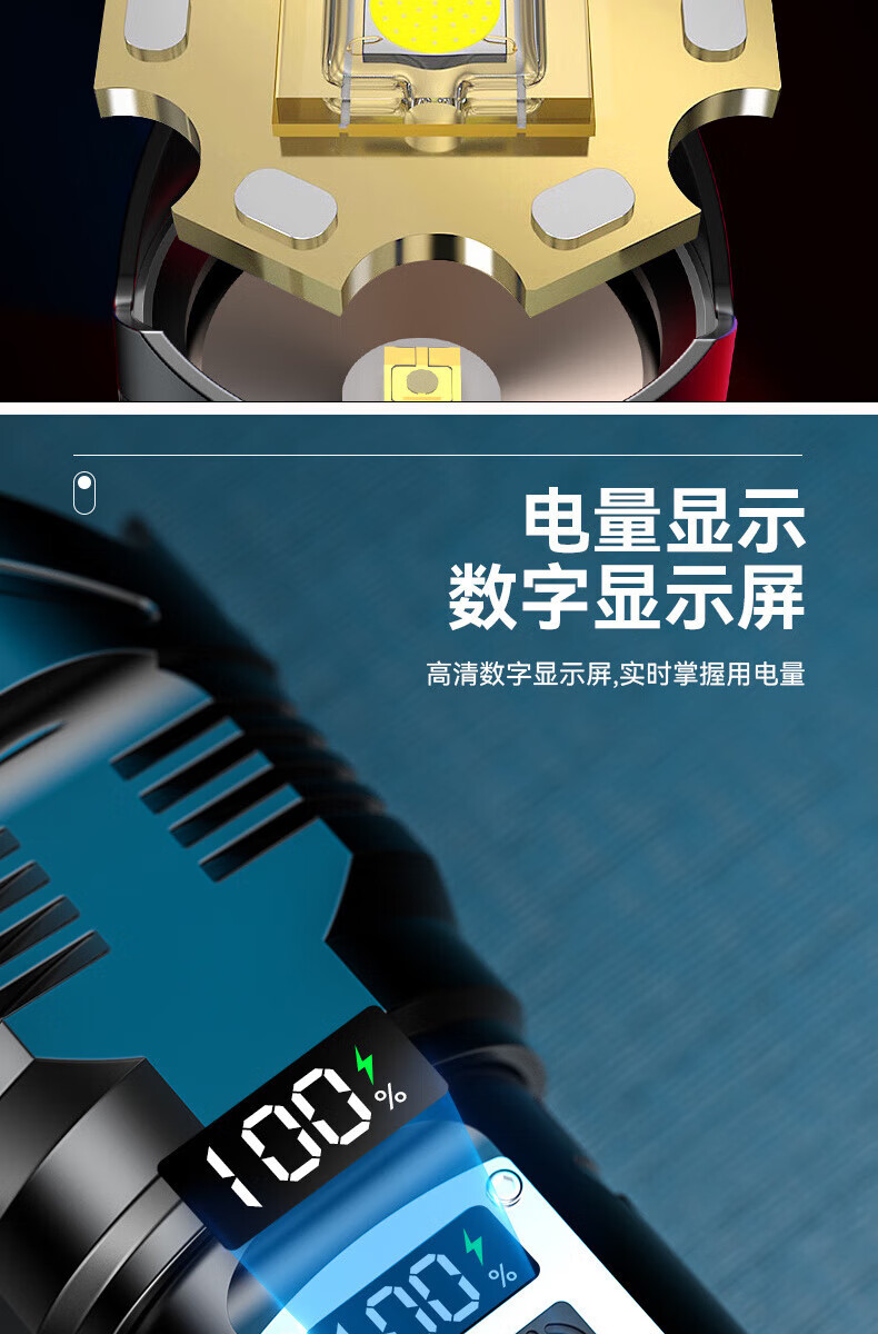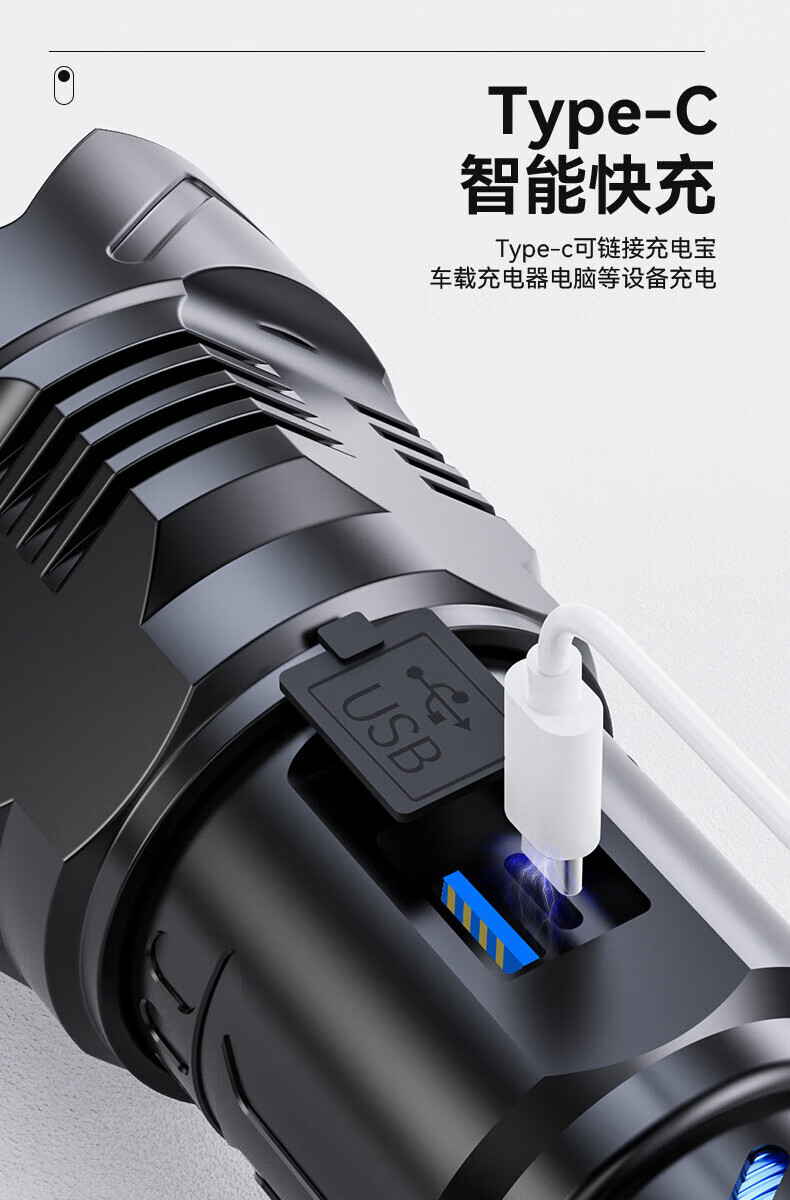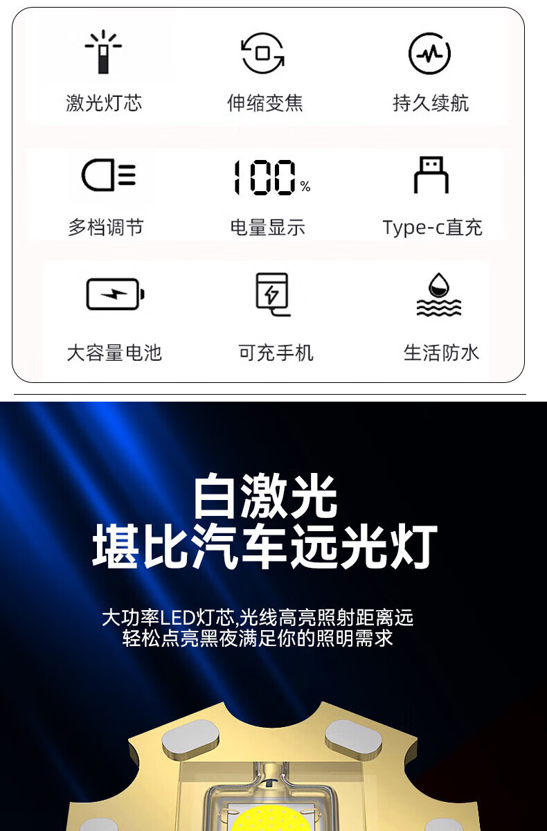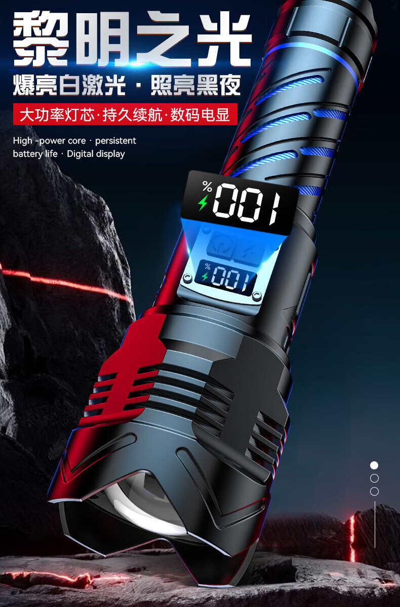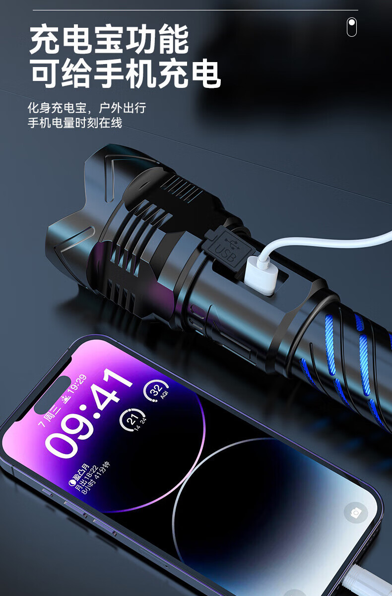 兆燊 强光手电筒 户外长续航超亮白激光远射1500米充电手电筒可伸缩变焦 26650锂电池+液晶电显【京仓发】