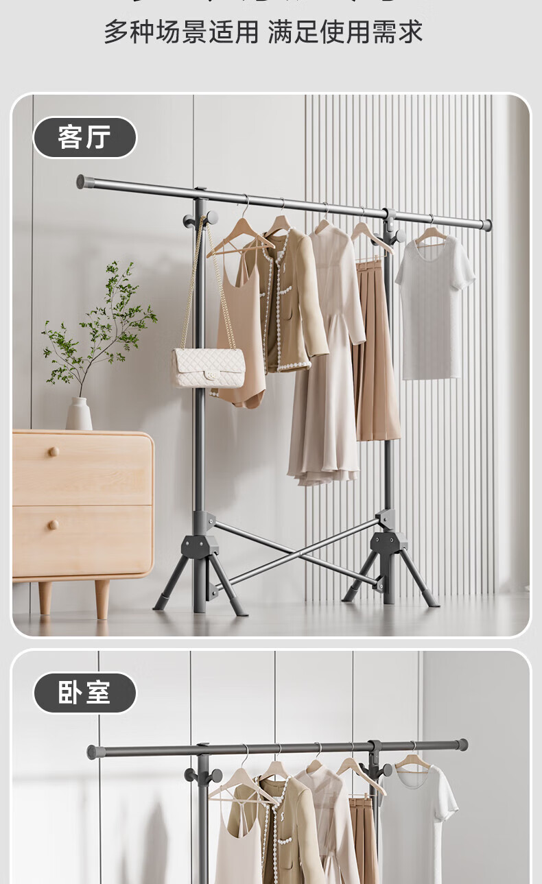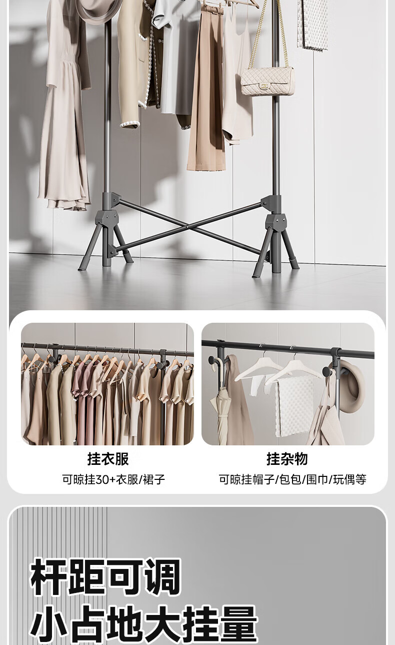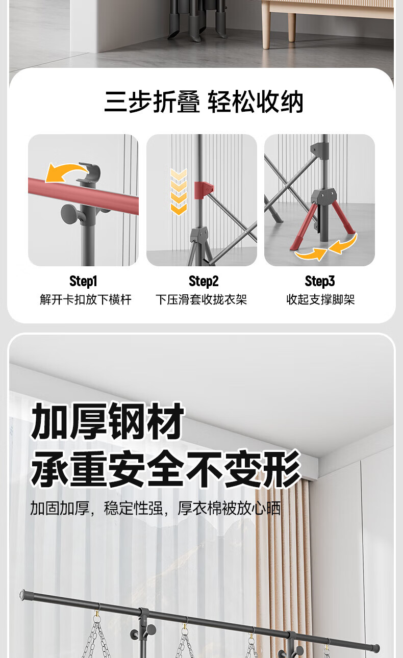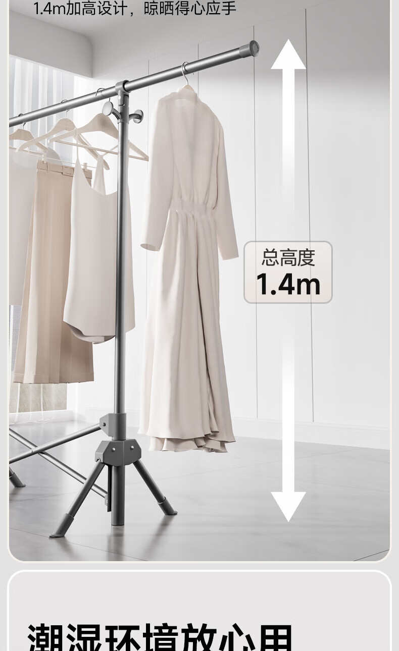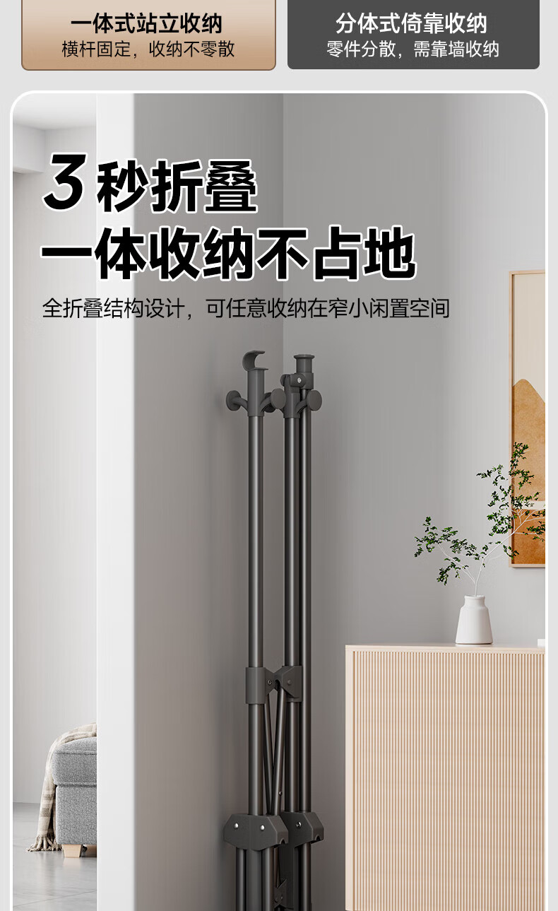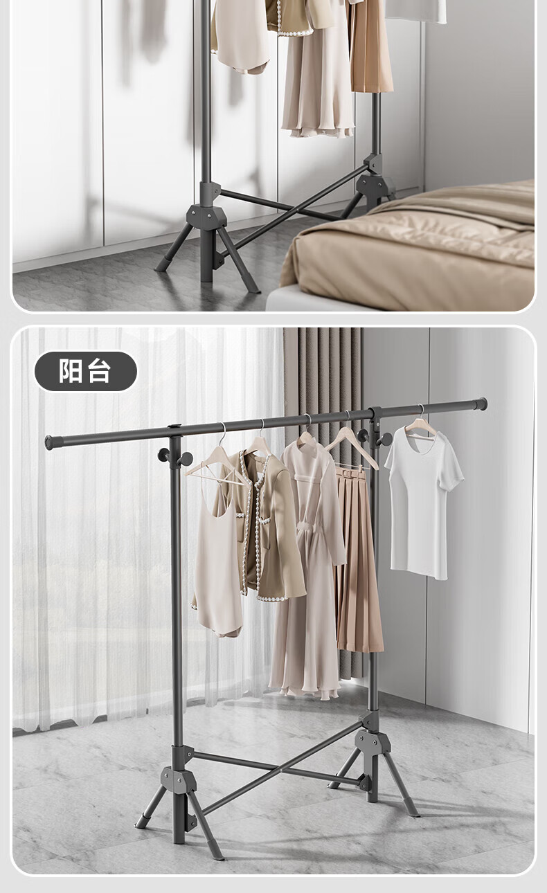 稳纳晾衣架落地折叠晾衣架杆阳台衣架卧室落地伸缩挂衣架晒被子神器