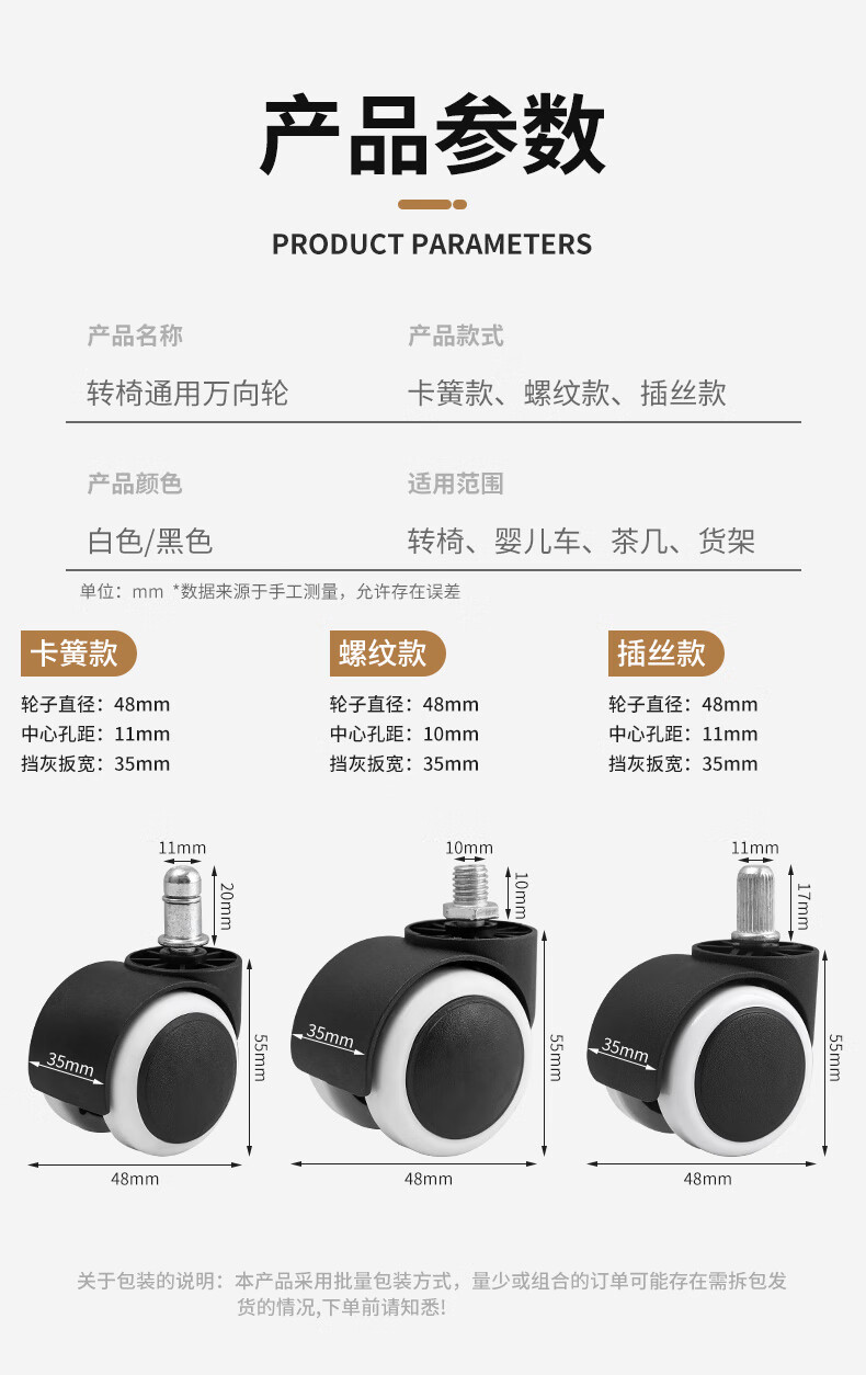 首力转椅万向轮加宽加厚滑轮耐磨低音滚轮电竞电脑办公座椅轮子脚轮