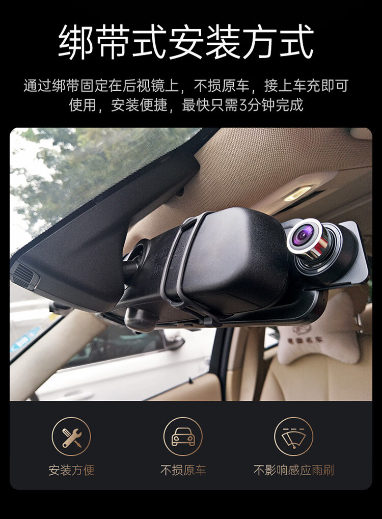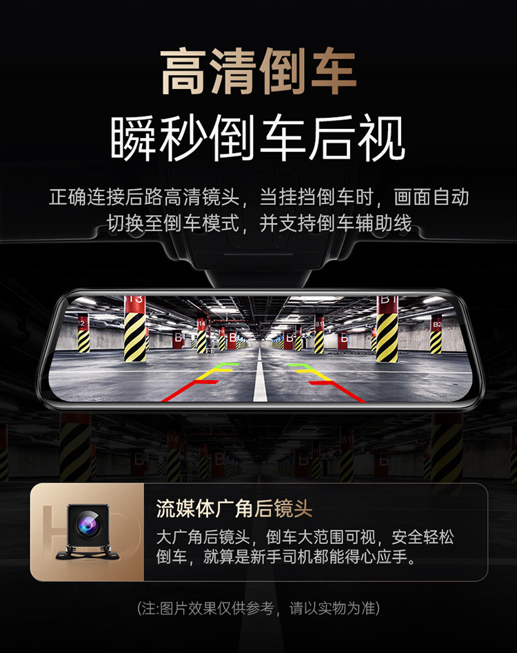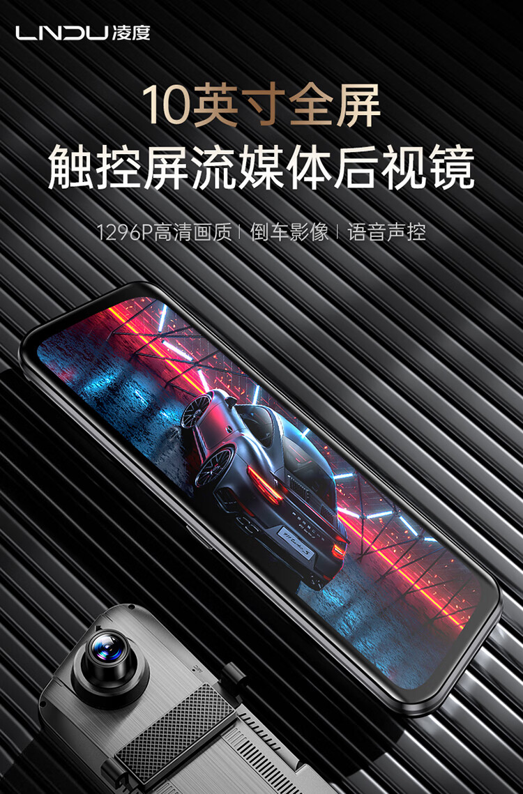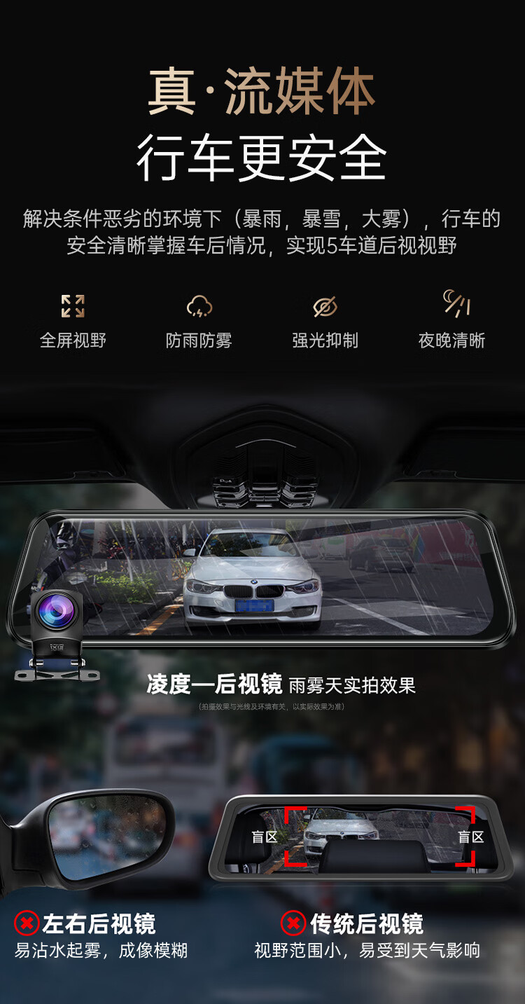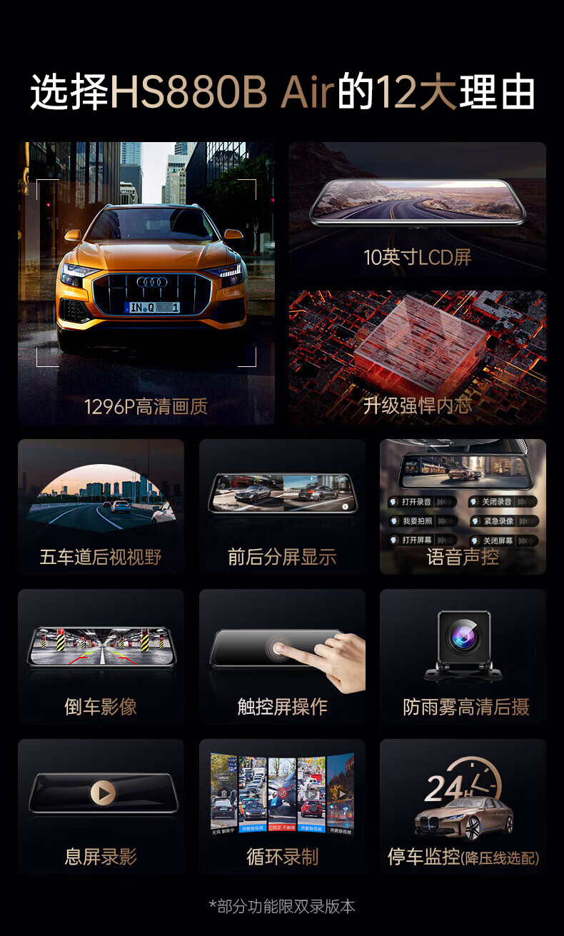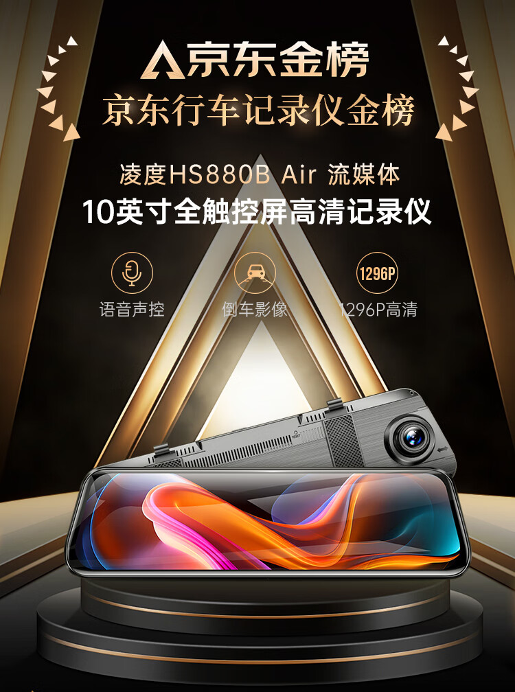 凌度HS880B Air行车记录仪1296P高清夜视 倒车影像流媒体后视镜双录