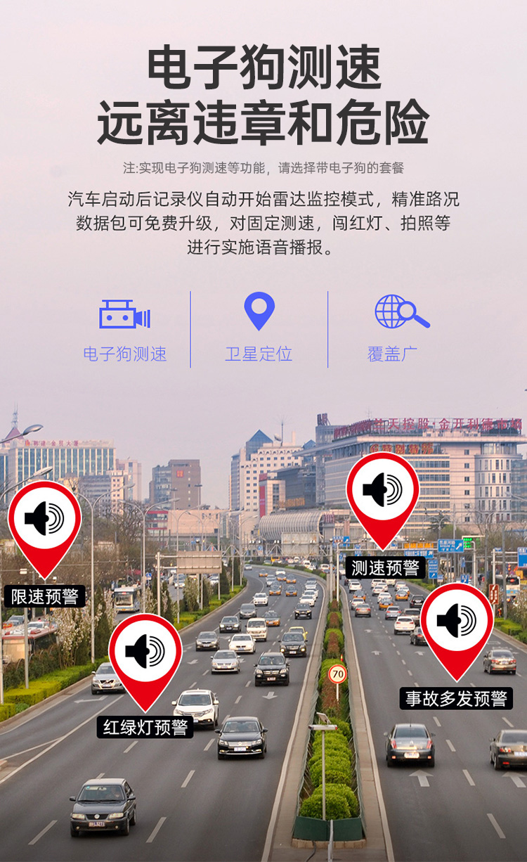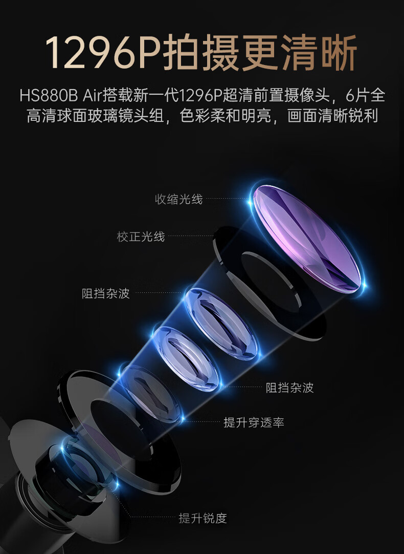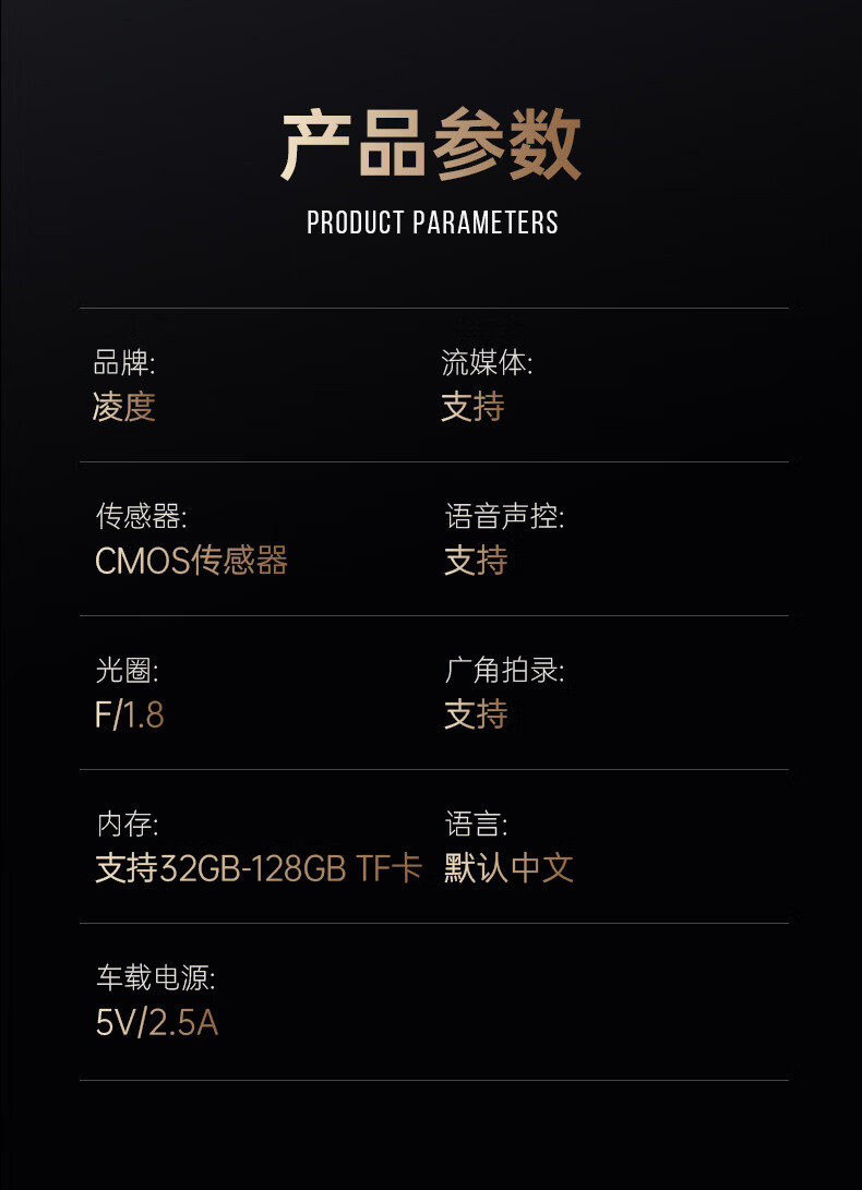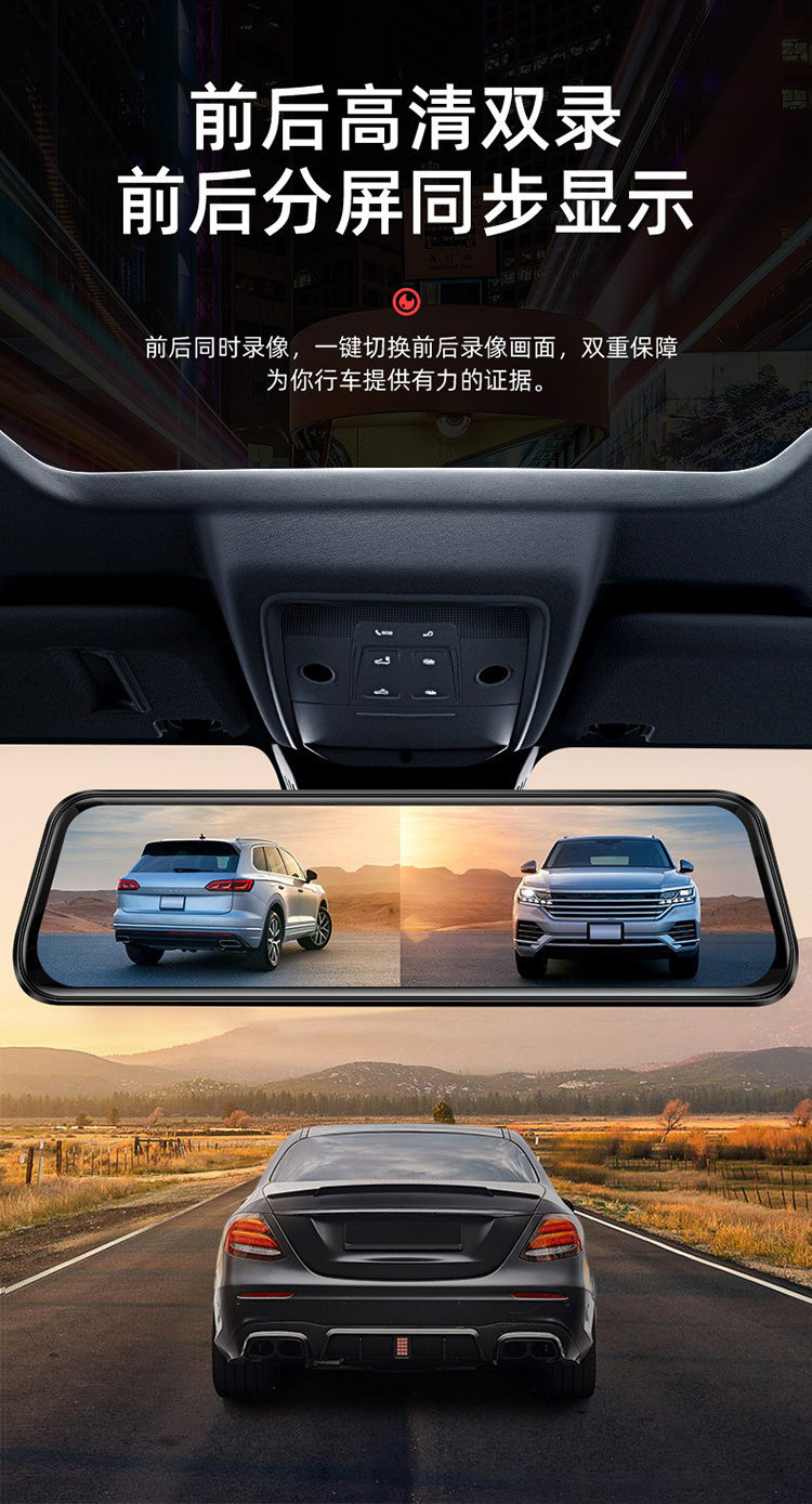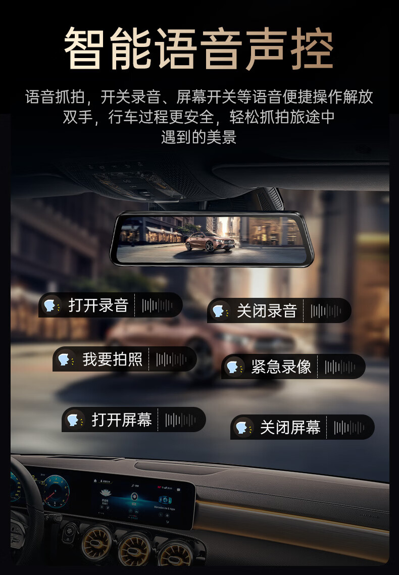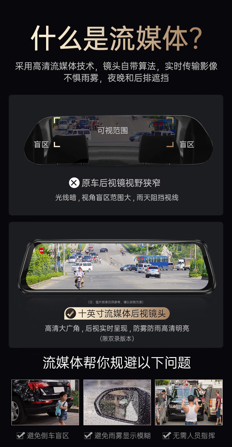 凌度HS880B Air行车记录仪1296P高清夜视 倒车影像流媒体后视镜双录