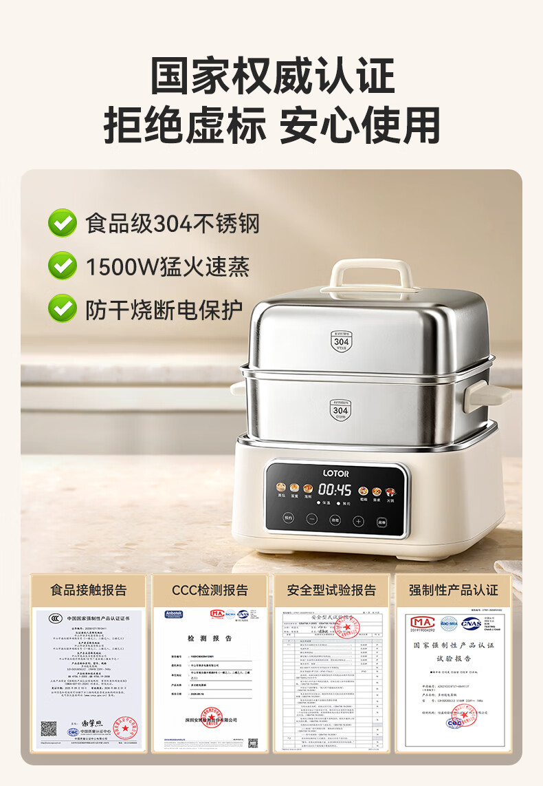 LOTOR电蒸锅电煮锅炖蒸煮一体0涂层304不锈钢多功能锅大容量电锅上蒸下煮电热火锅自动断电家用蒸锅 17L 大容量【0涂层304不锈钢】
