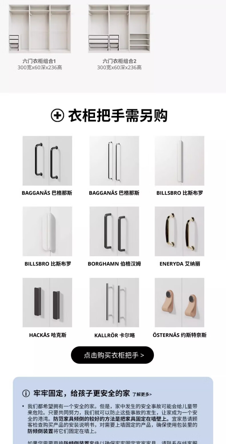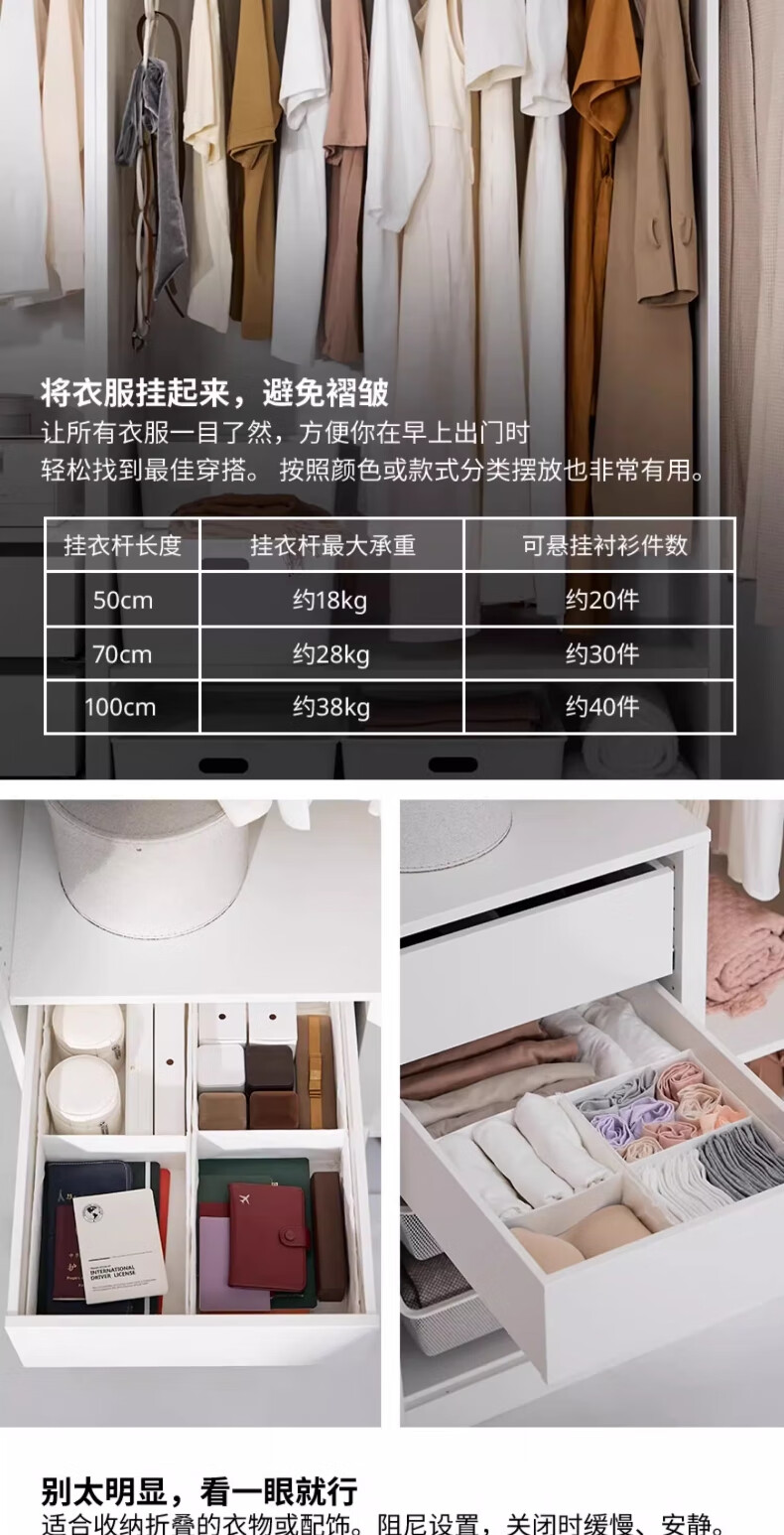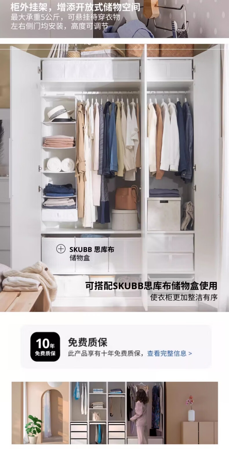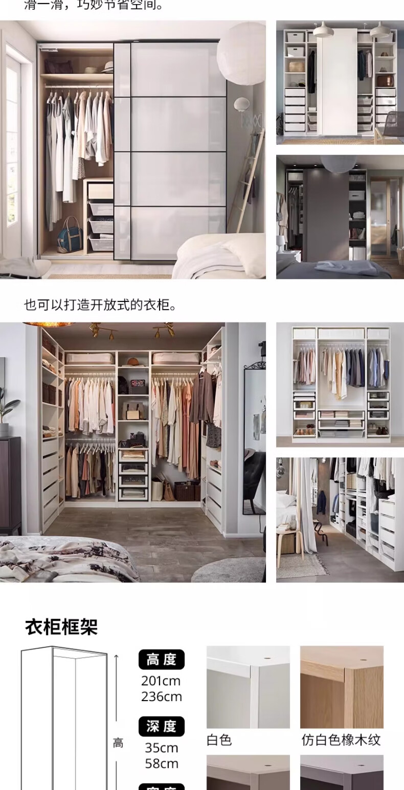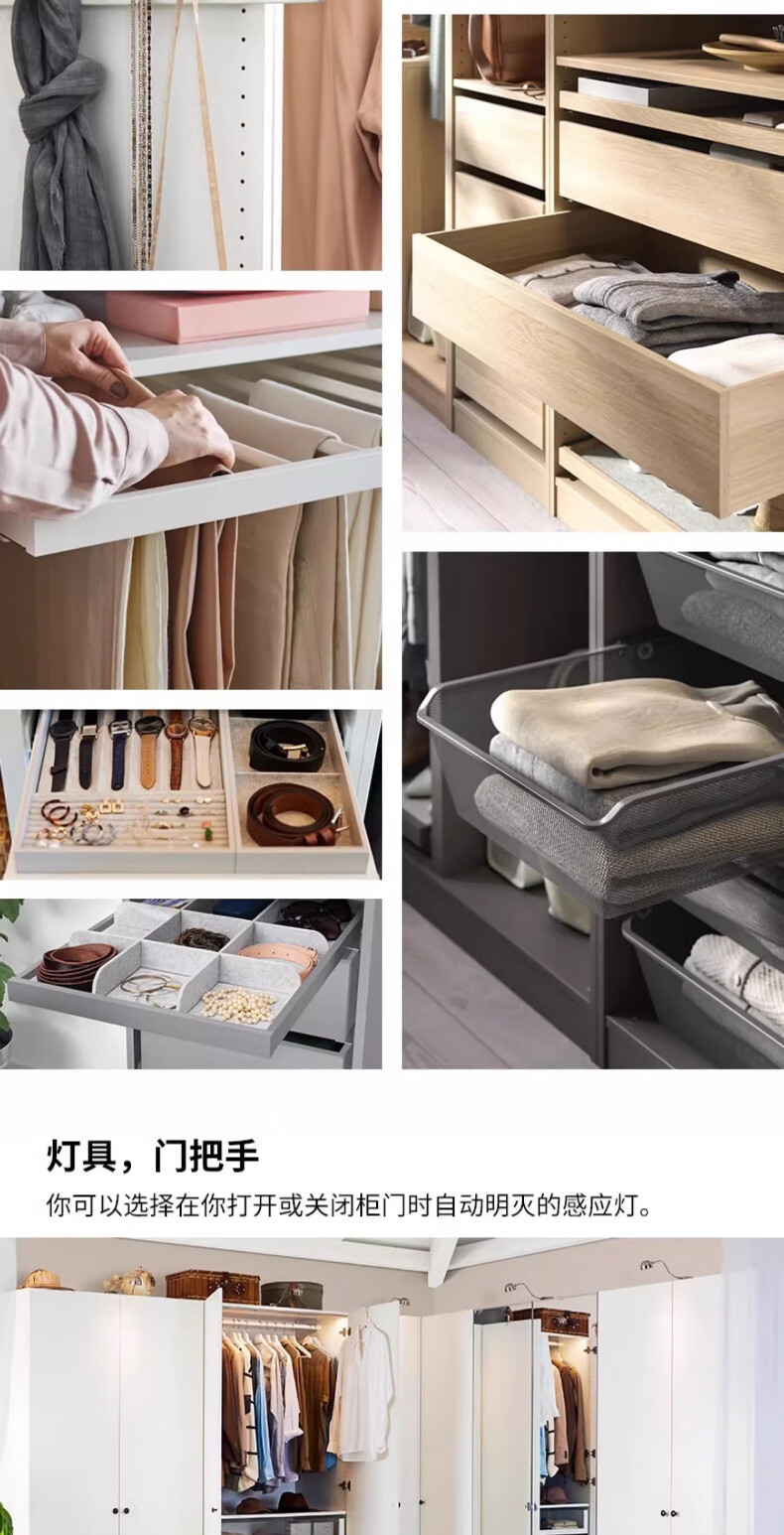 宜家(IKEA)PAX帕克思家用卧室组合衣柜小户型衣橱储物柜白色四门柜 三门衣柜组合4(125宽x60深x236高)