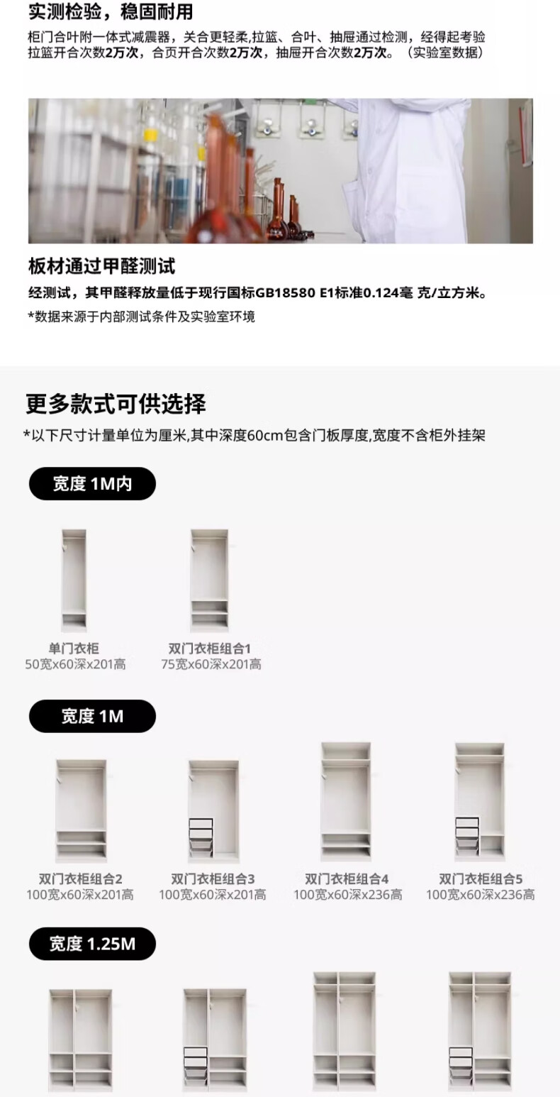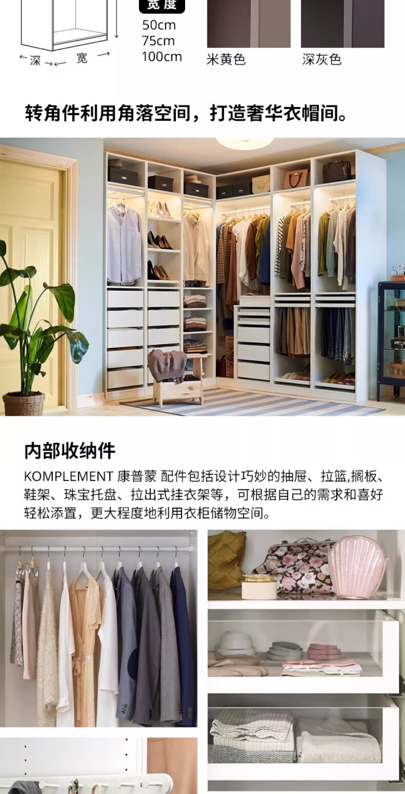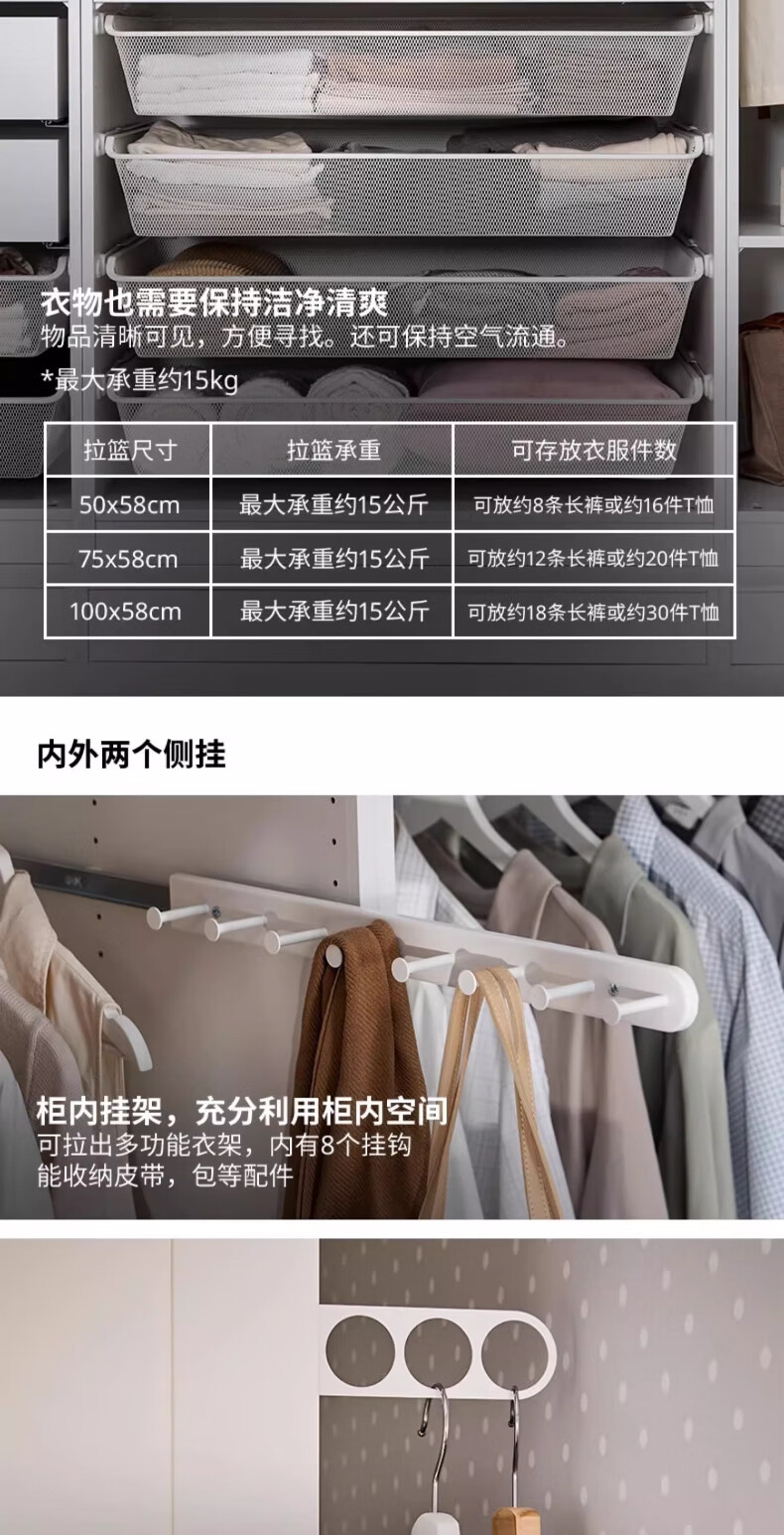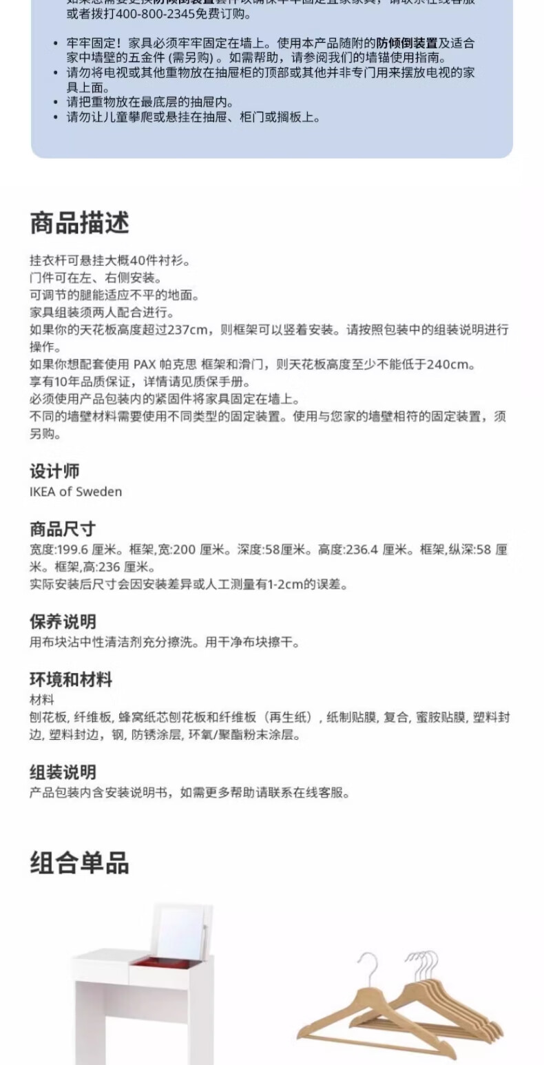 宜家(IKEA)PAX帕克思家用卧室组合衣柜小户型衣橱储物柜白色四门柜 三门衣柜组合4(125宽x60深x236高)