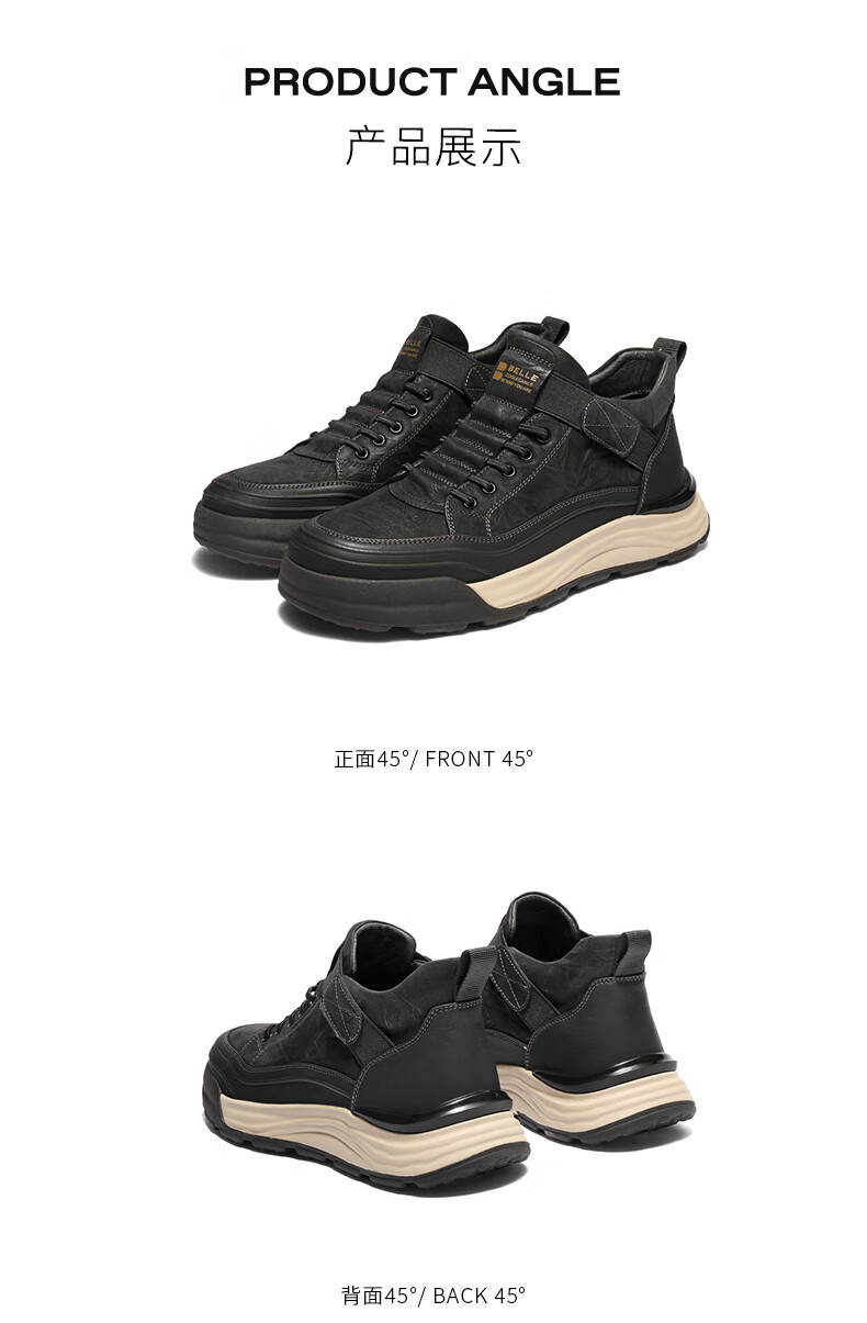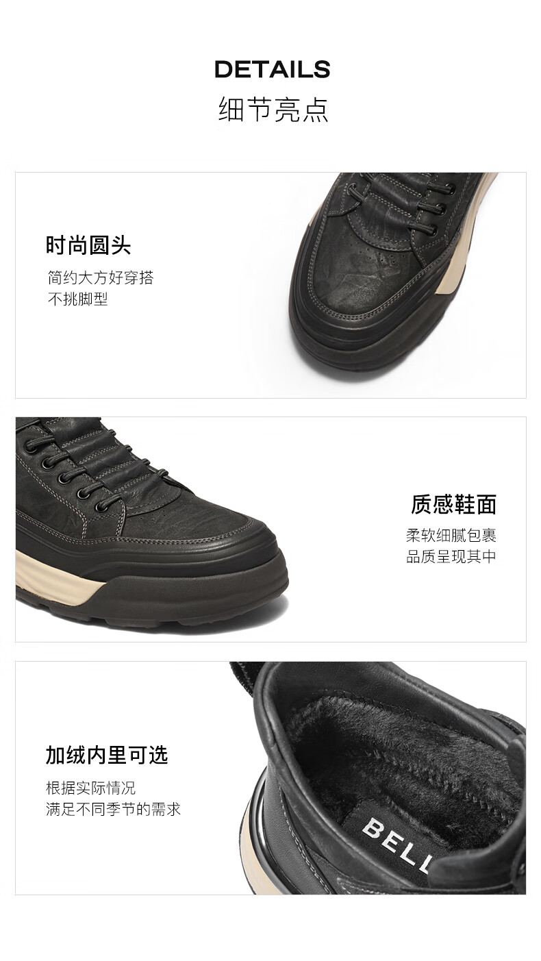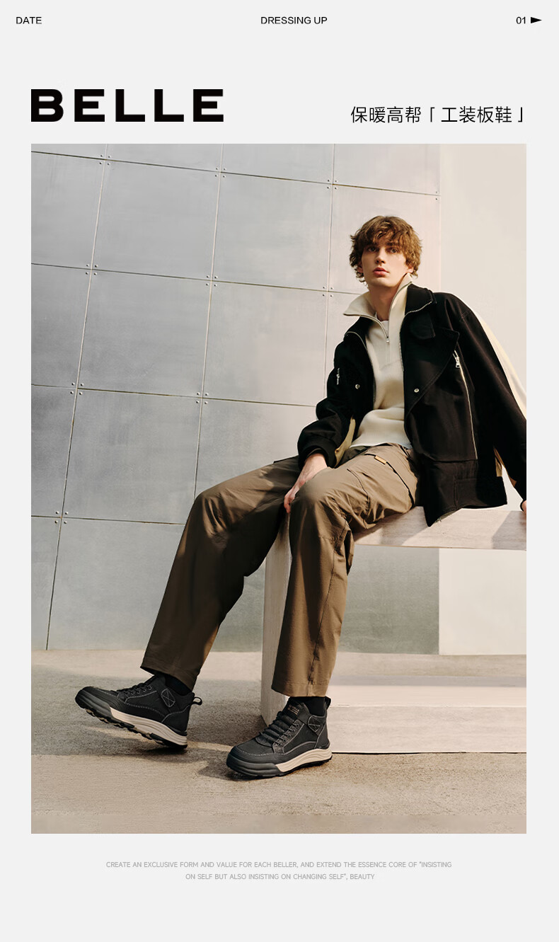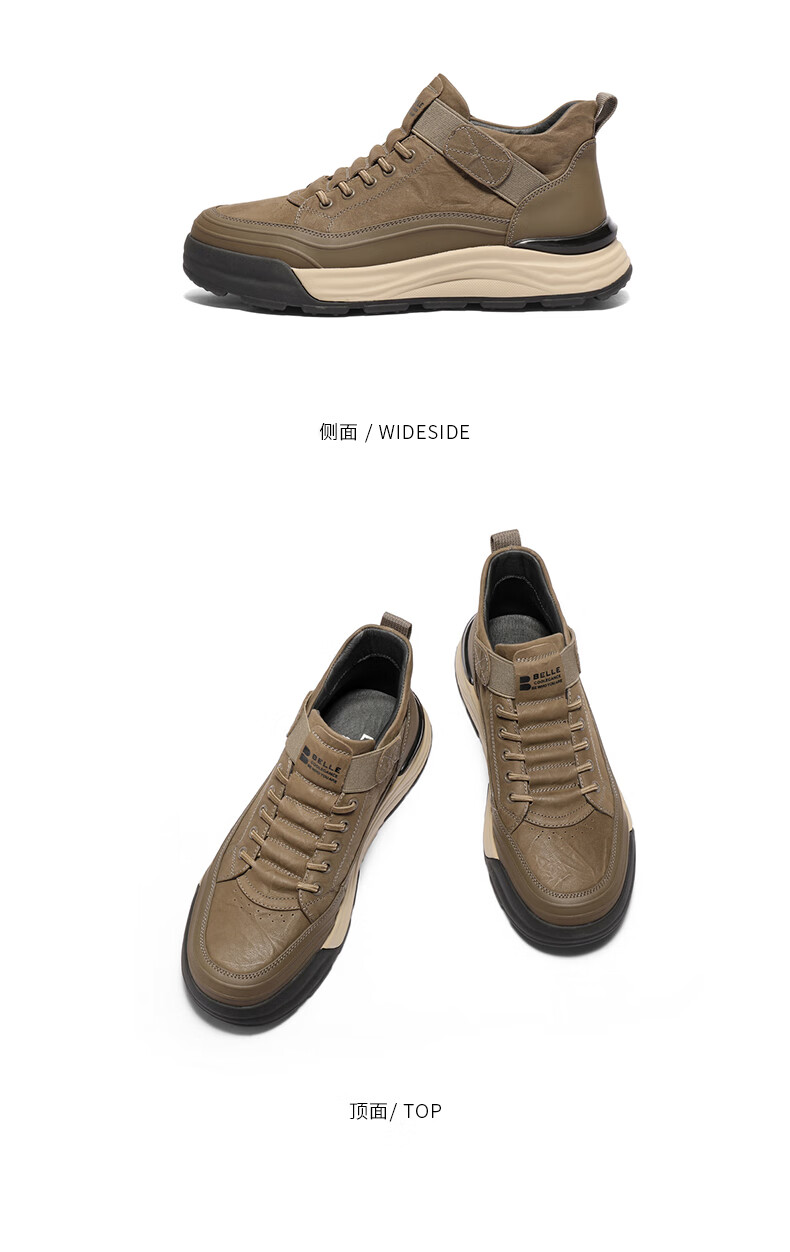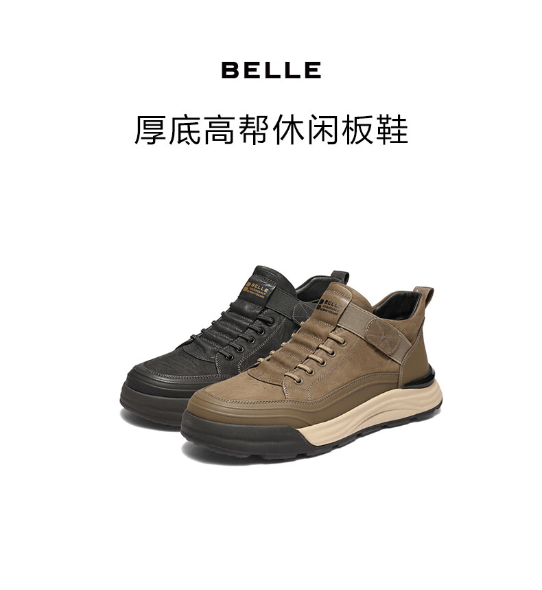 百丽高帮休闲板鞋25冬新商场同款厚底套脚工装鞋加绒8WQ01DD5 卡其色(单里) 40 (250mm)