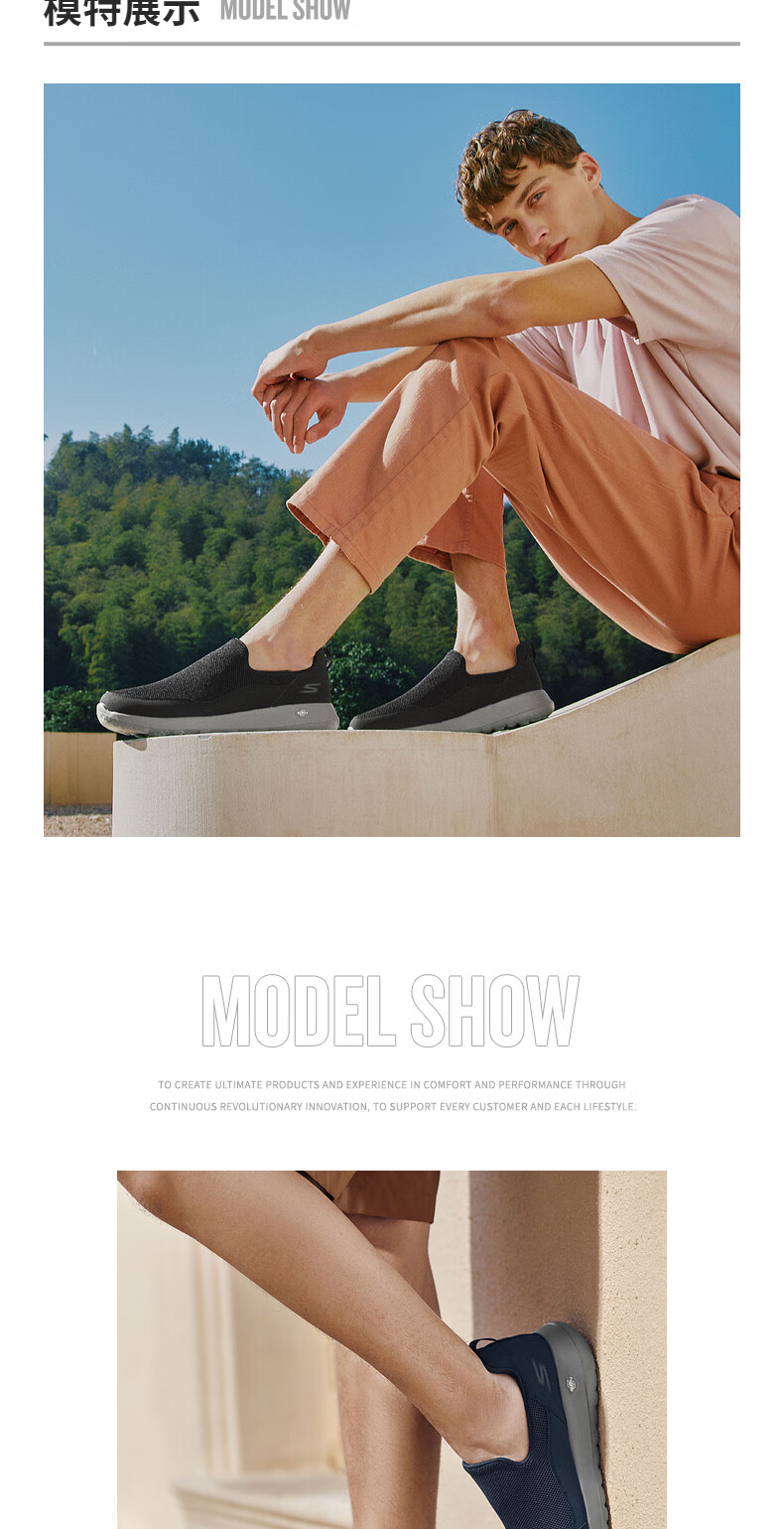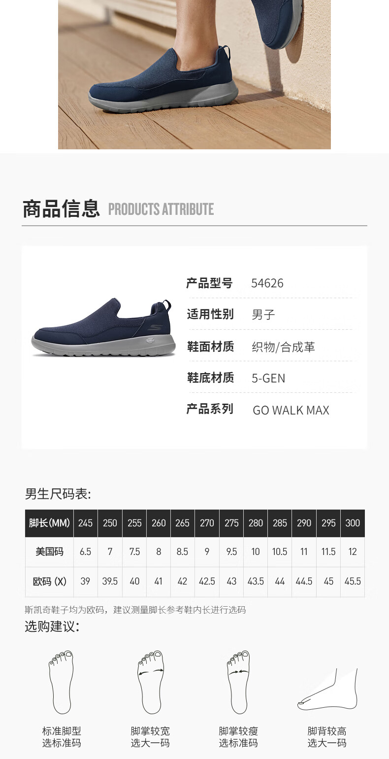 斯凯奇(SKECHERS)春秋男鞋懒人一脚蹬缓震健步鞋软底网面休闲运动鞋54626