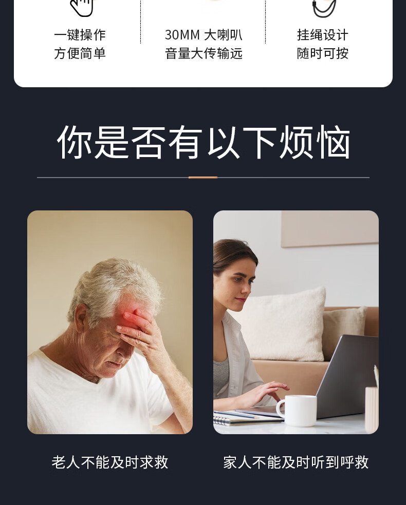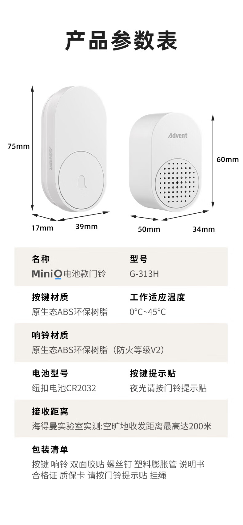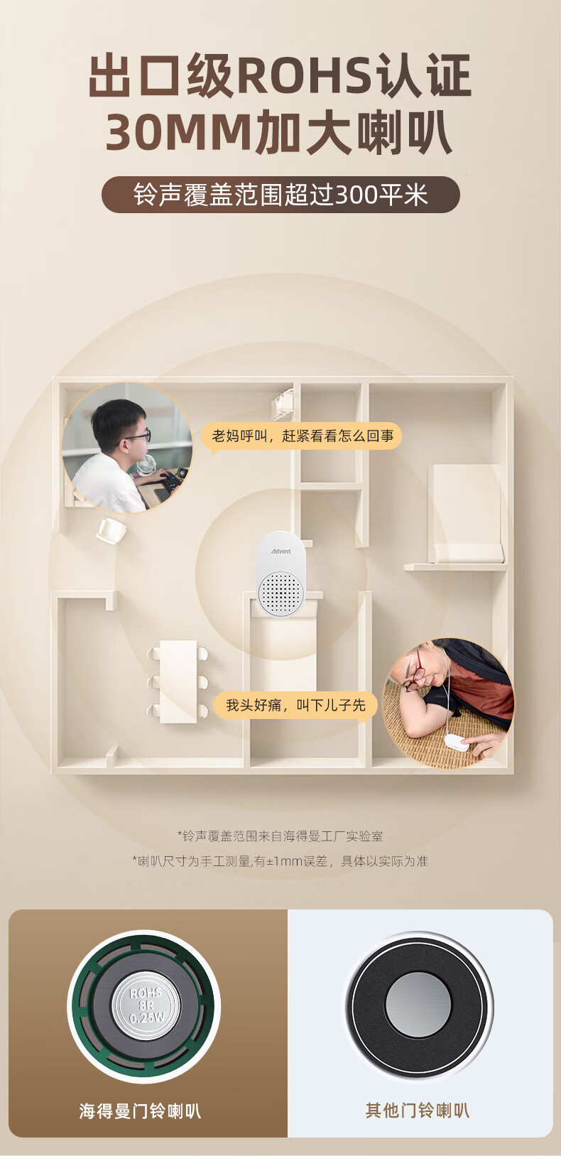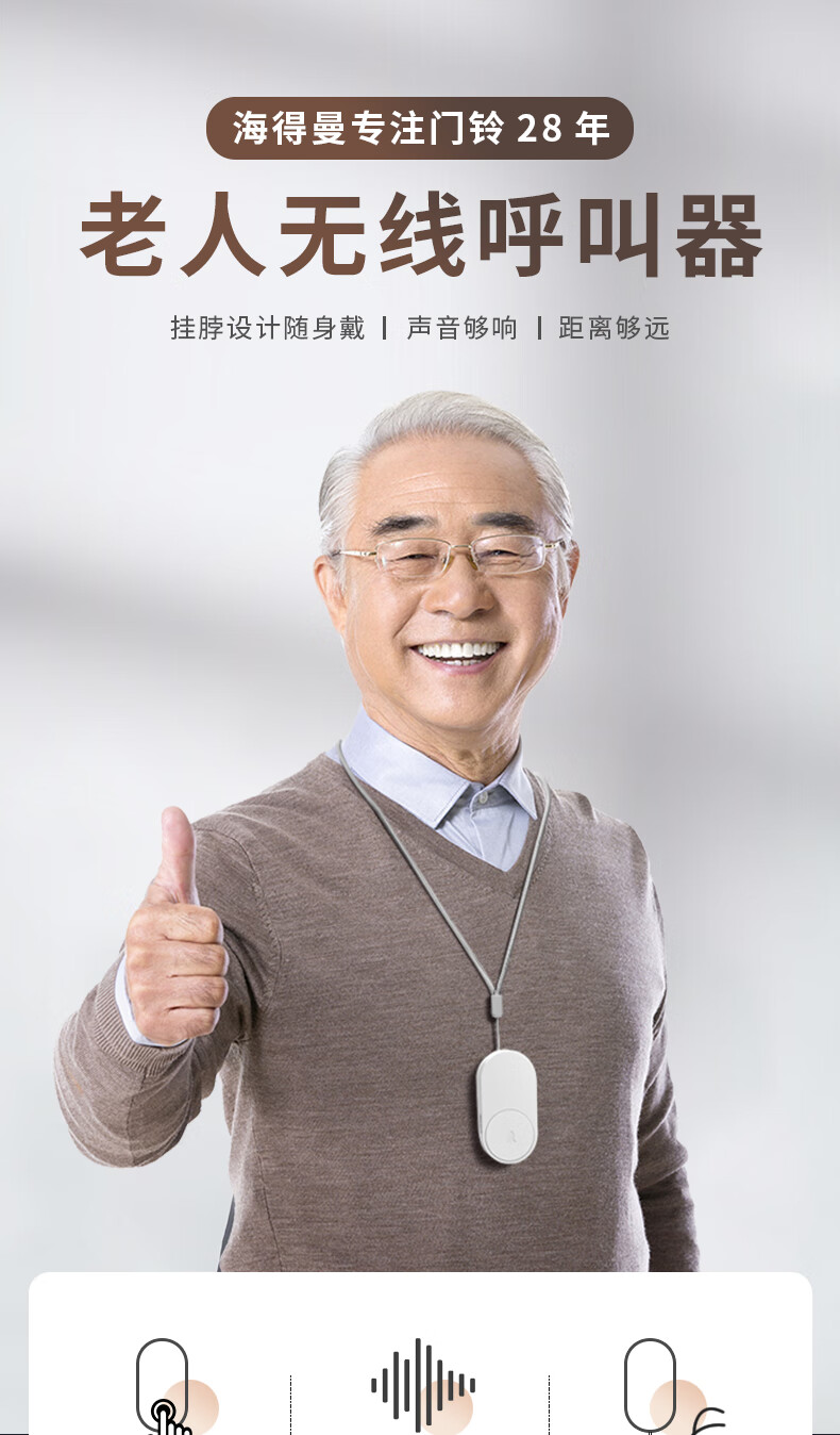 海得曼(advent)G-2-313H无线门铃 智能家用门铃老人呼叫器 病床床头呼叫器二拖一