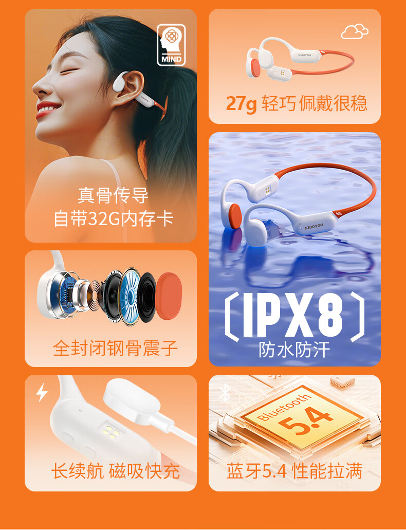小幽 骨传导耳机x7pro骑行蓝牙耳机开放式挂颈式无线户外游泳 运动