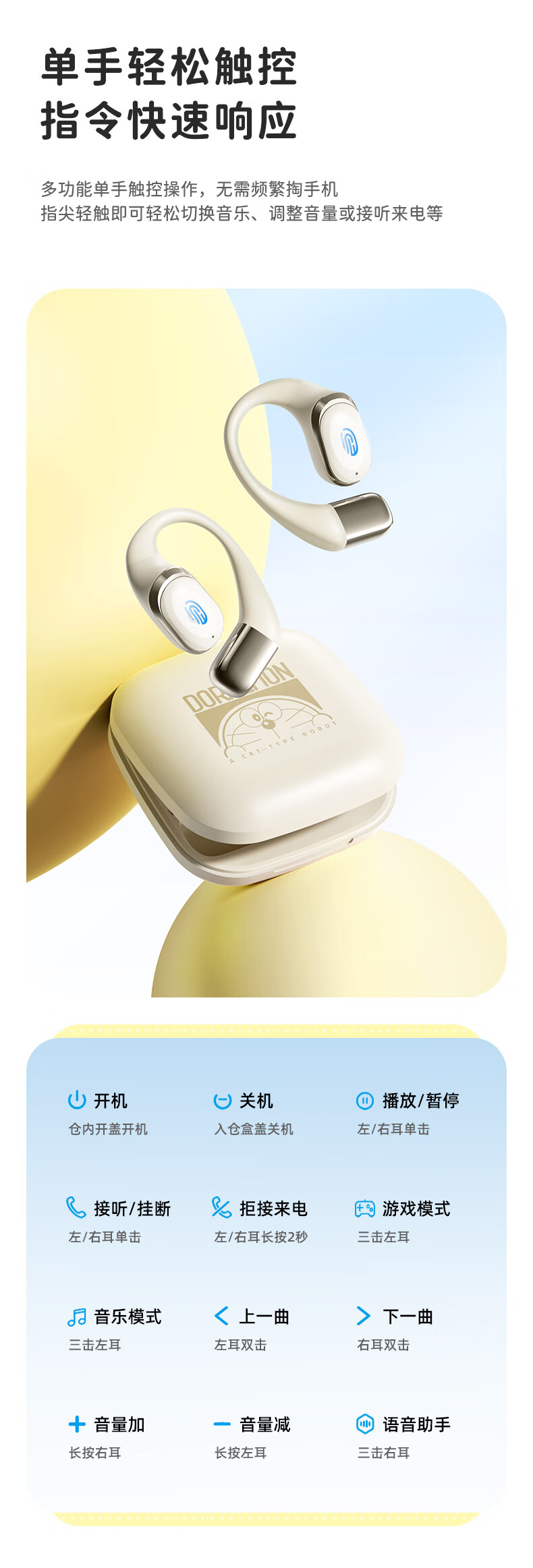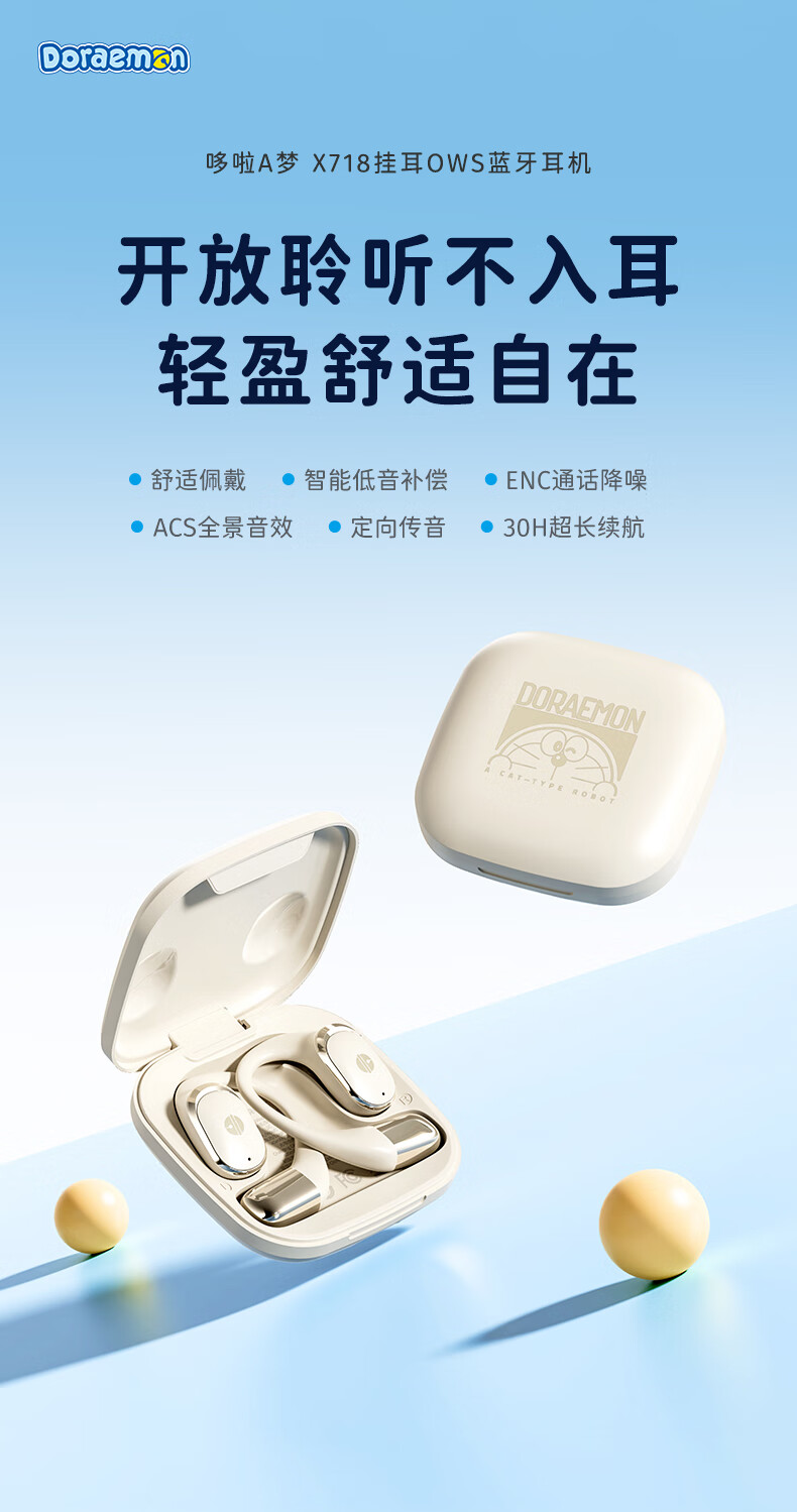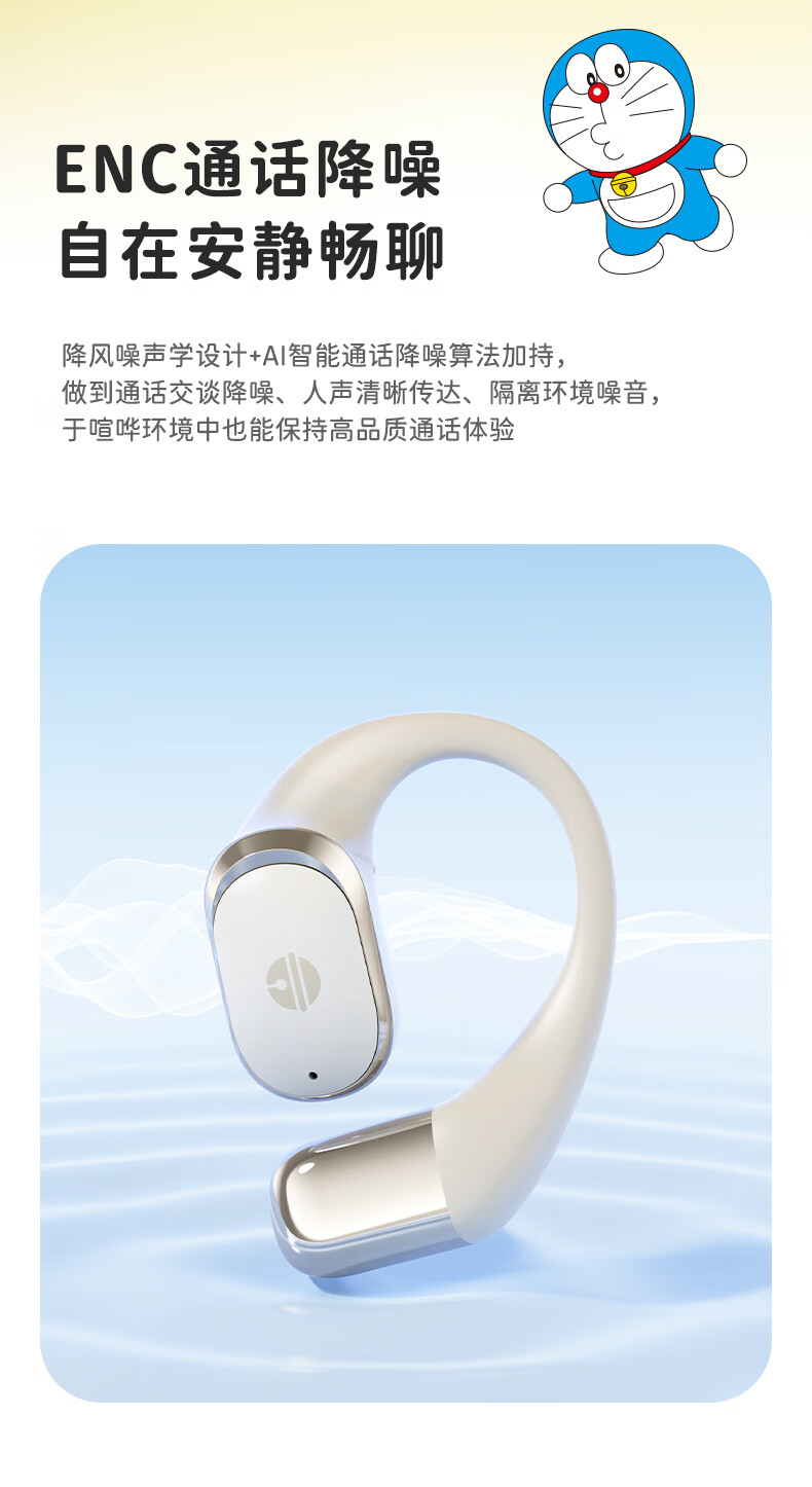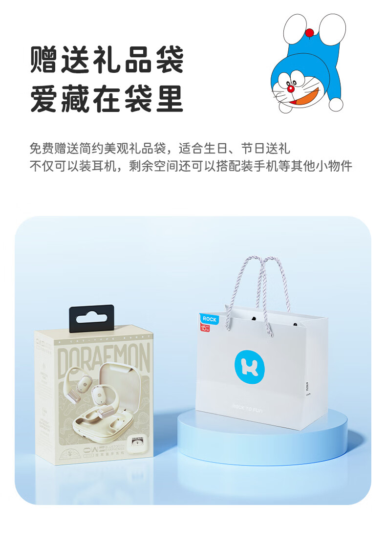 ROCK哆啦A梦无线蓝牙耳机挂耳式开放式不入耳骨传导ENC通话降噪超长续航大电量超强音质男女友生日礼物