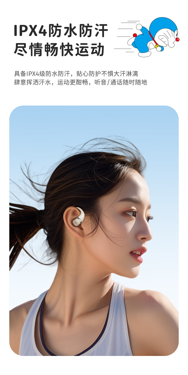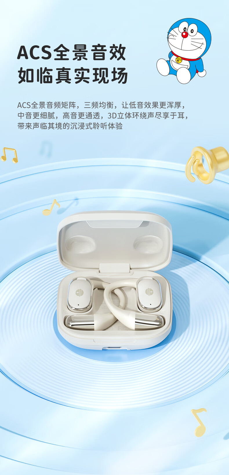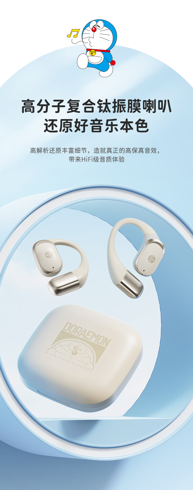 ROCK哆啦A梦无线蓝牙耳机挂耳式开放式不入耳骨传导ENC通话降噪超长续航大电量超强音质男女友生日礼物