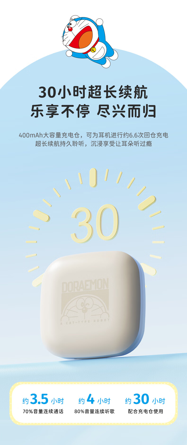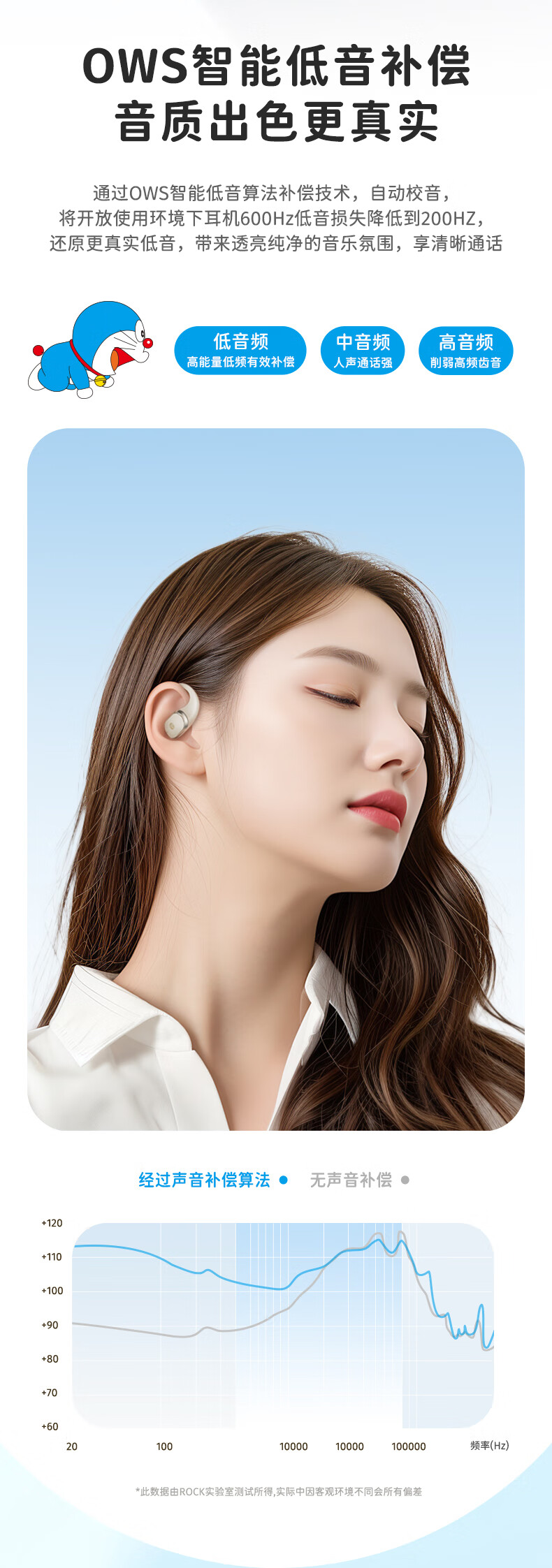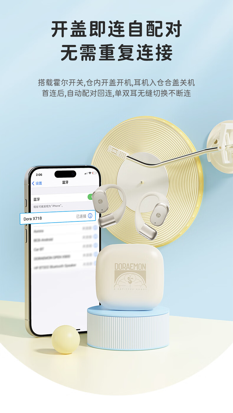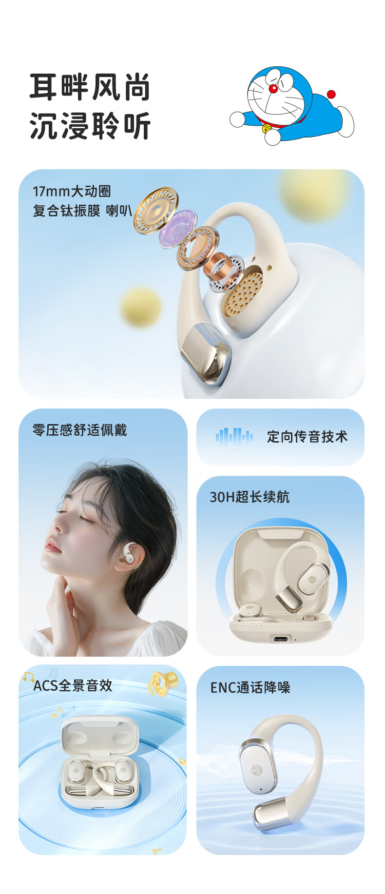 ROCK哆啦A梦无线蓝牙耳机挂耳式开放式不入耳骨传导ENC通话降噪超长续航大电量超强音质男女友生日礼物