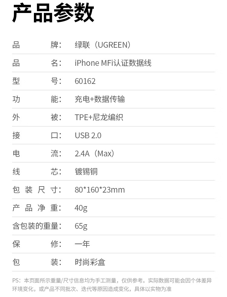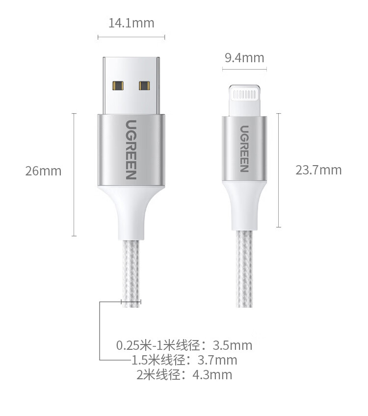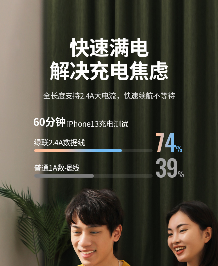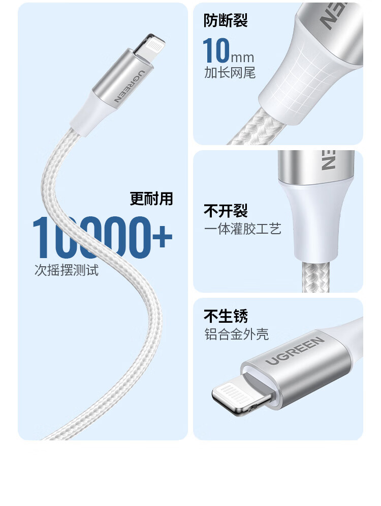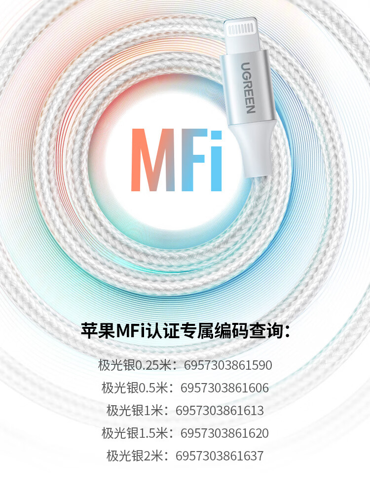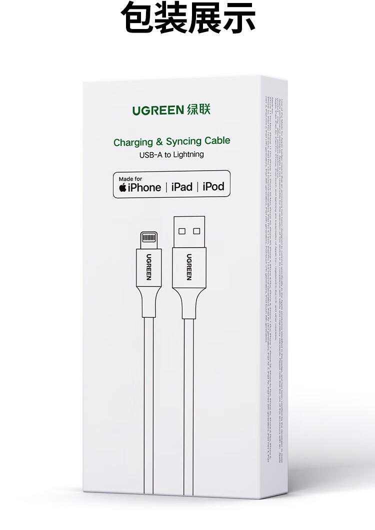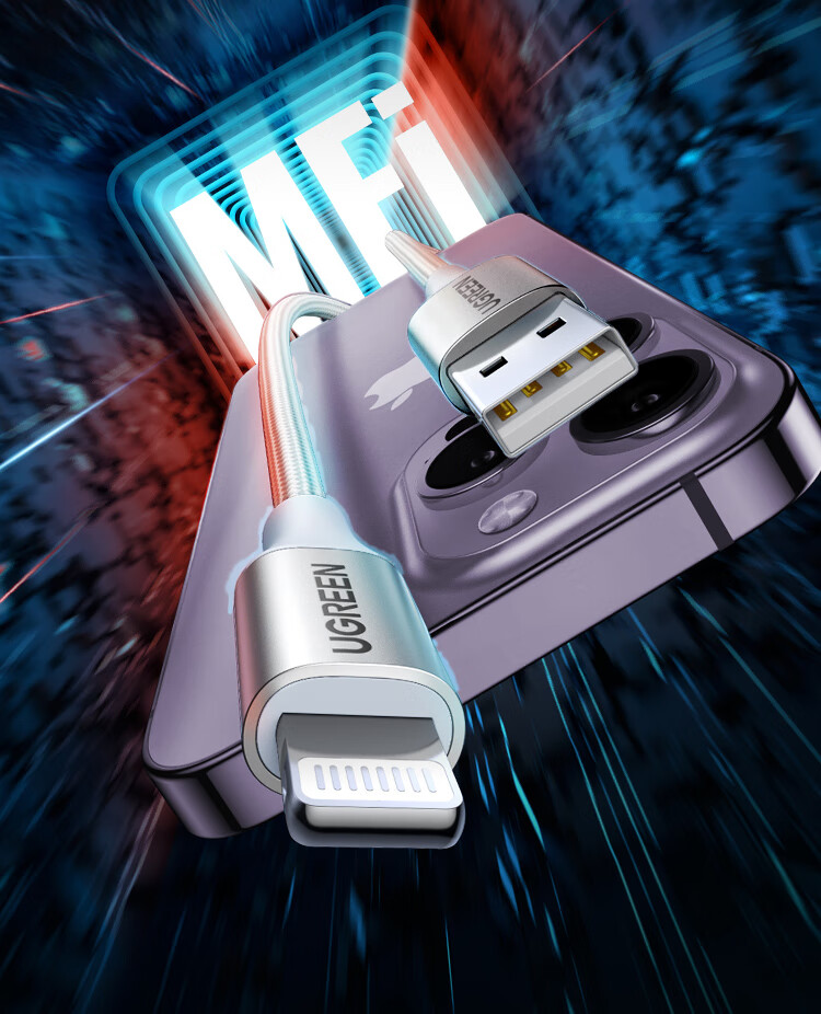 绿联【MFi认证不弹窗】适用苹果充电线快充数据线USB to Lightning iPhone14/13/12手机ipad平板1.5m