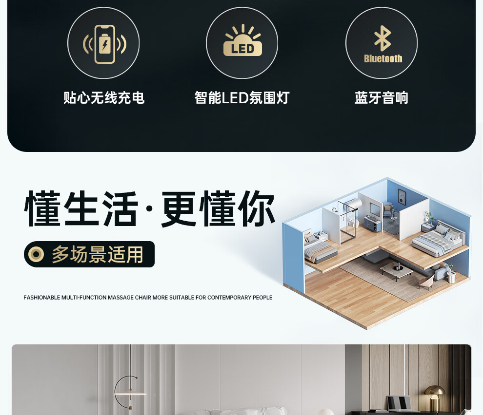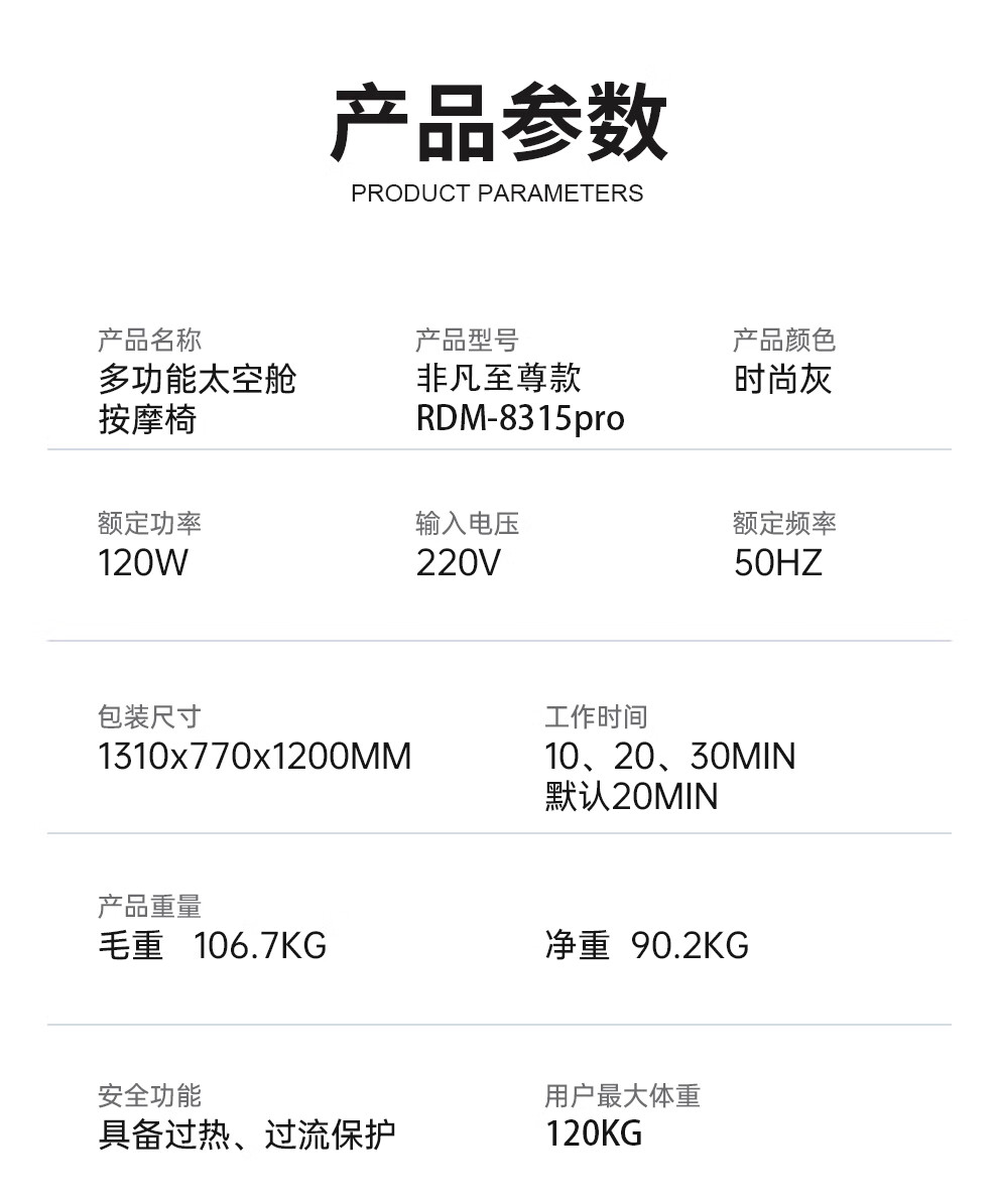 瑞德玛8315Pro按摩椅4D精钢齿轮机芯热敷电动小腿伸缩送父母礼物全自动按摩椅父亲节礼物 8315Pro皓月灰(非凡至尊款)